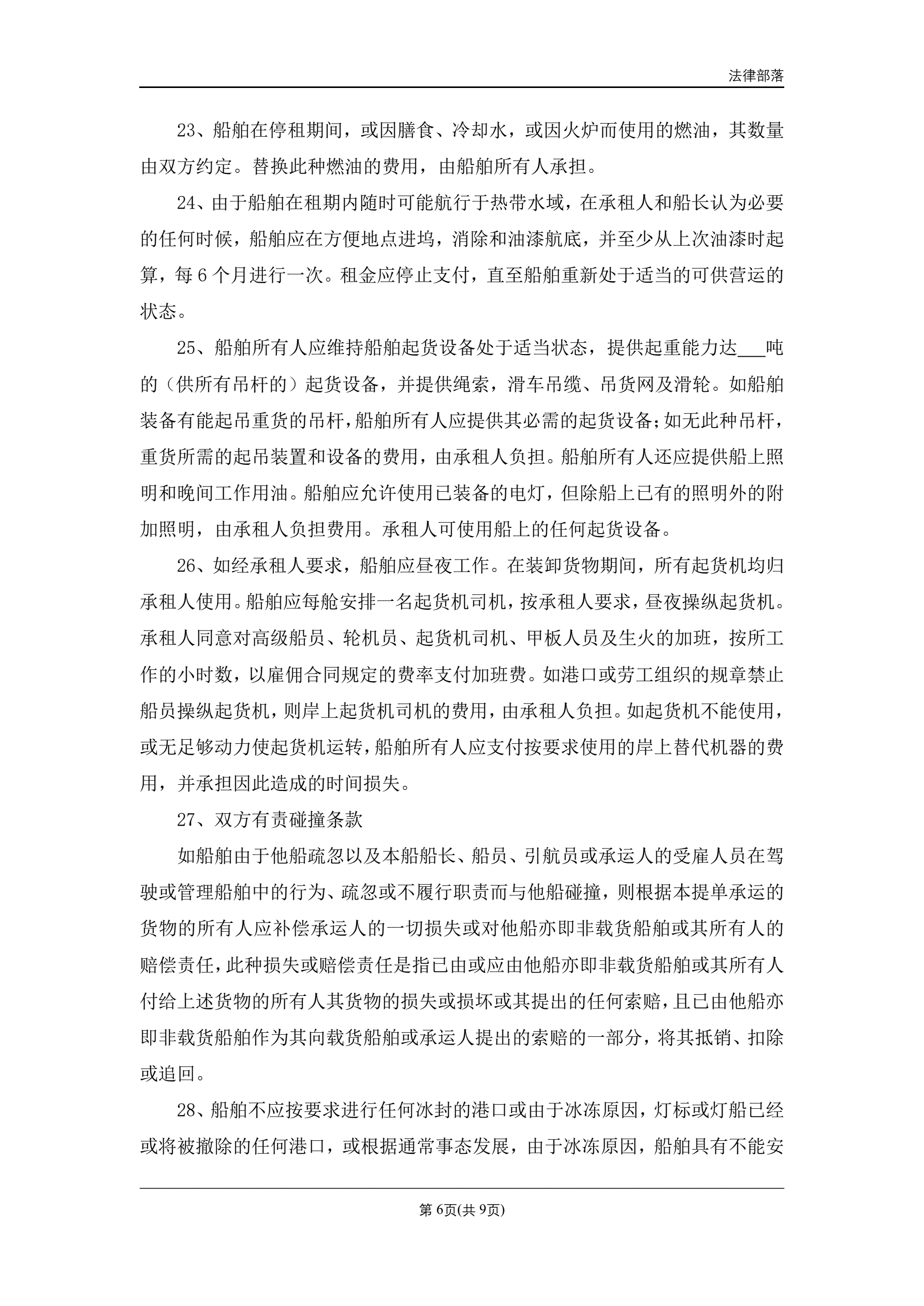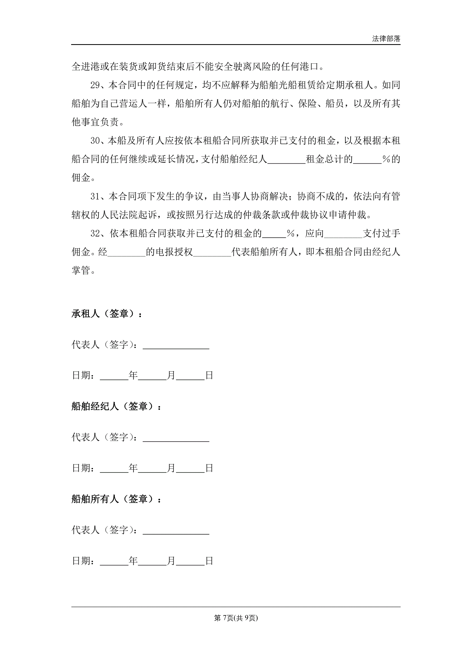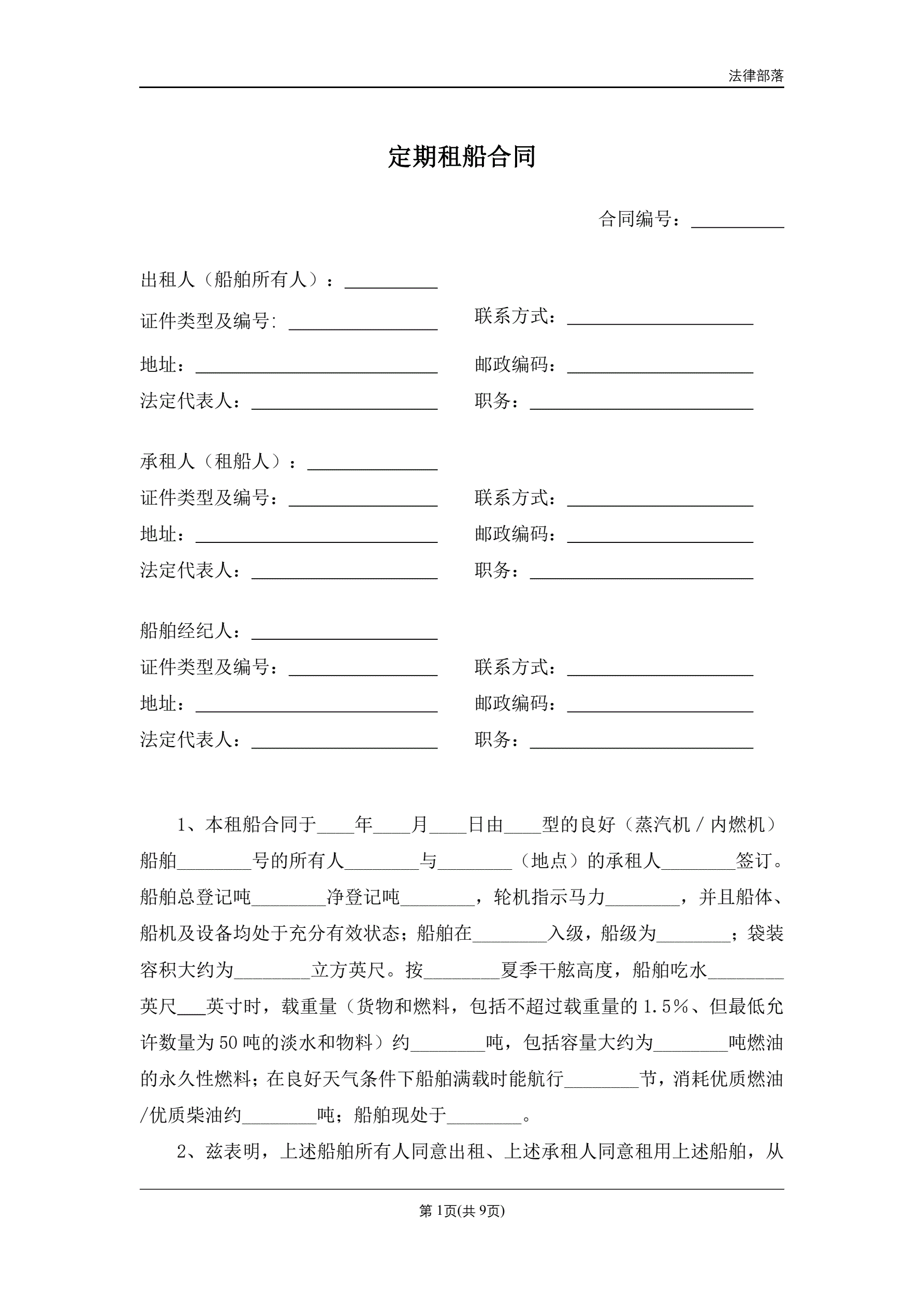 >定期租船合同