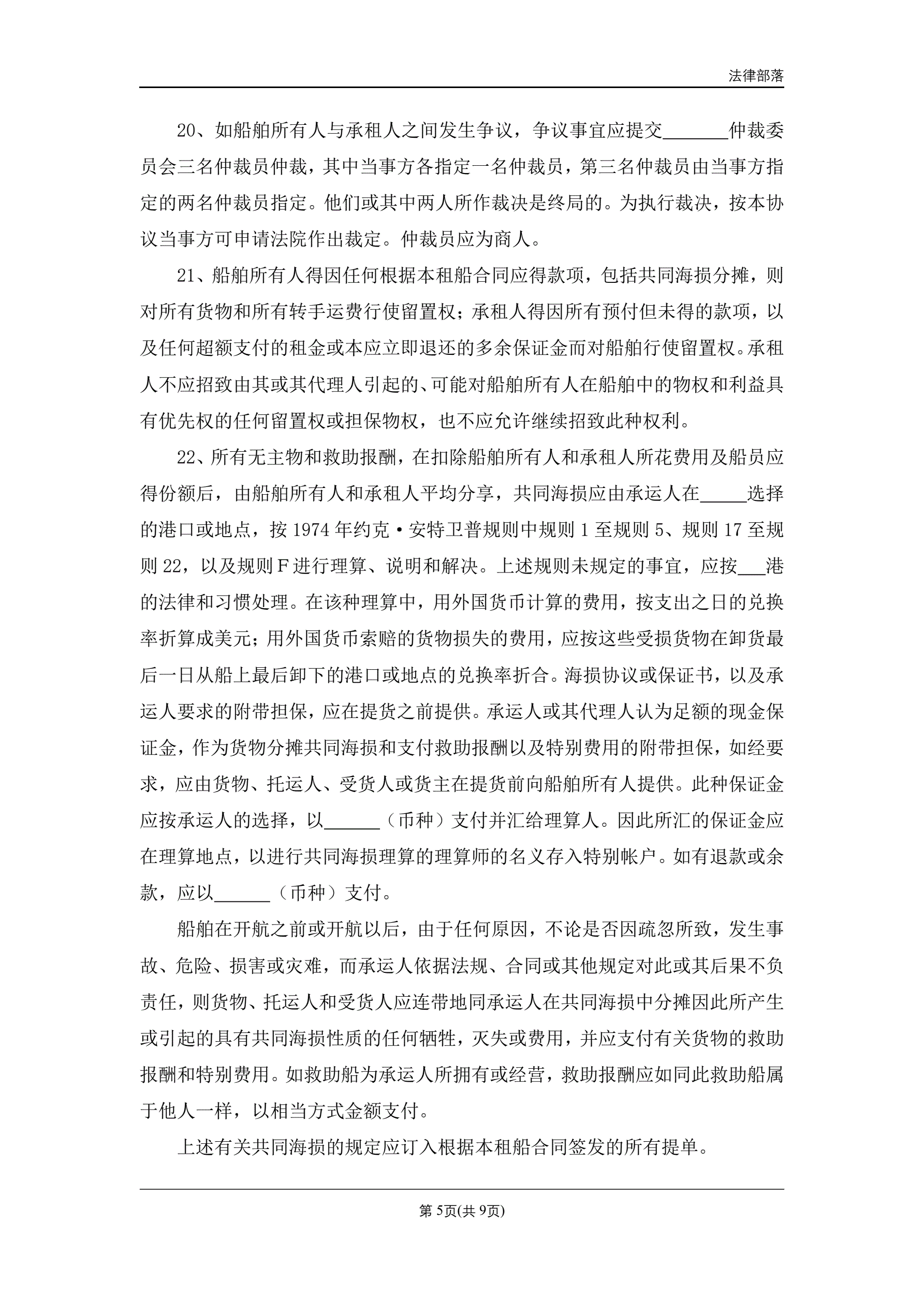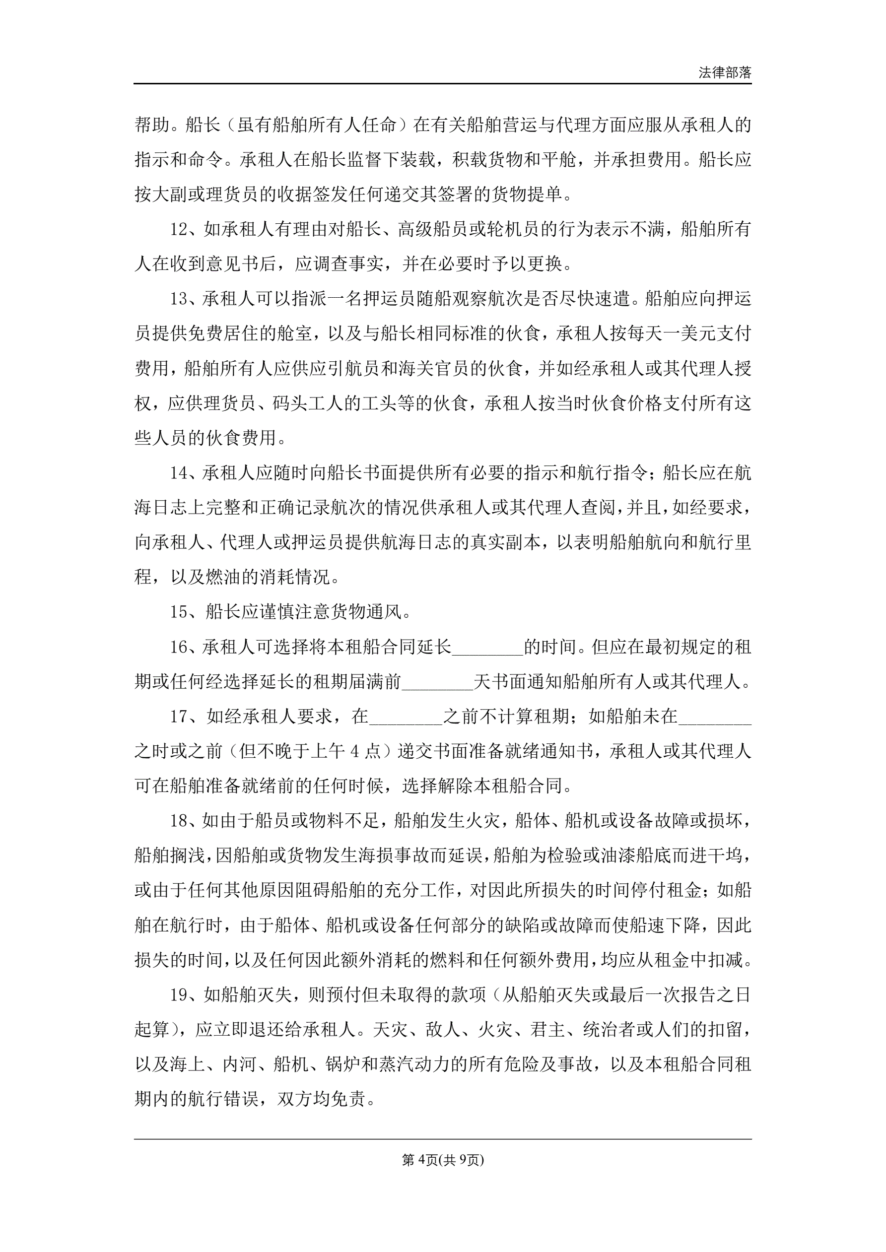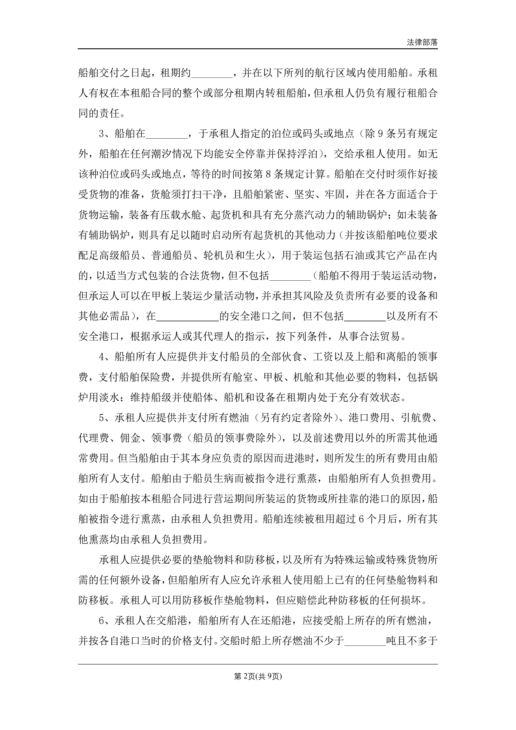 定期租船合同