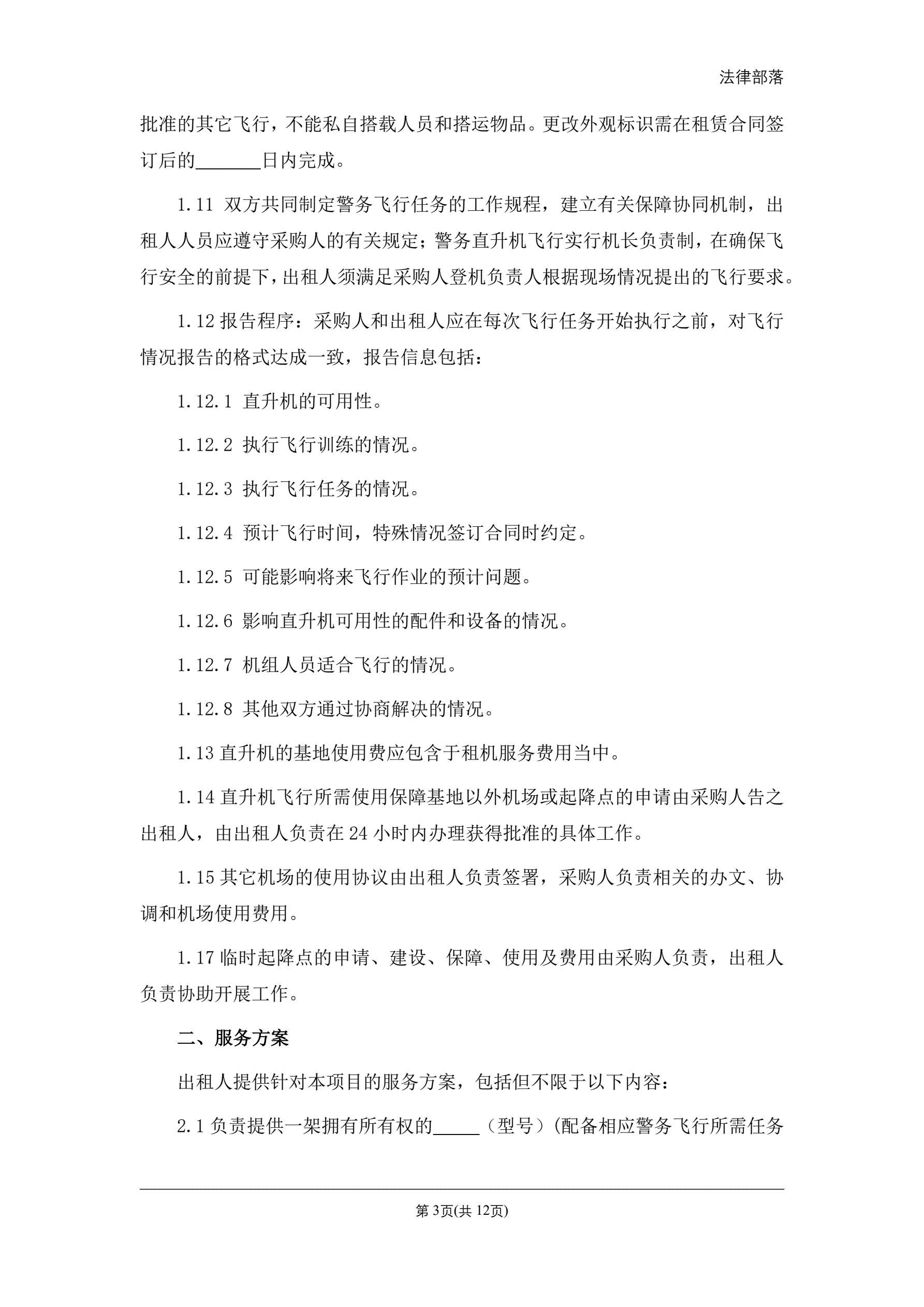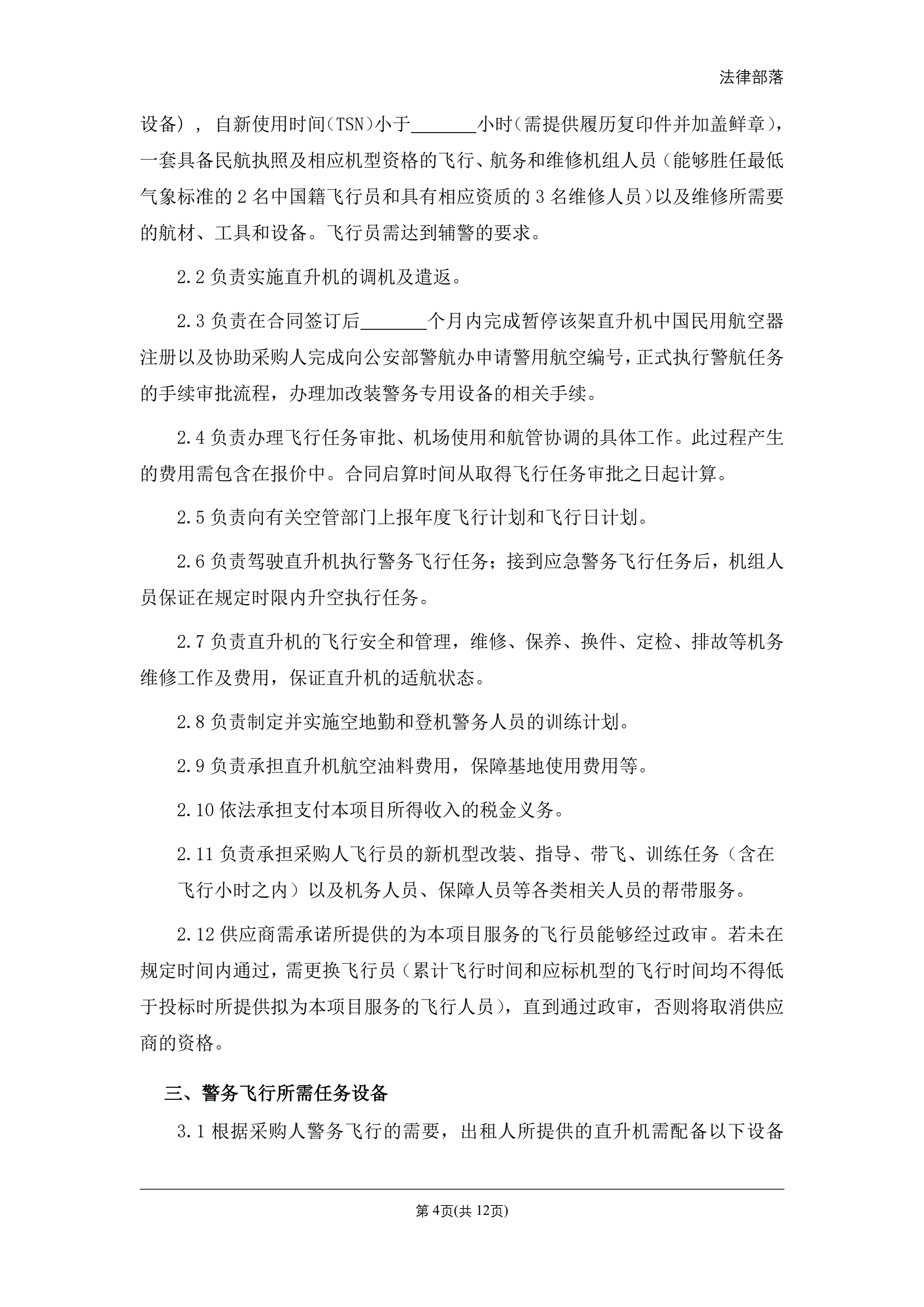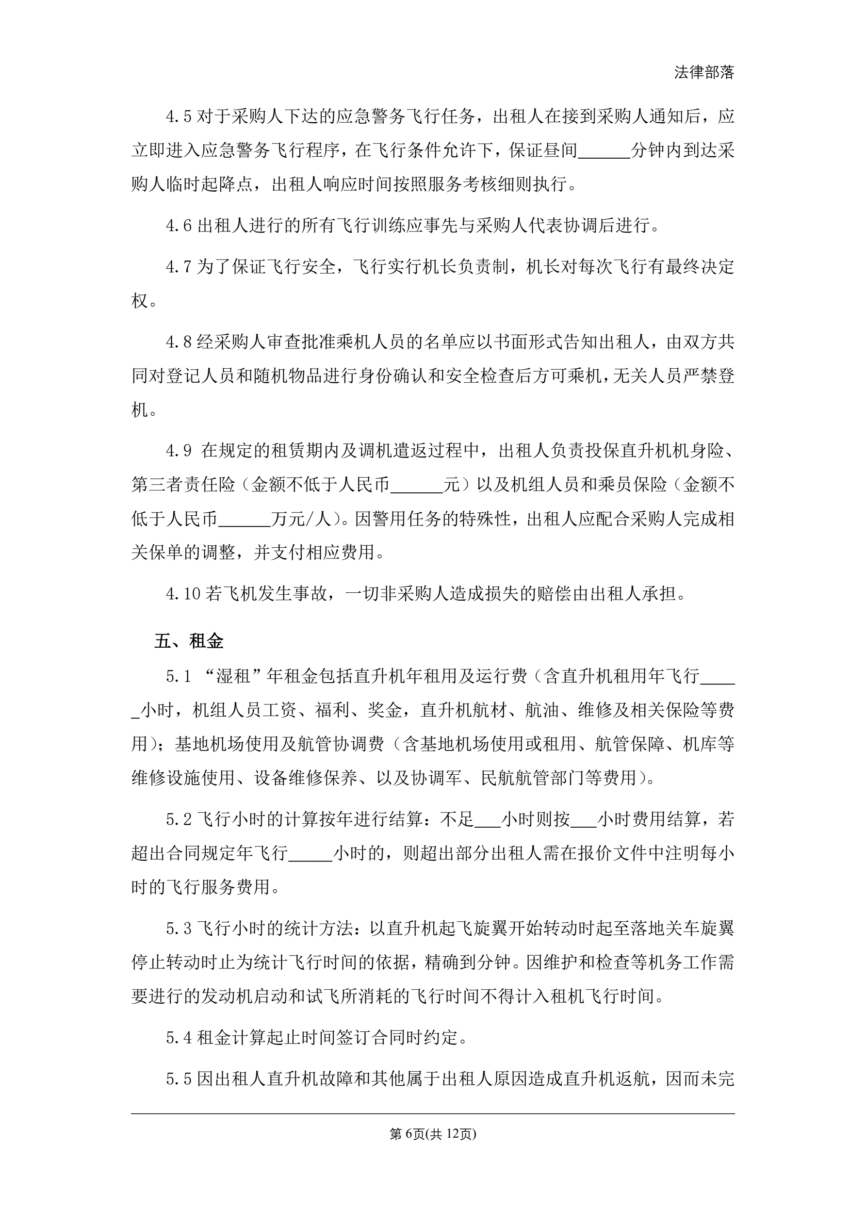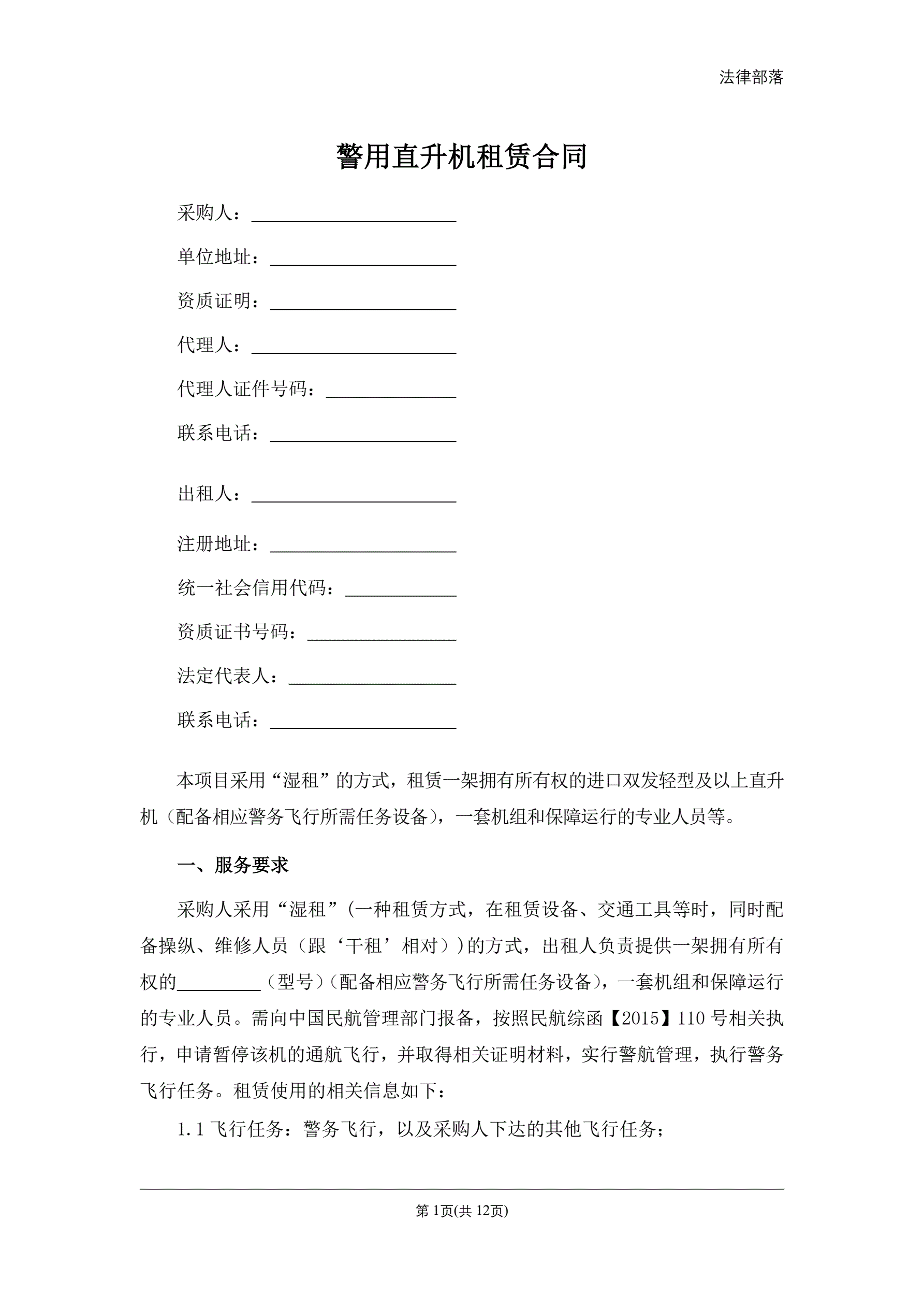 >警用直升机租赁合同(湿租)