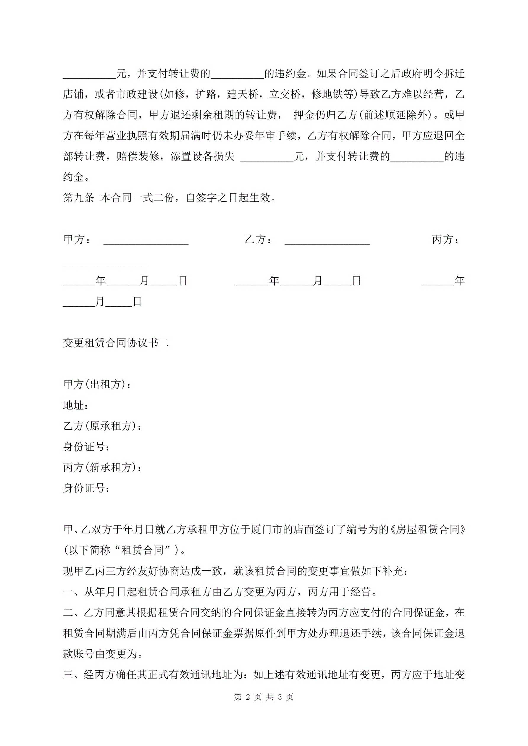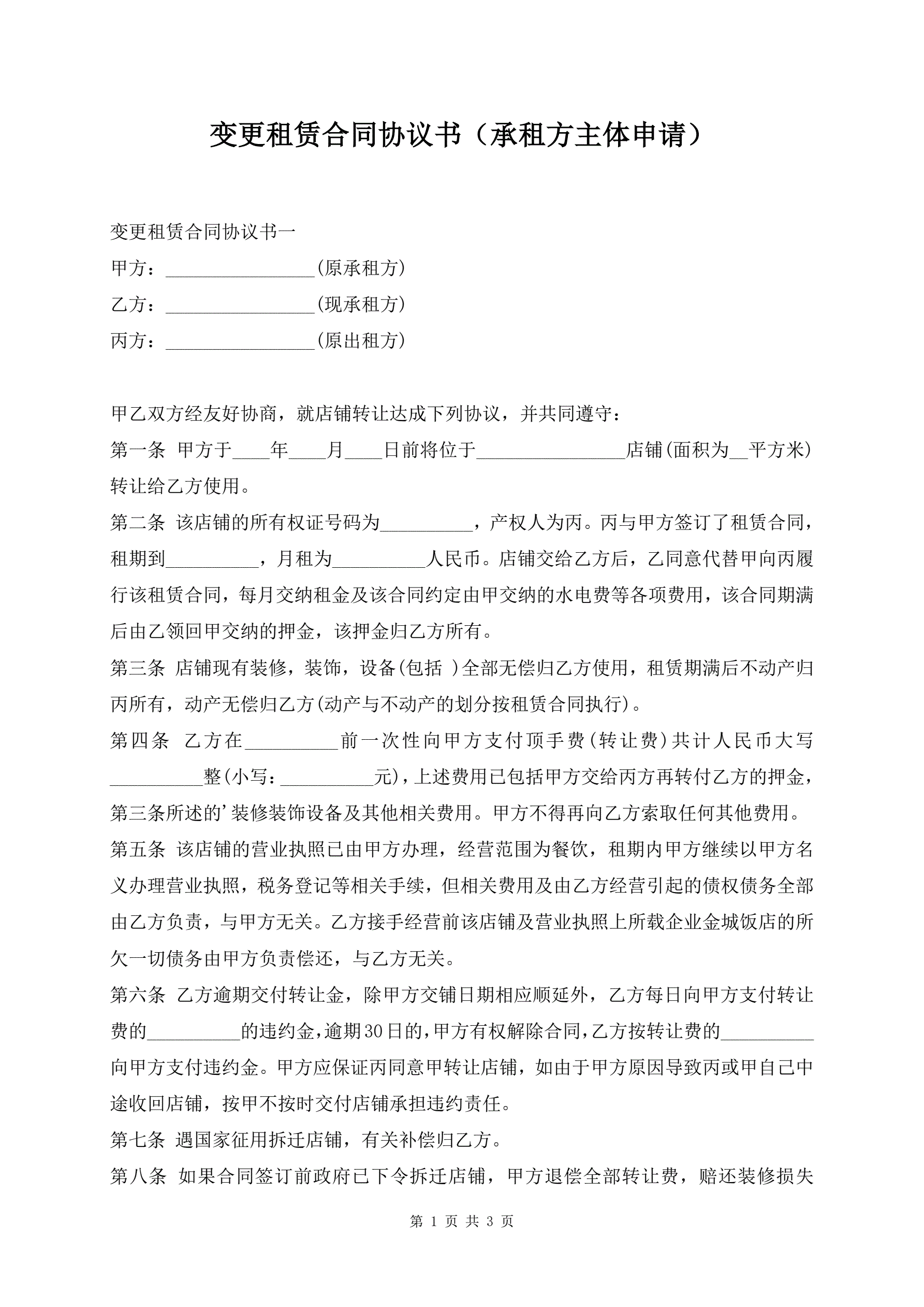 >变更租赁合同协议书(承租方主体申请)