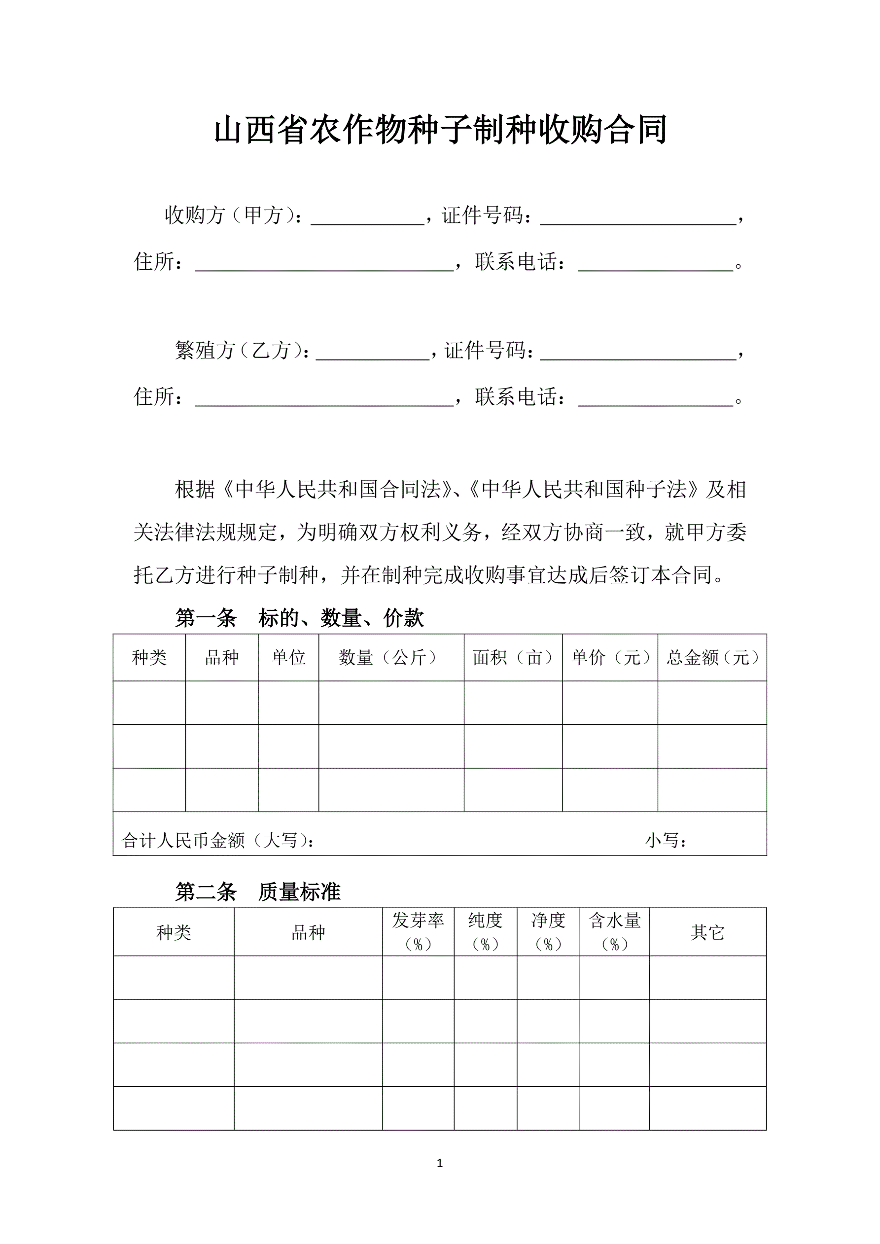 山西省农作物种子制种收购合同(批注20200630)