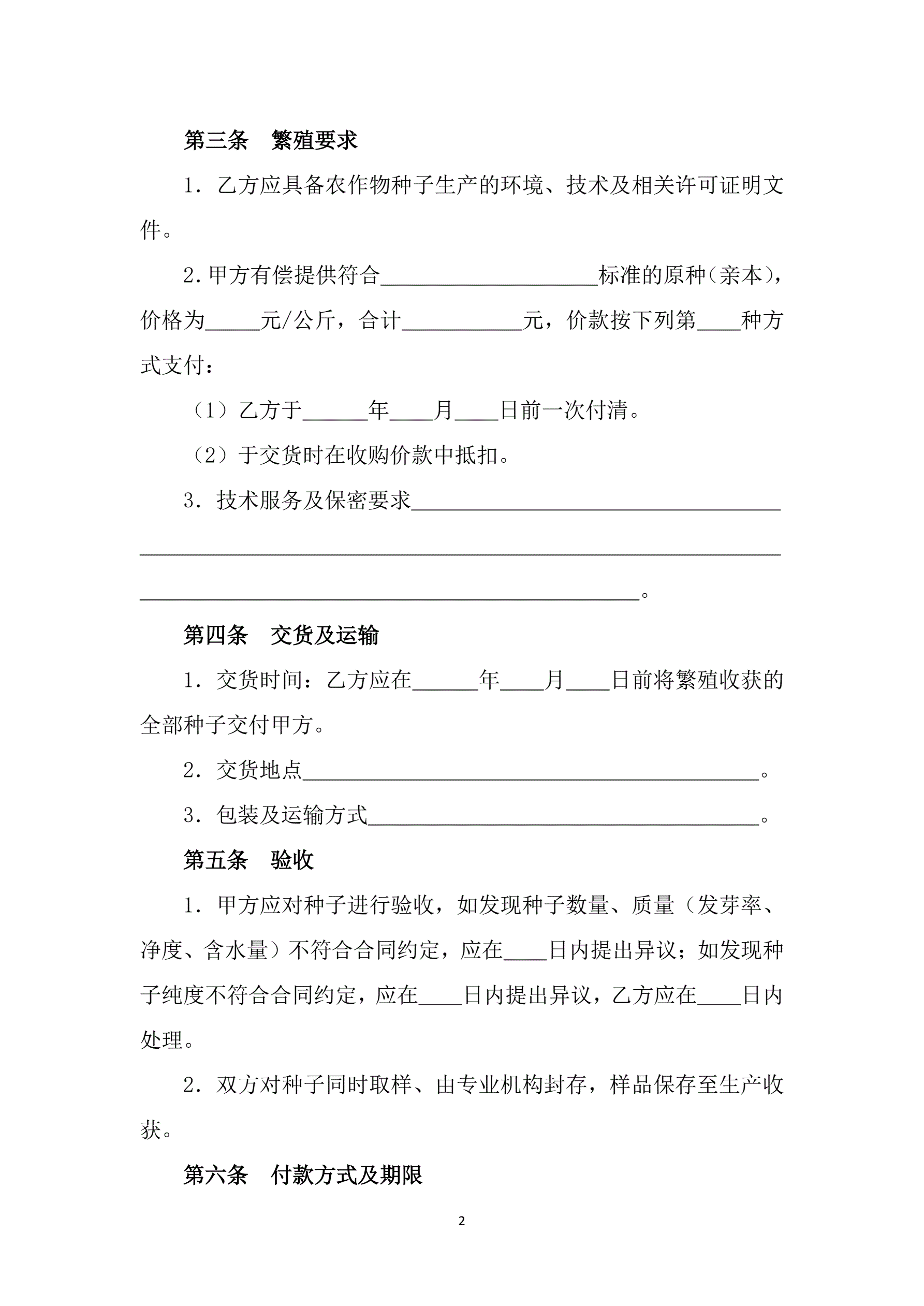 >山西省农作物种子制种收购合同(批注20200630)