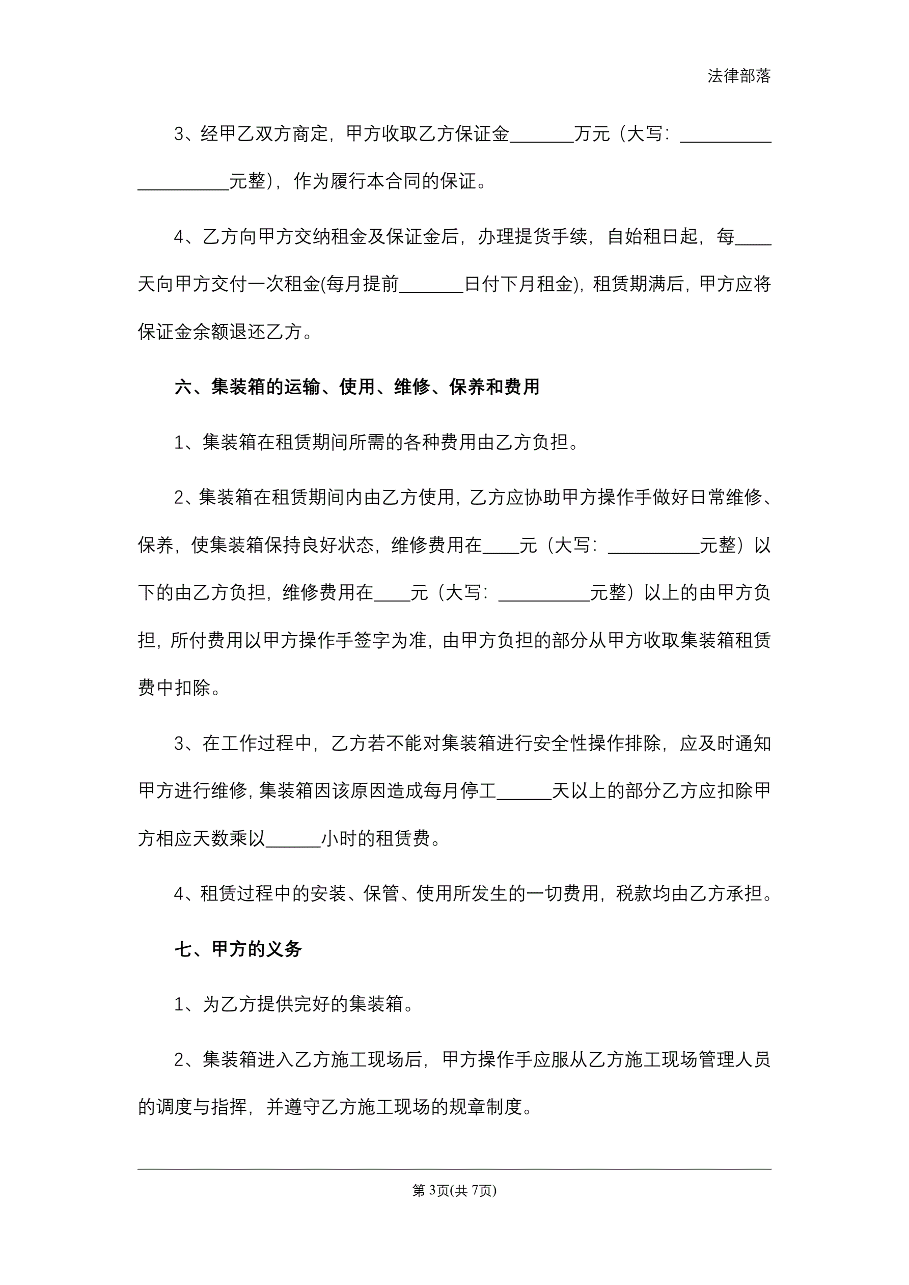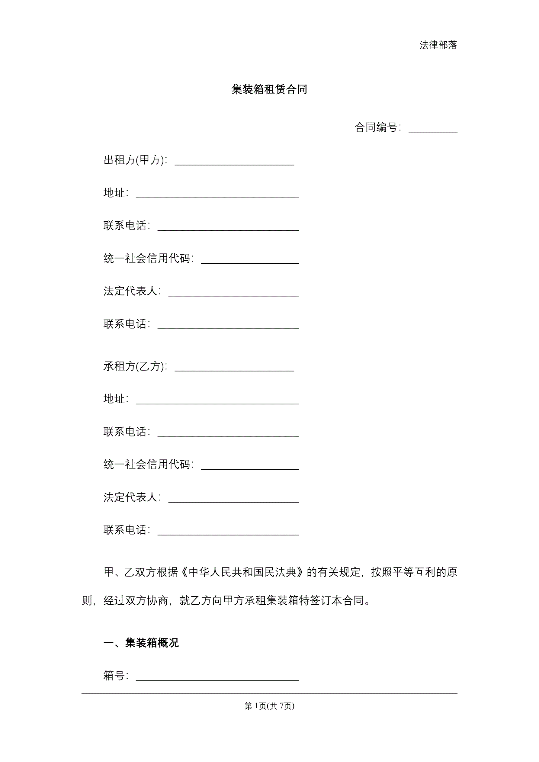 合同名称:集装箱租赁合同