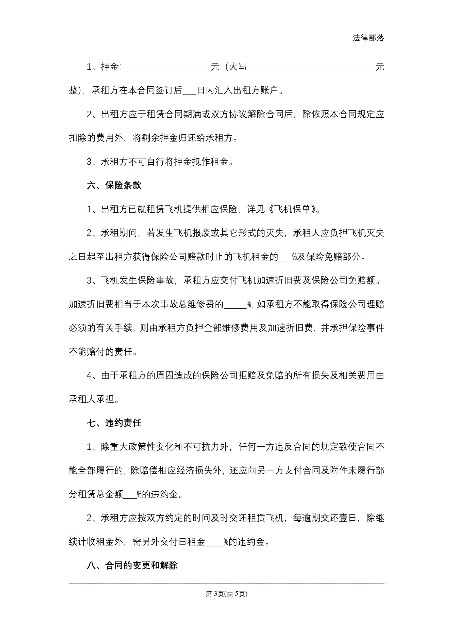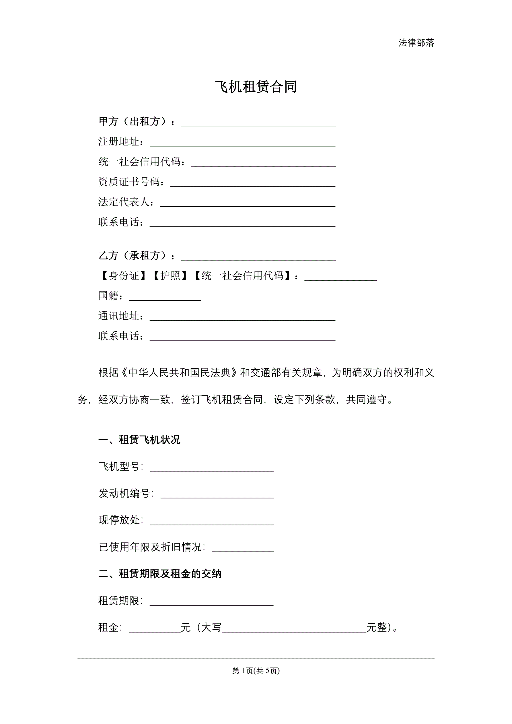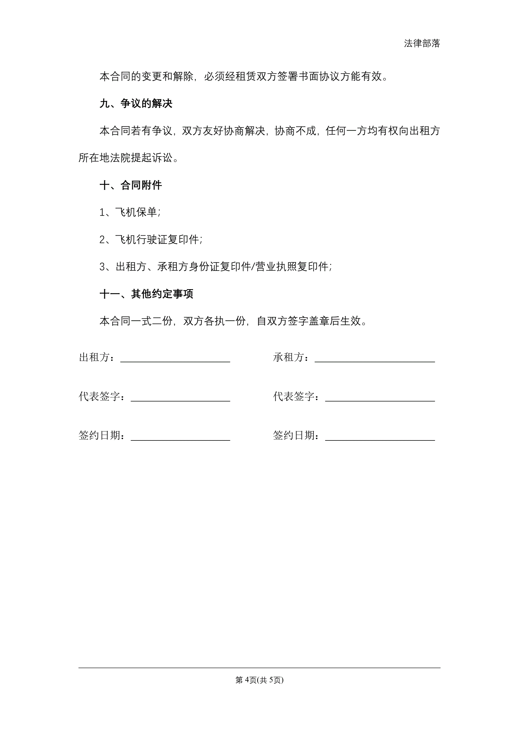飞机租赁合同
