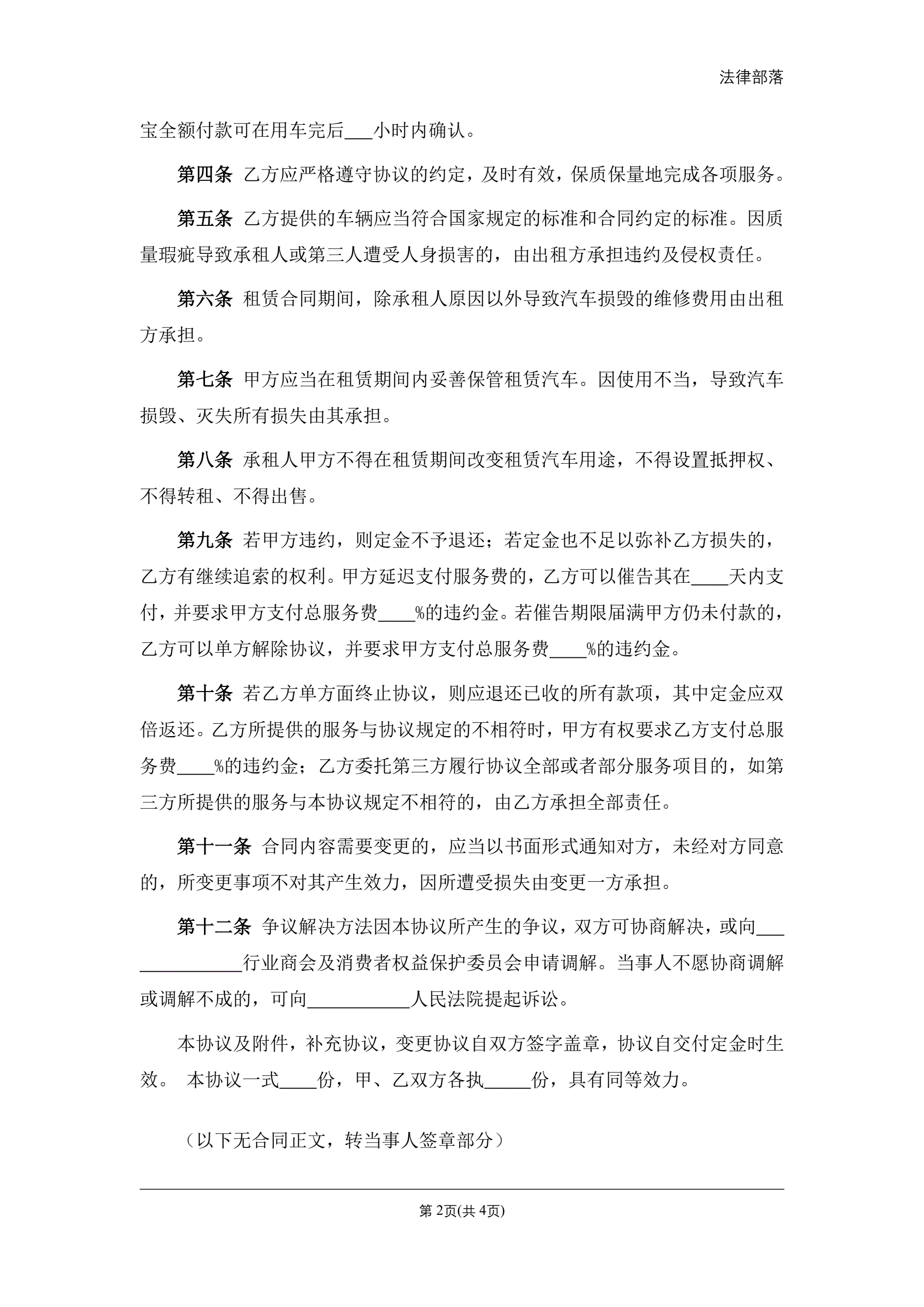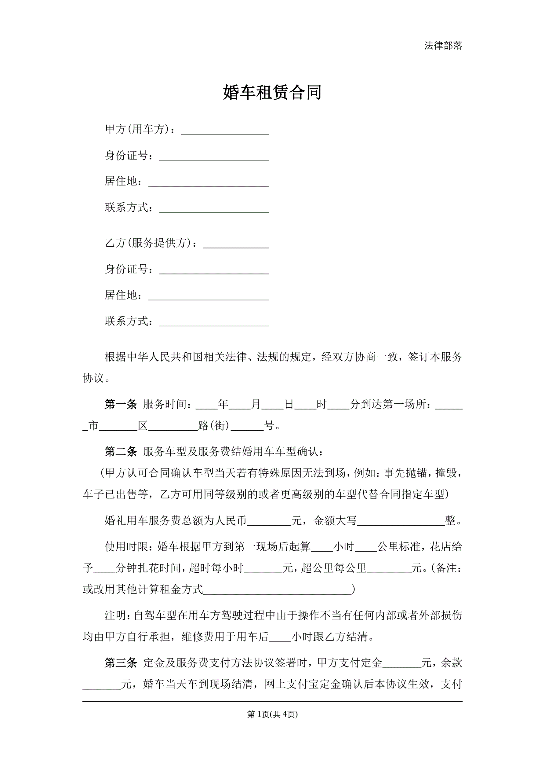 婚车租赁合同
