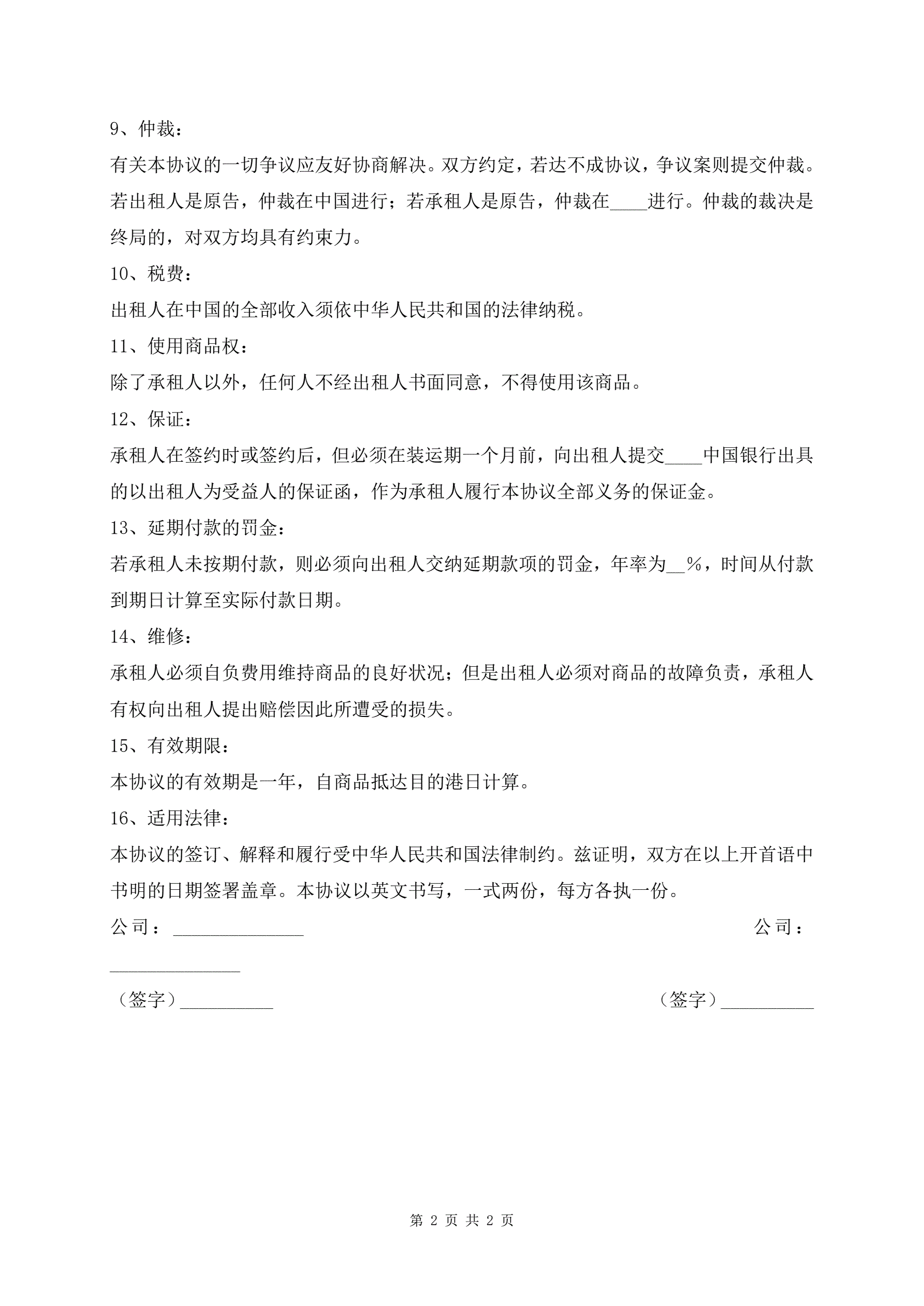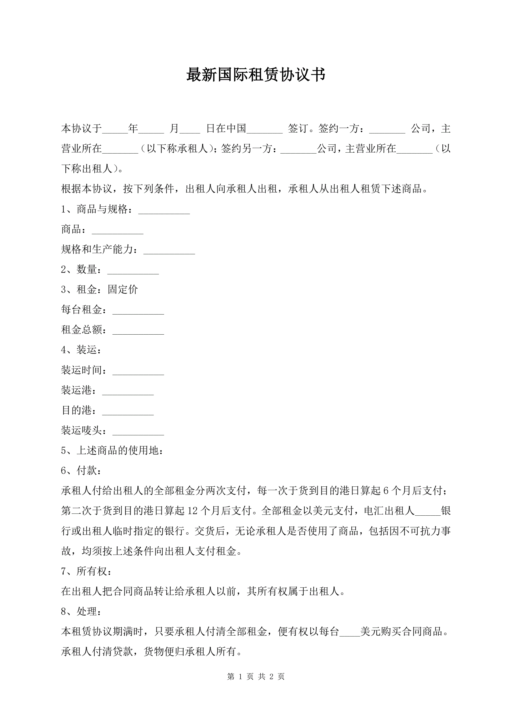 >最新国际租赁协议书
