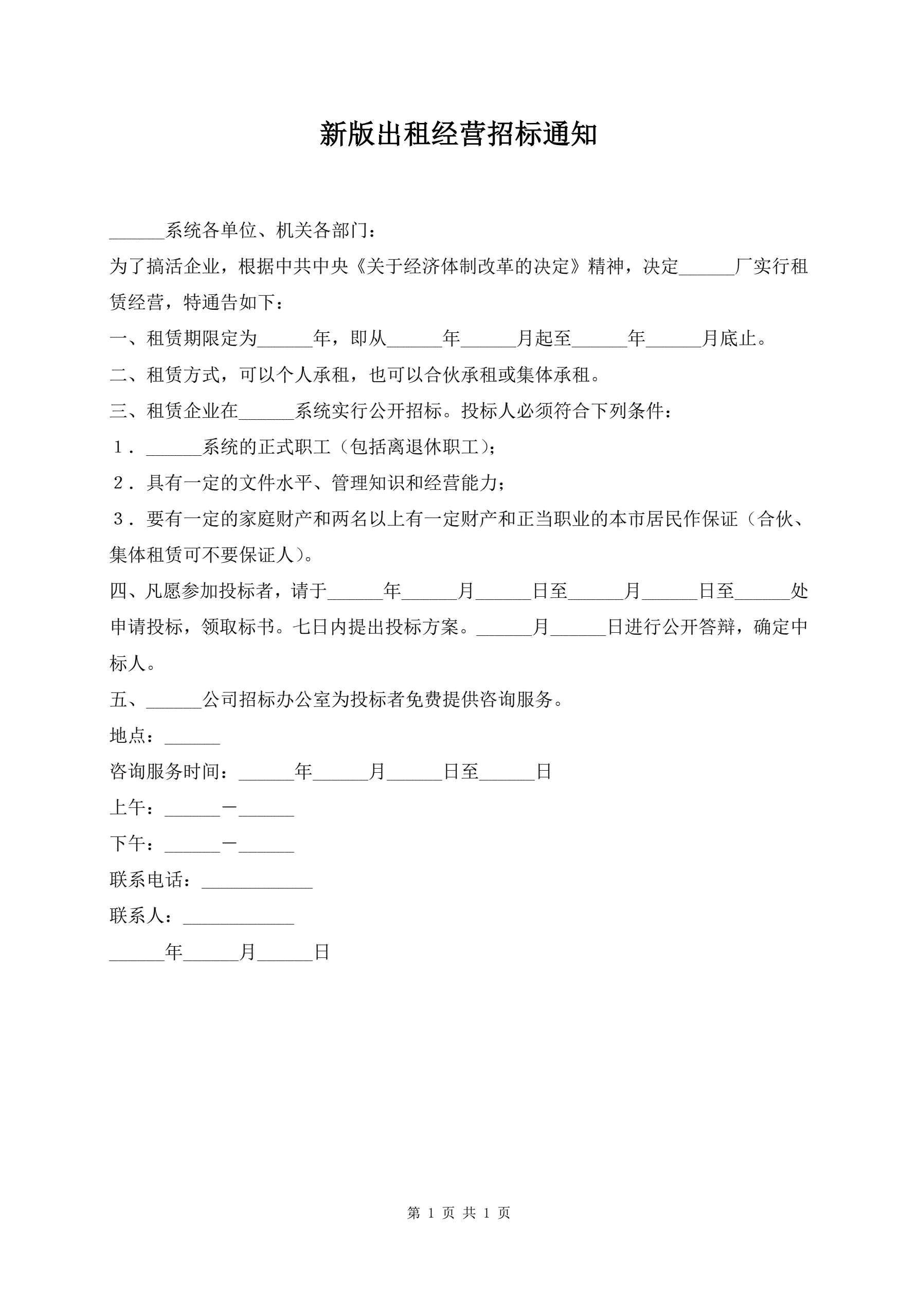 新版出租经营招标通知