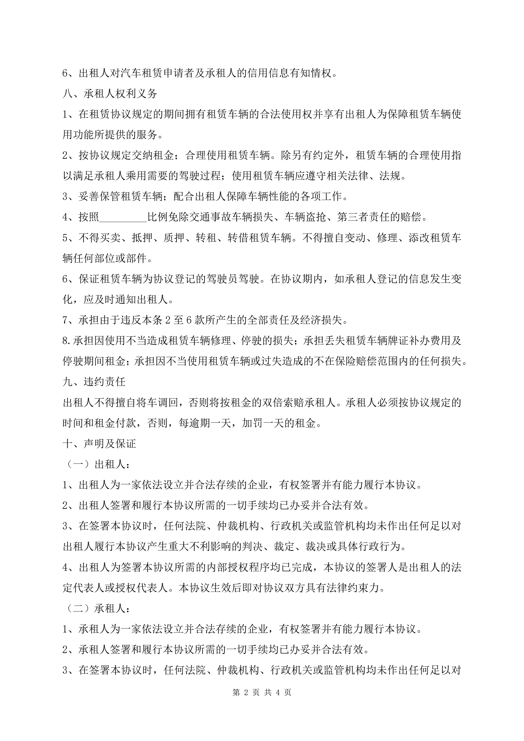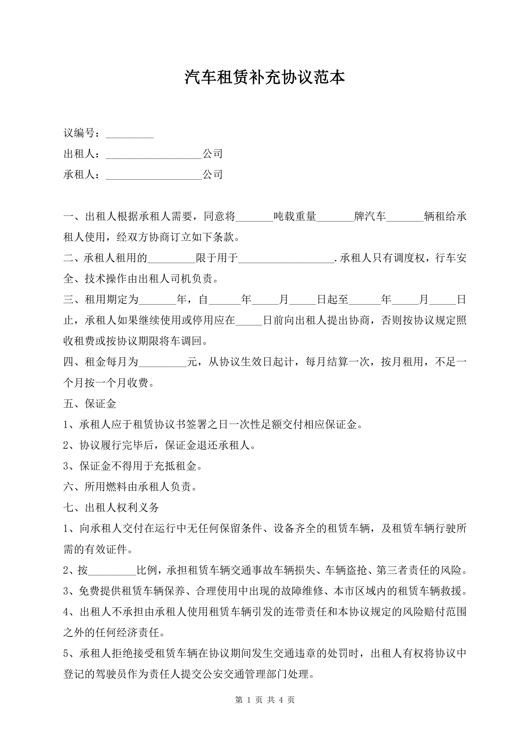 汽车租赁补充协议范本
