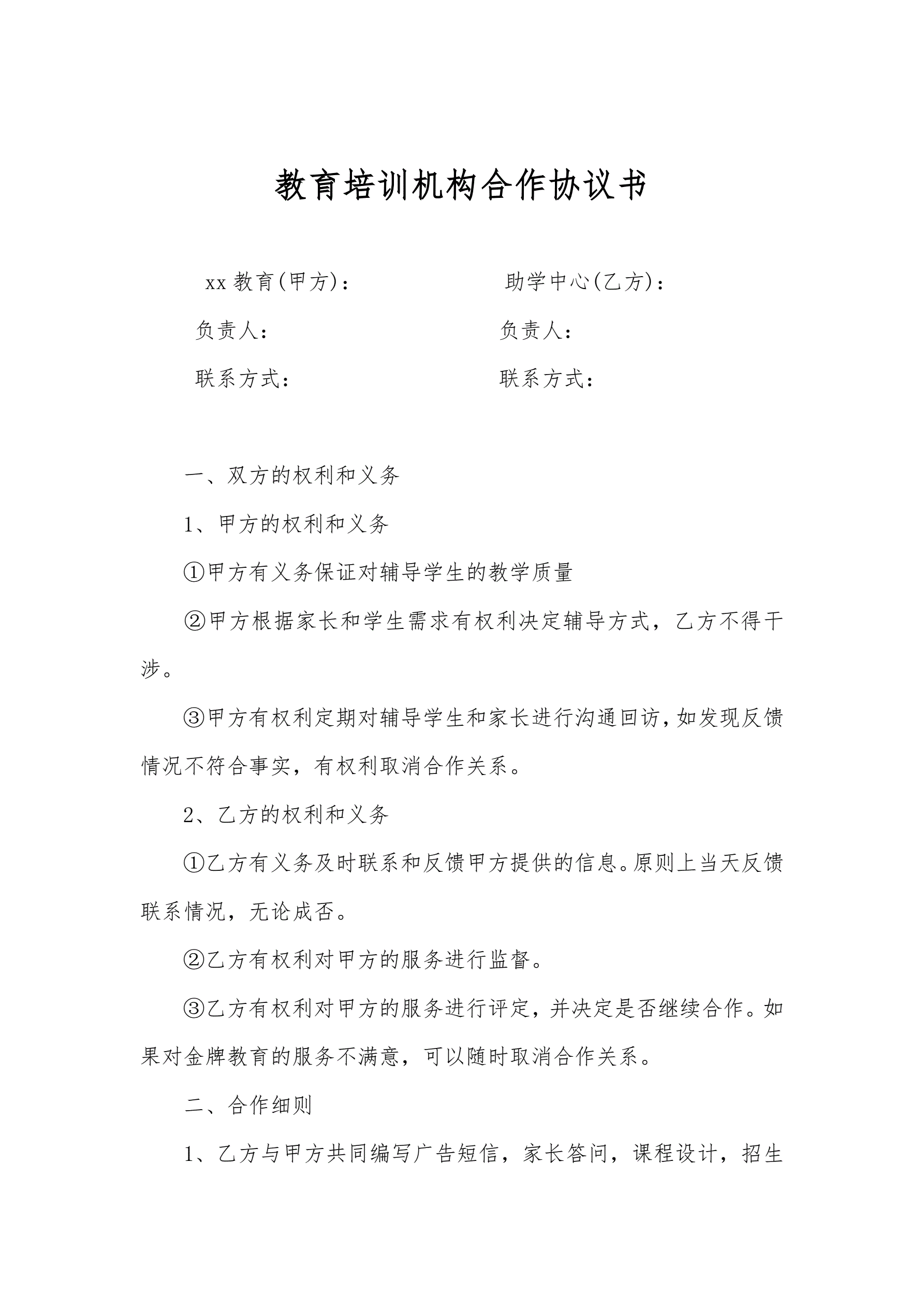 教育培训机构合作协议书