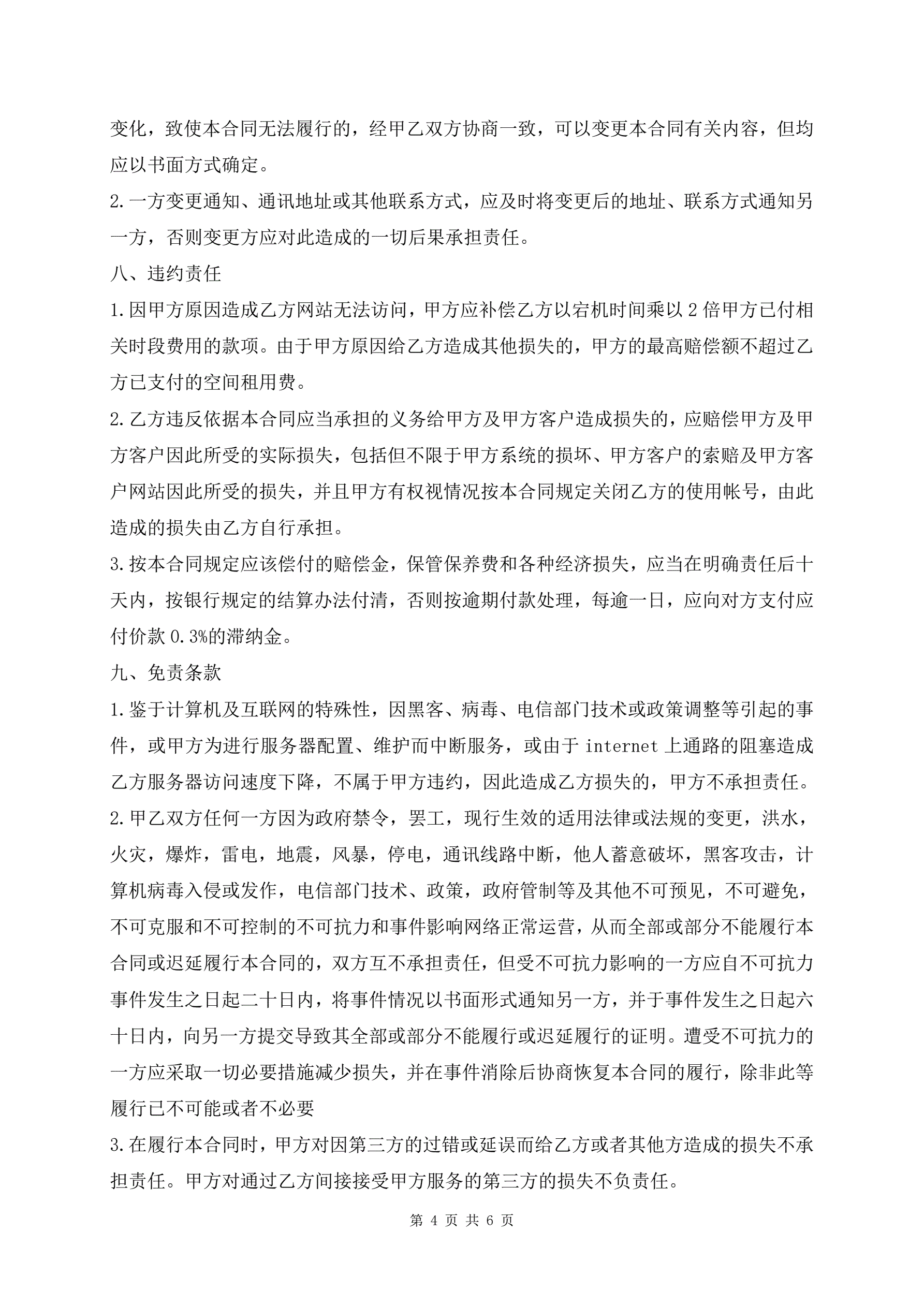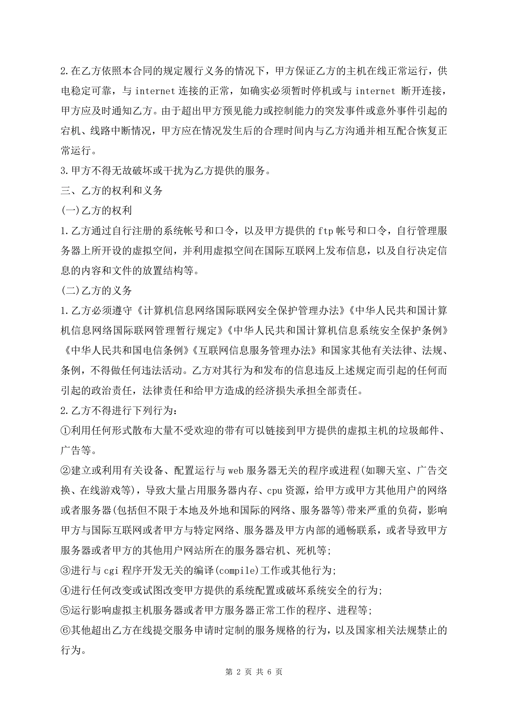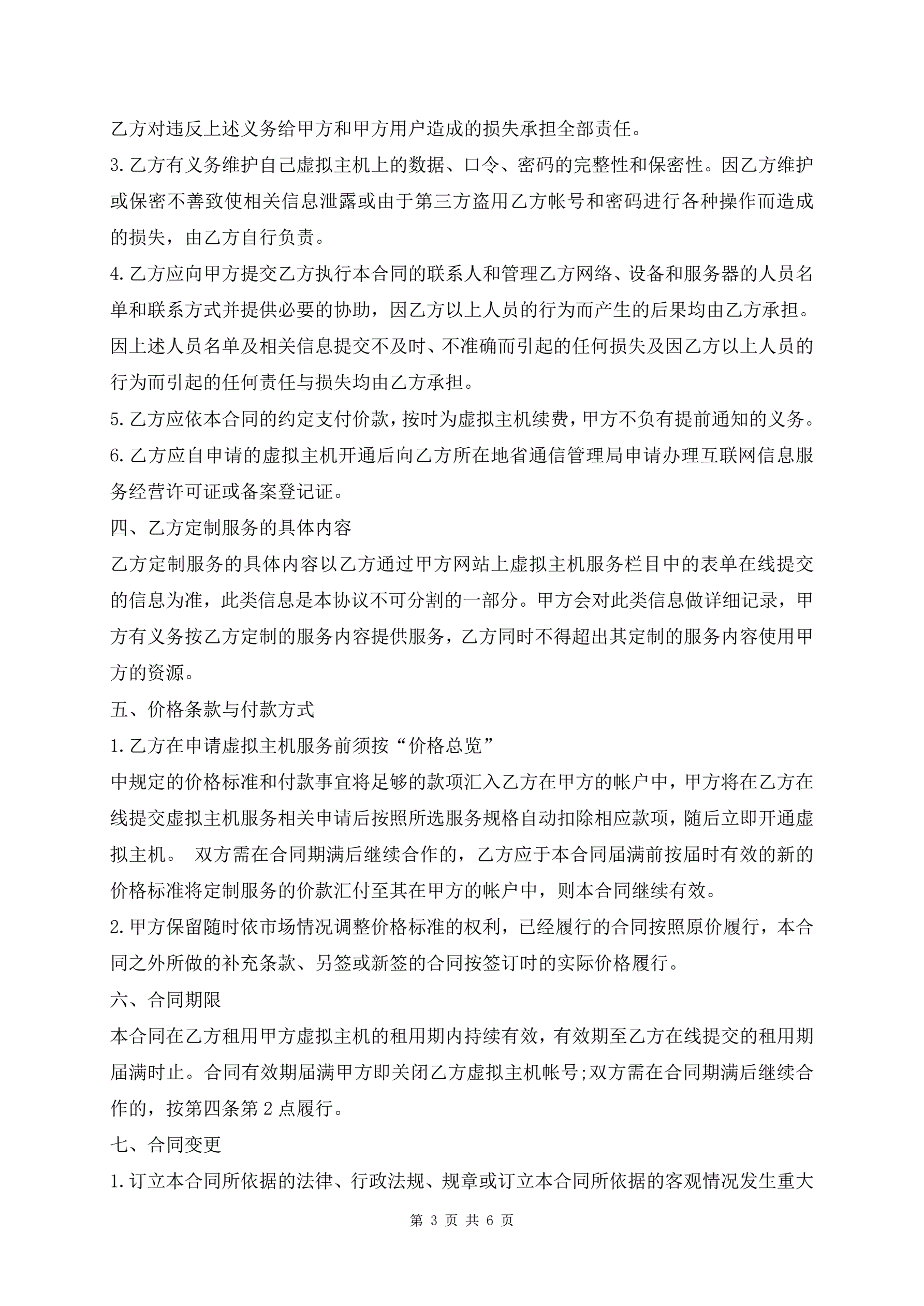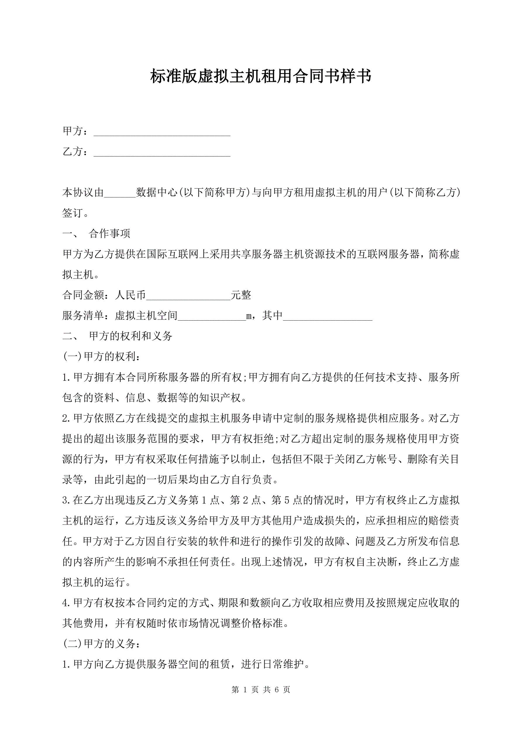 标准版虚拟主机租用合同书样书