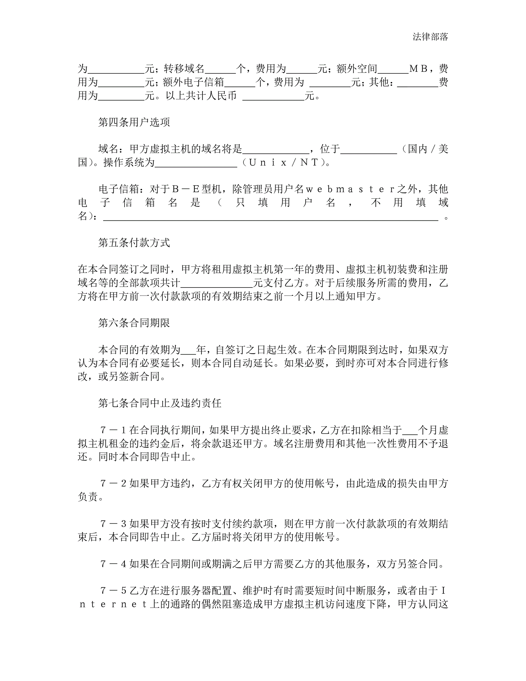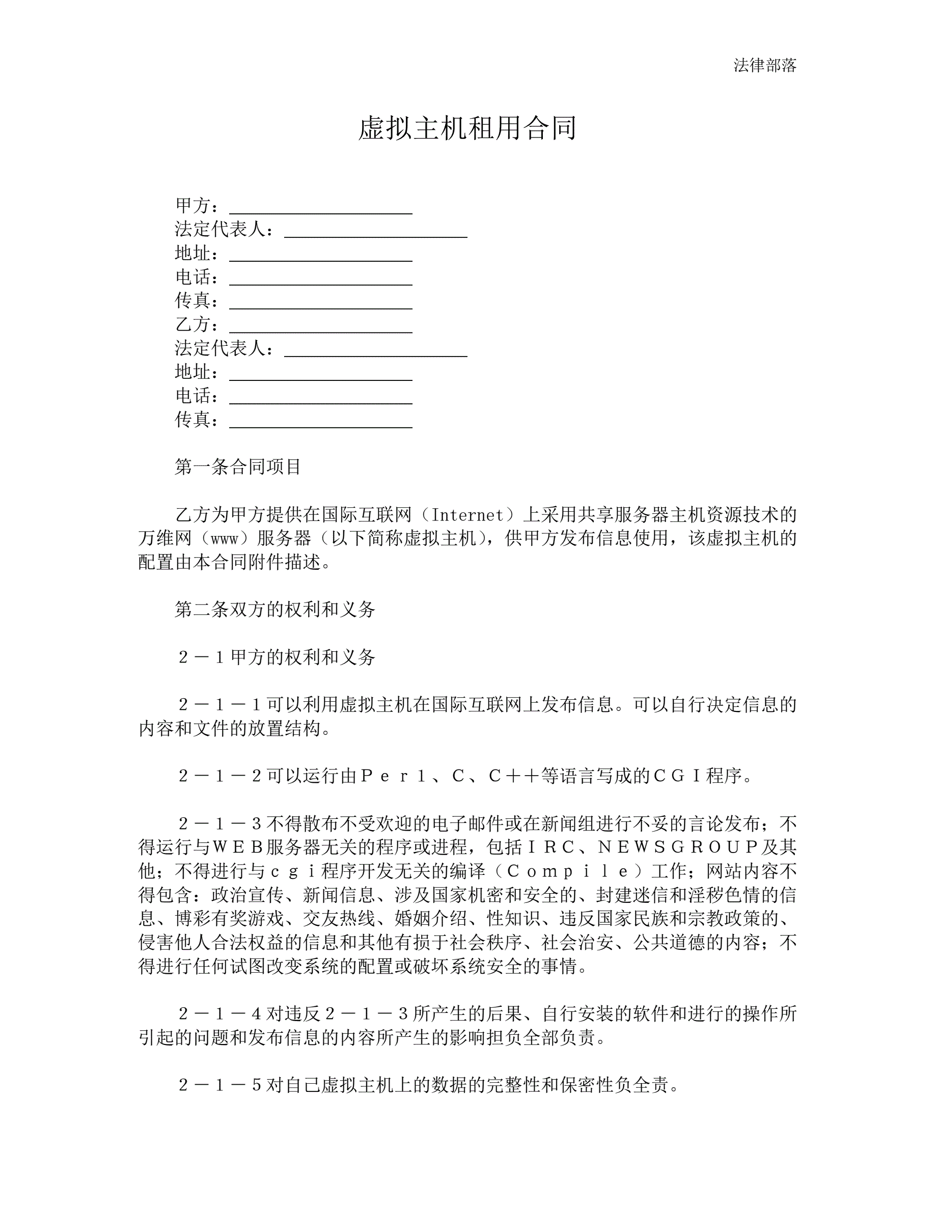 虚拟主机租用合同