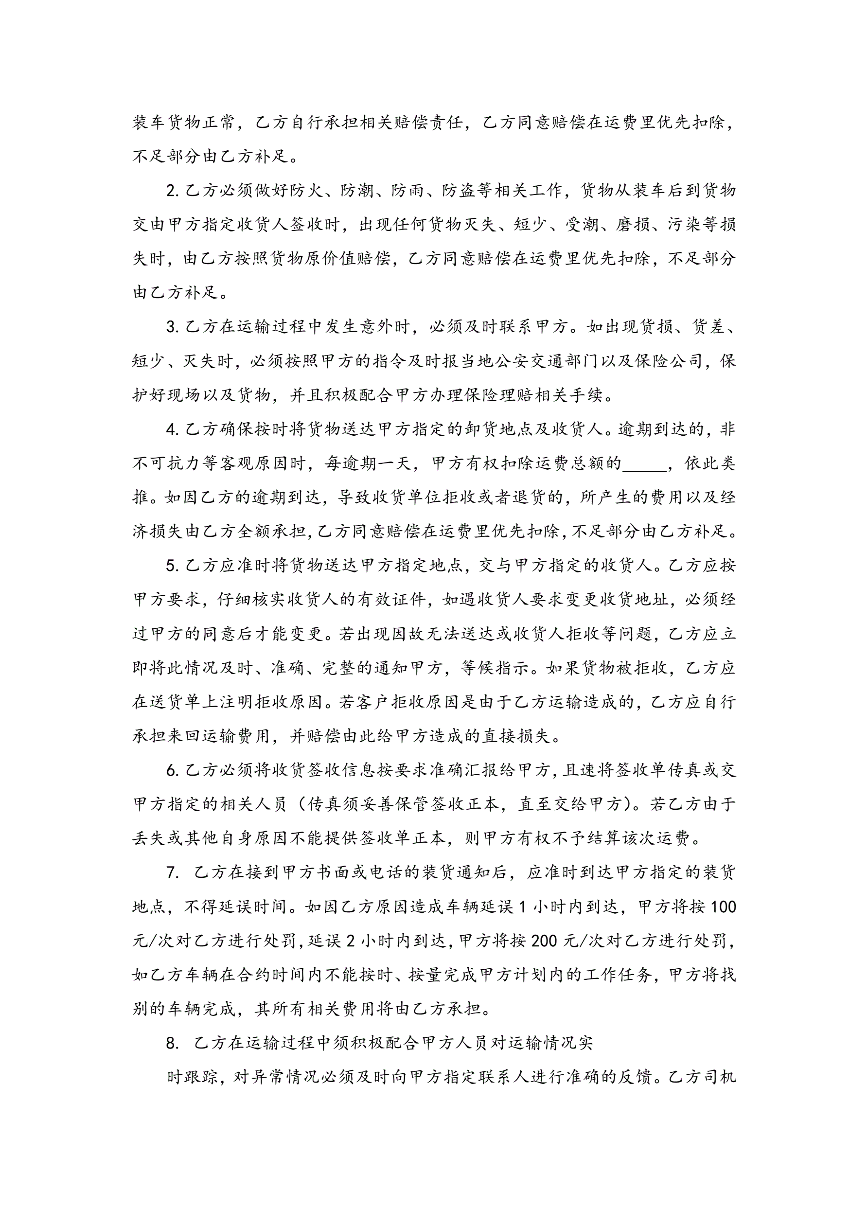 合同名称:车辆承运合同书(与司机长期)