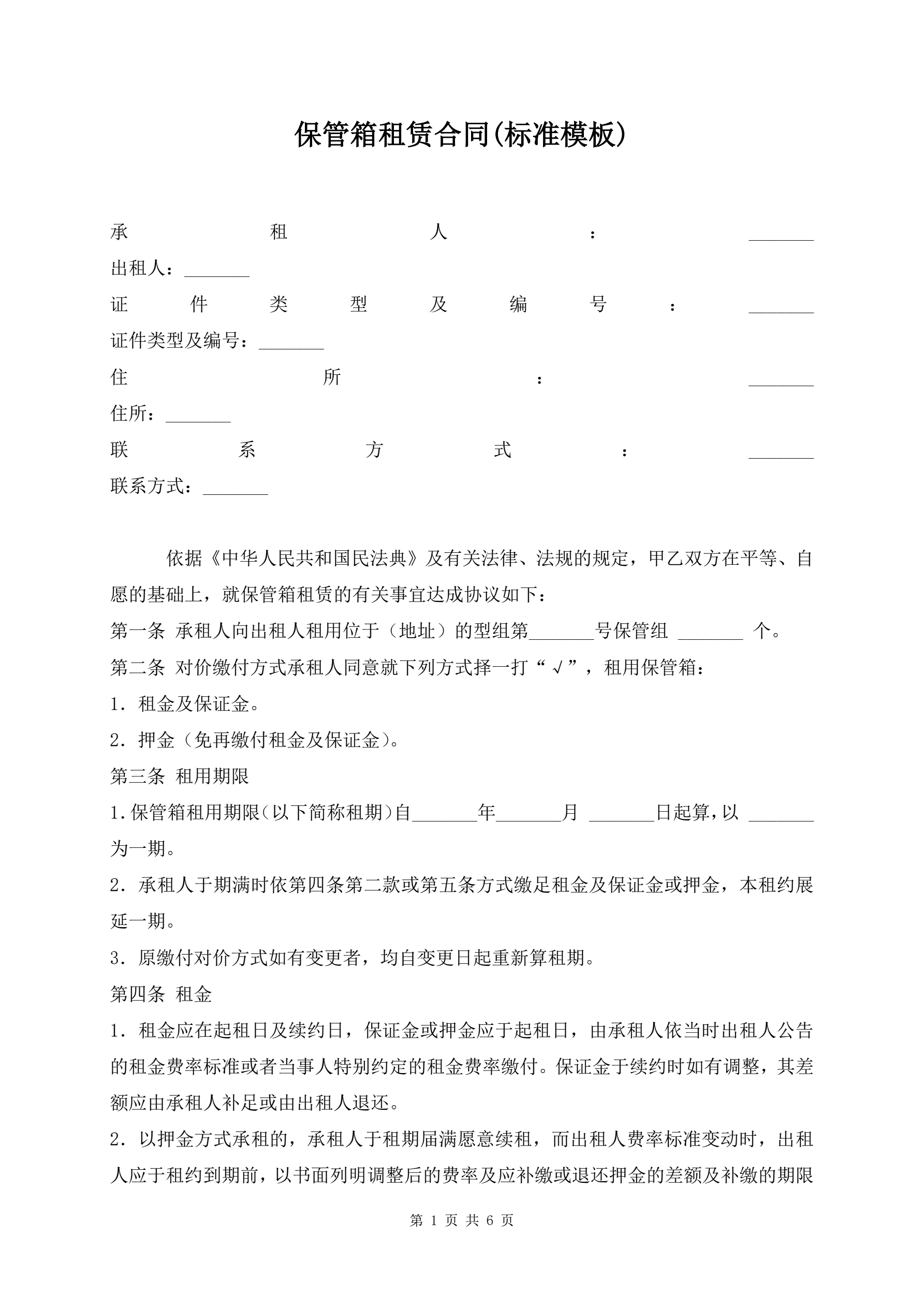 保管箱租赁合同(标准模板)