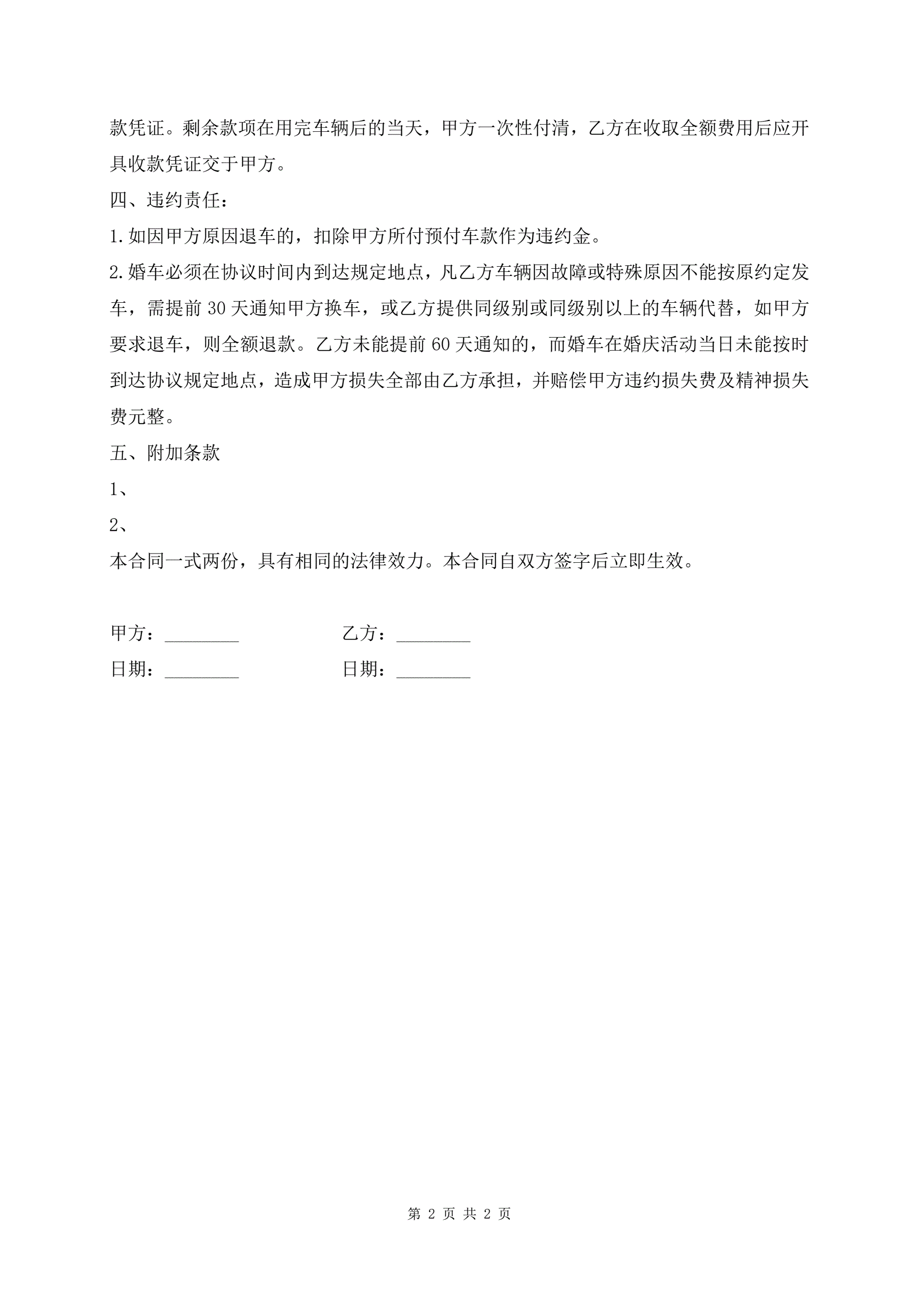 >婚车租用合同简单范本