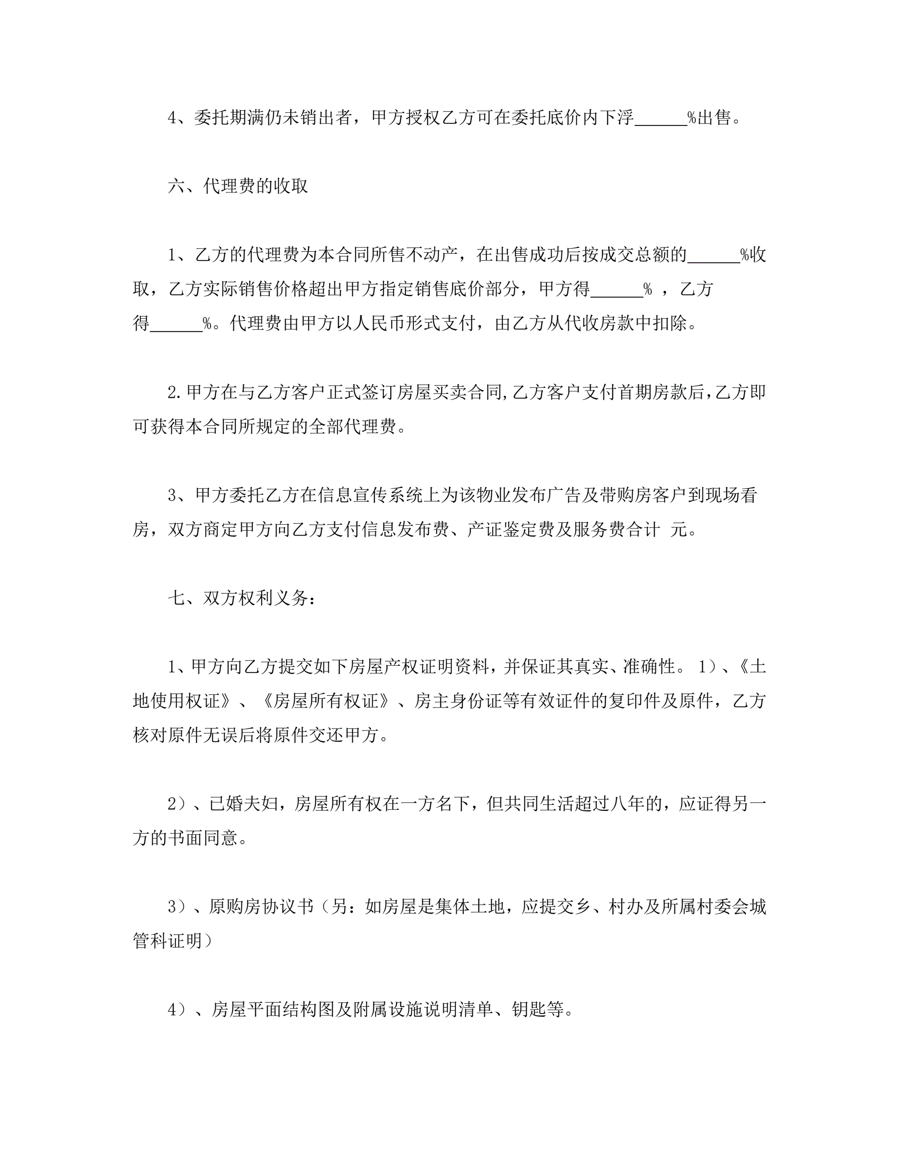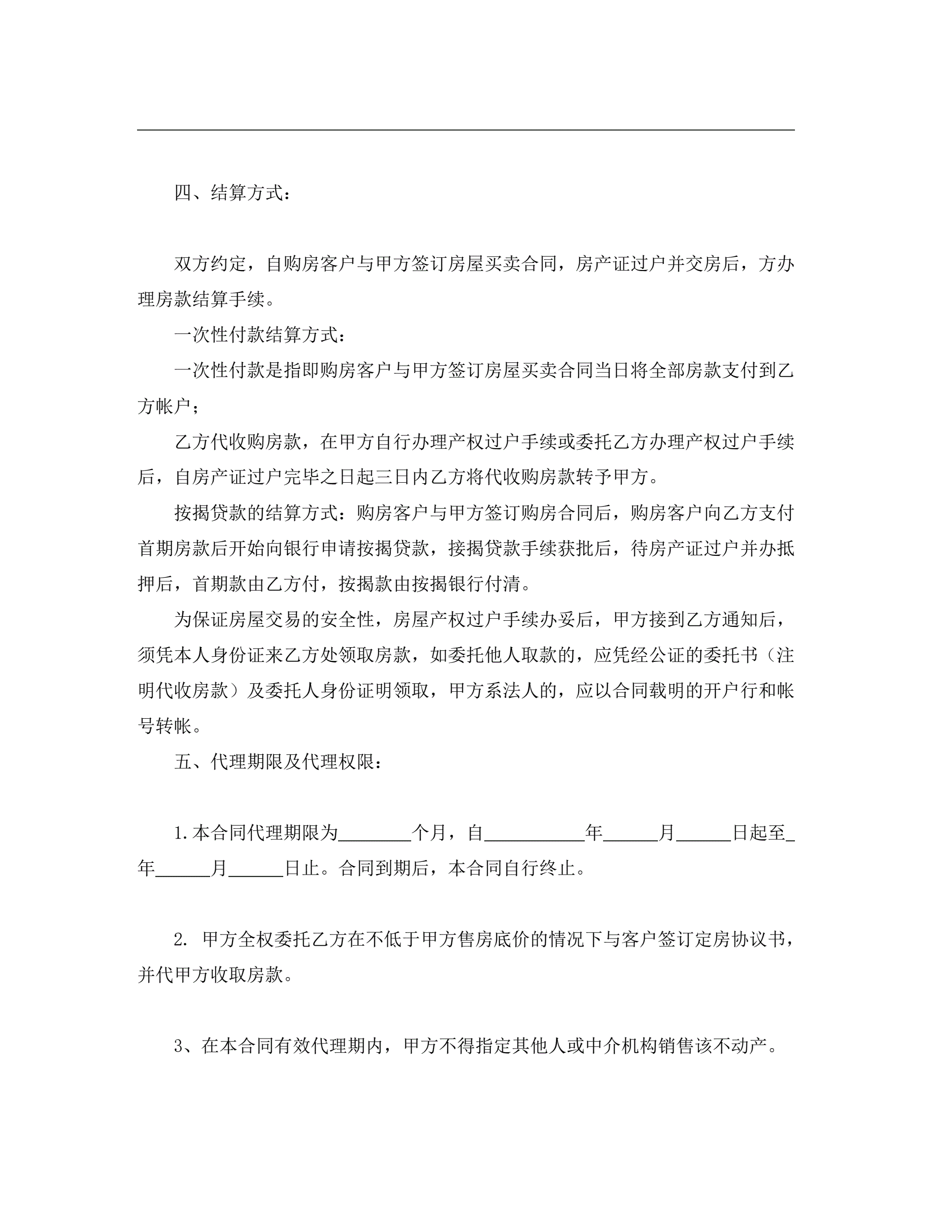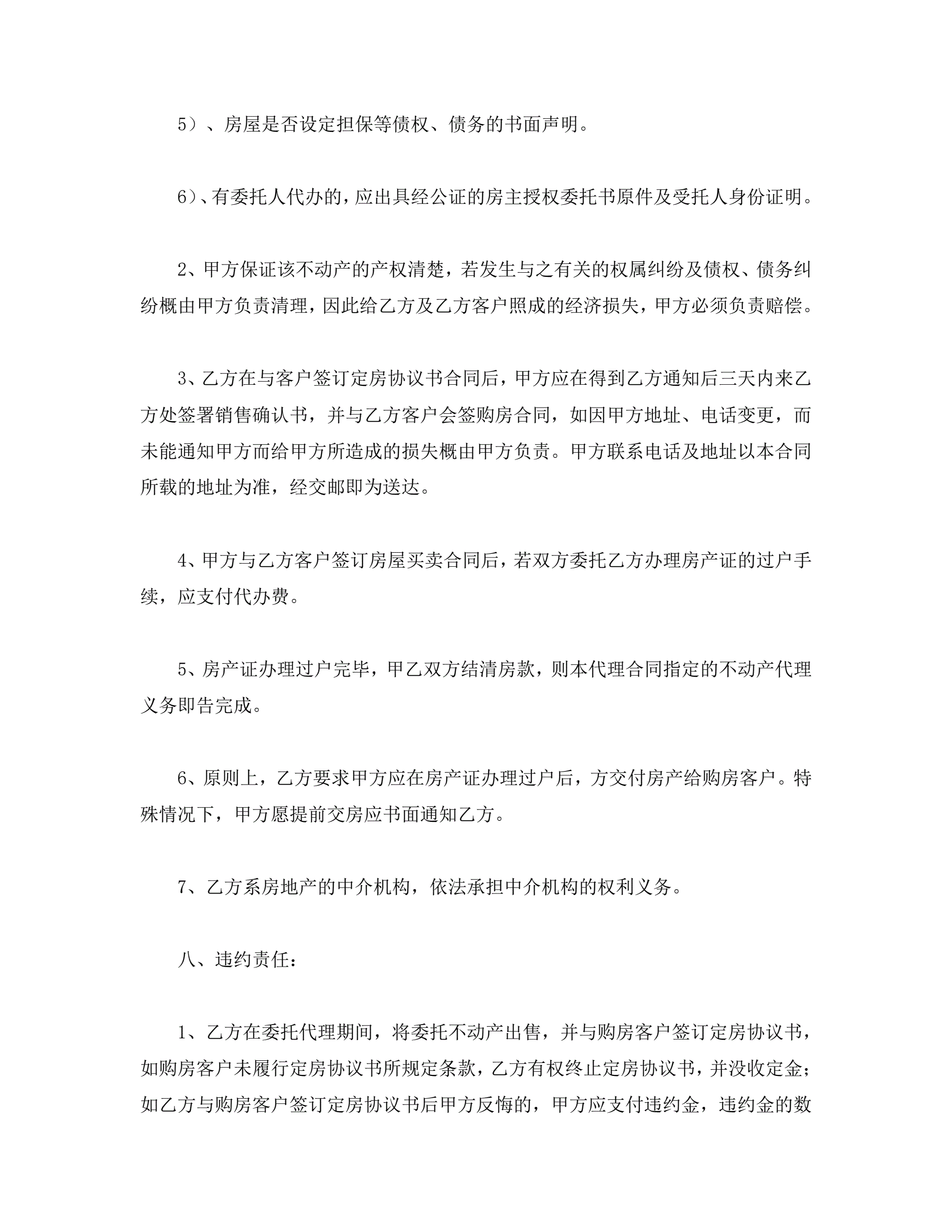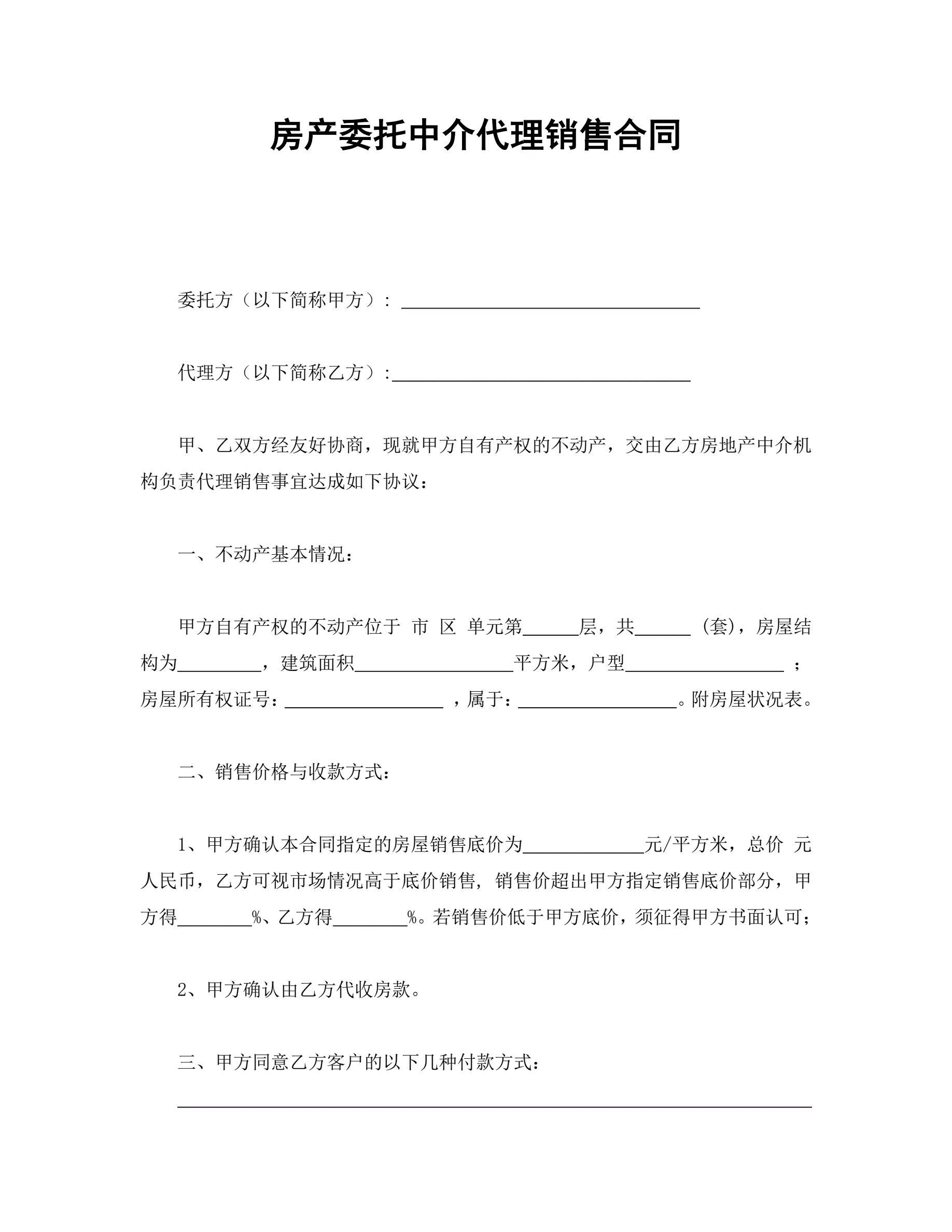 >房产委托中介代理销售合同