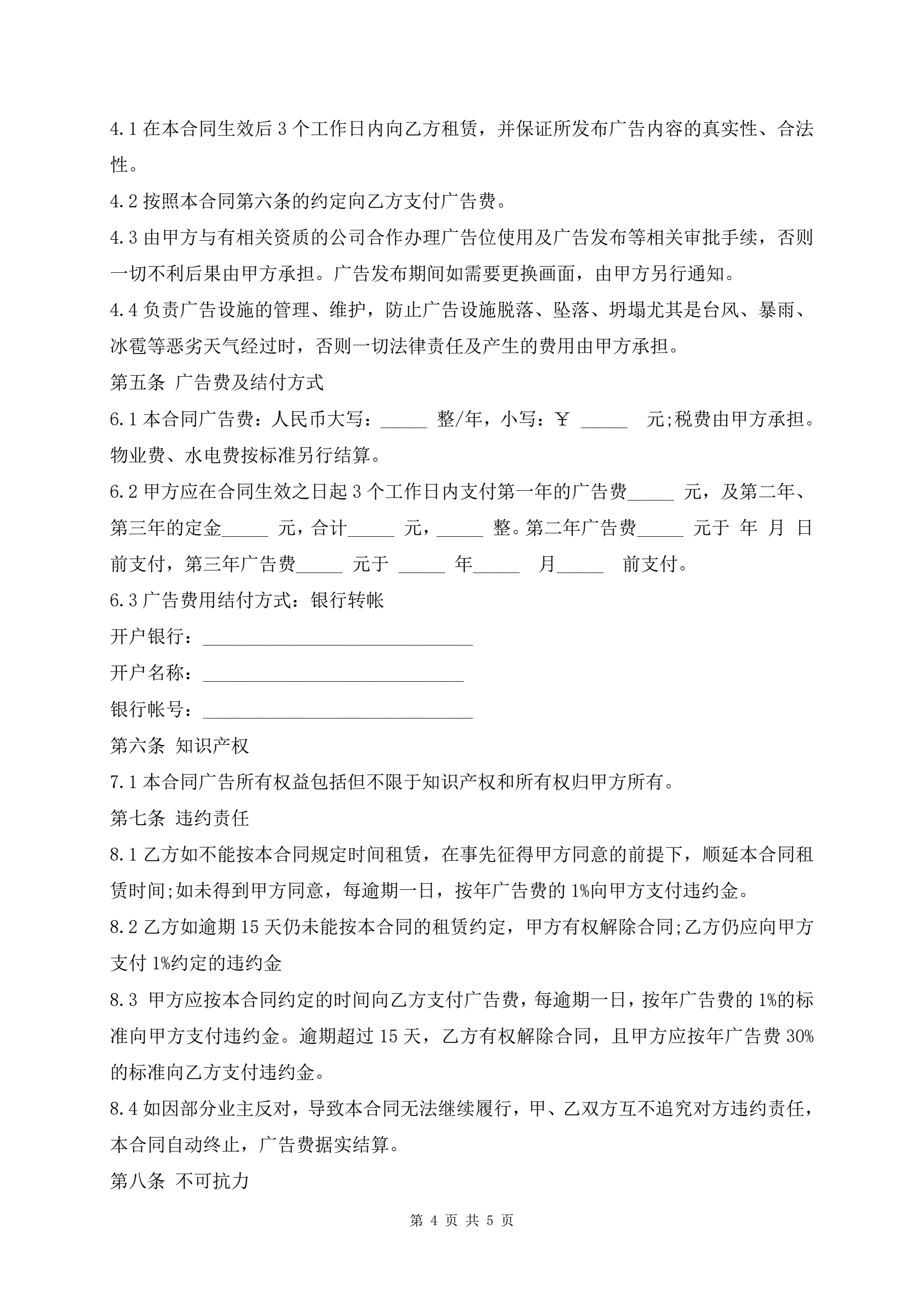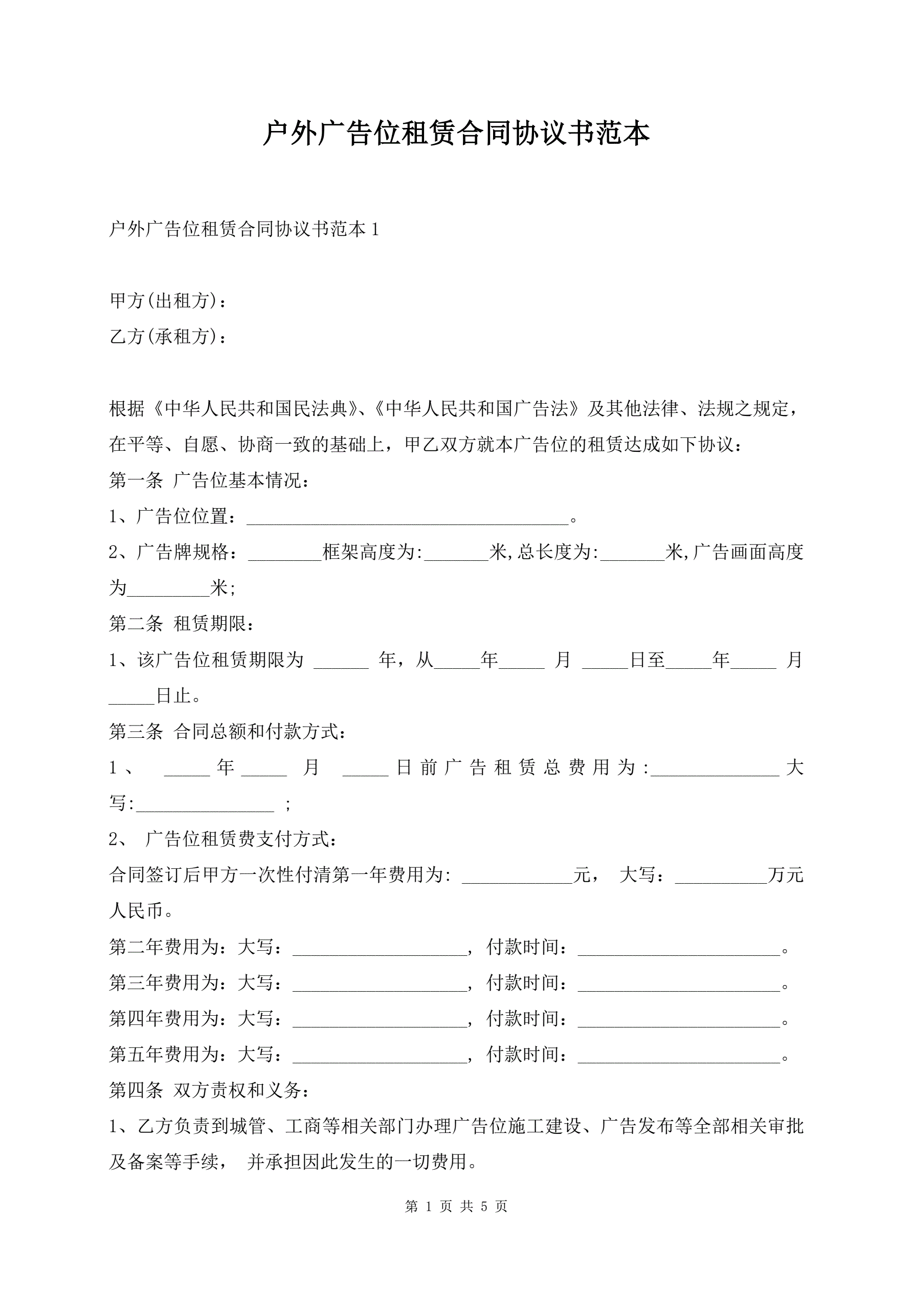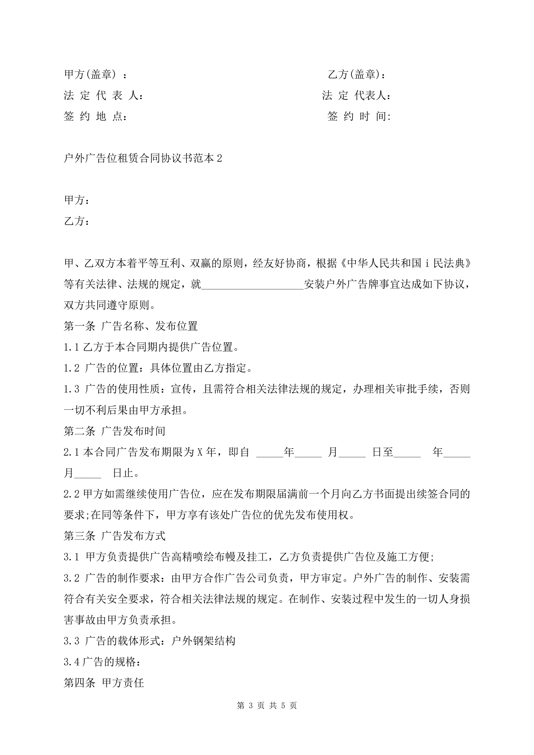 户外广告位租赁合同协议书范本
