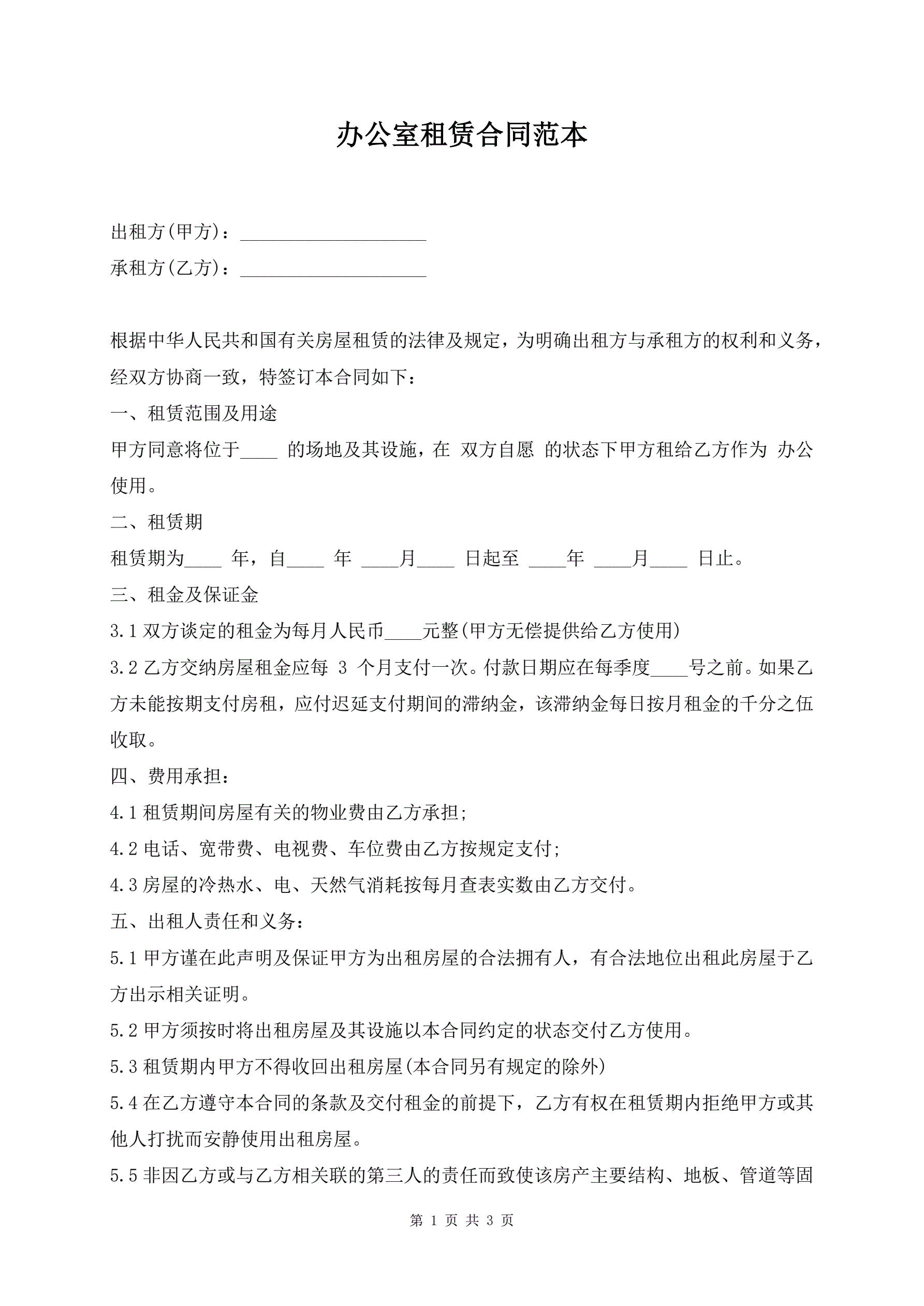 >办公室租赁合同范本
