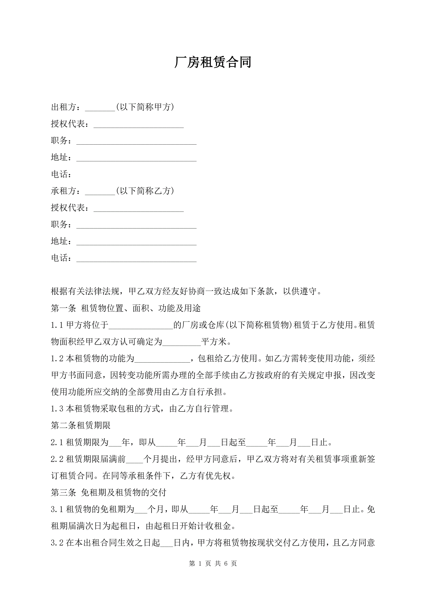 厂房租赁合同