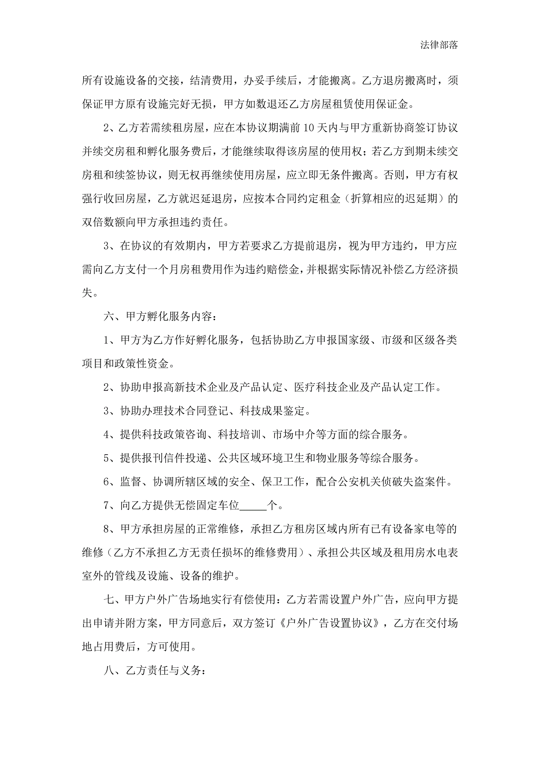 企业入驻孵化服务协议书