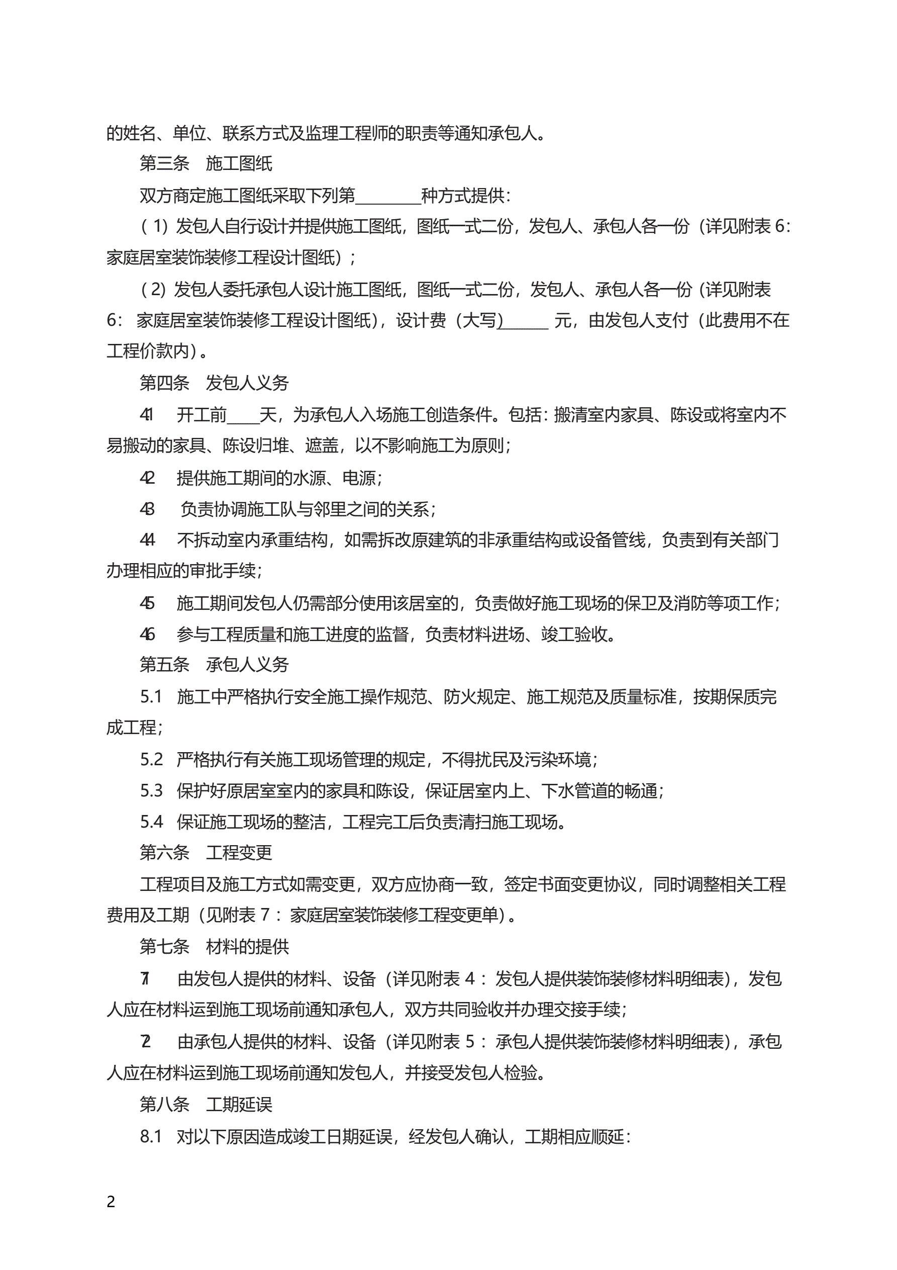 家庭居室装饰装修工程施工合同 GF—2000—0207