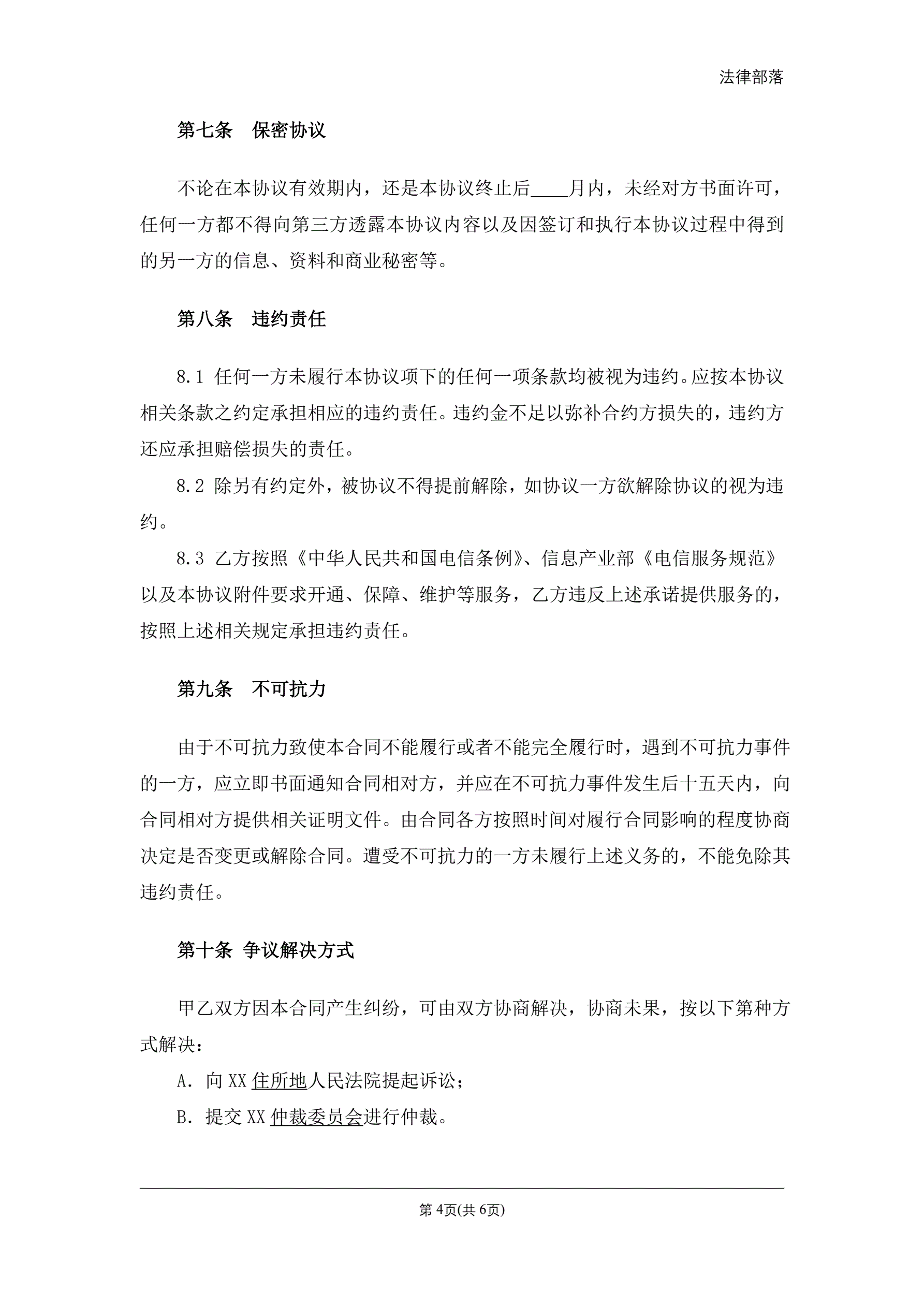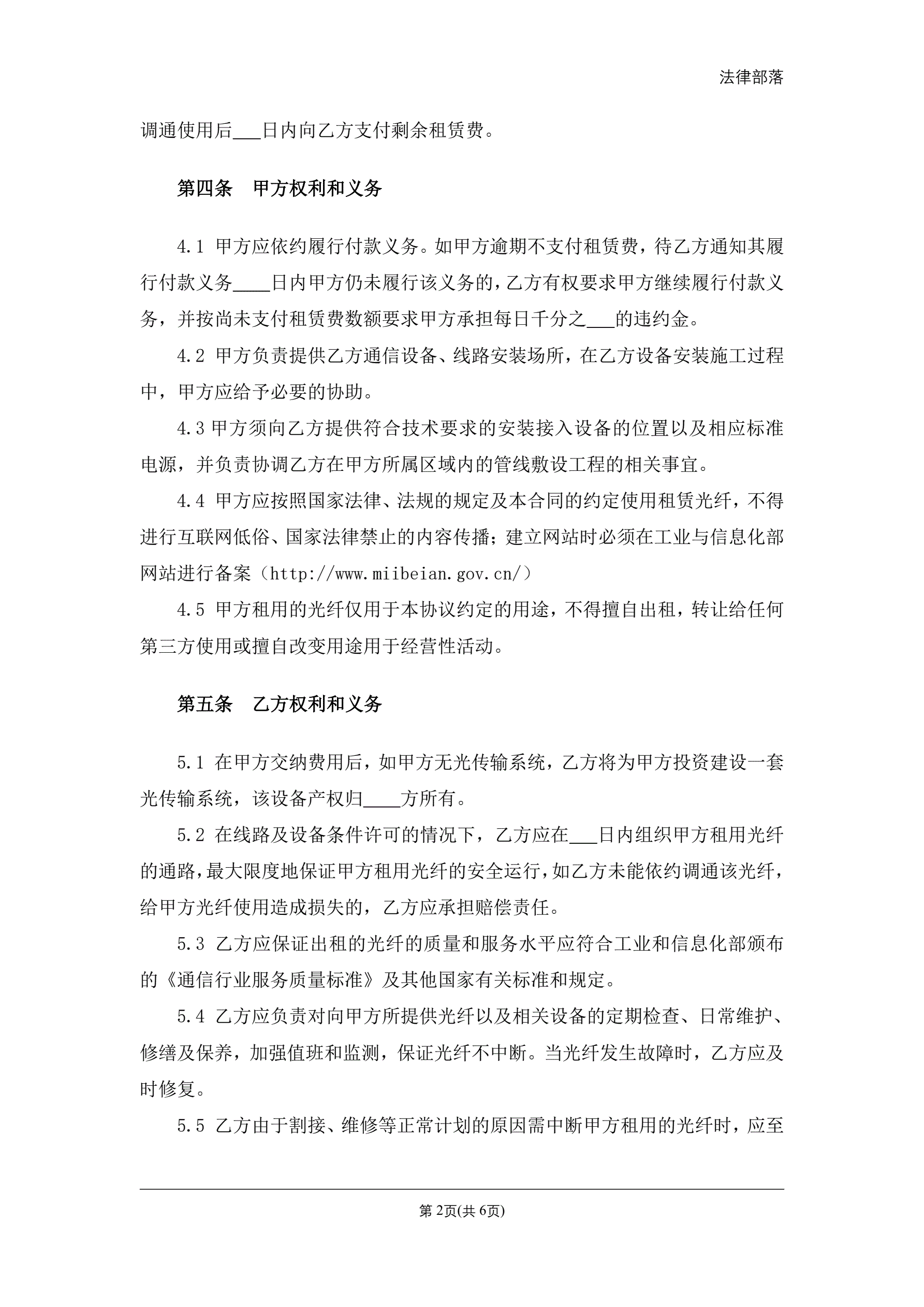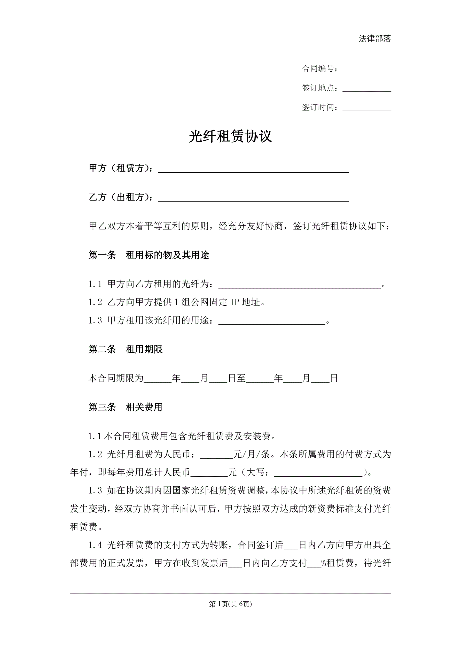 光纤租赁协议
