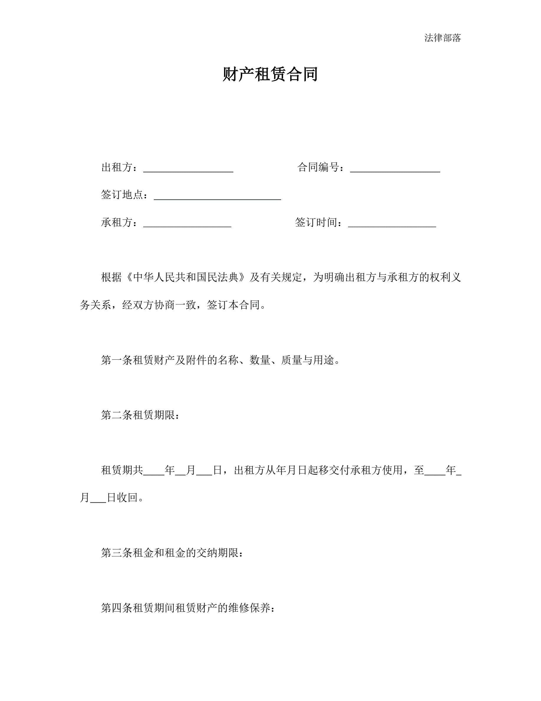 >财产租赁合同