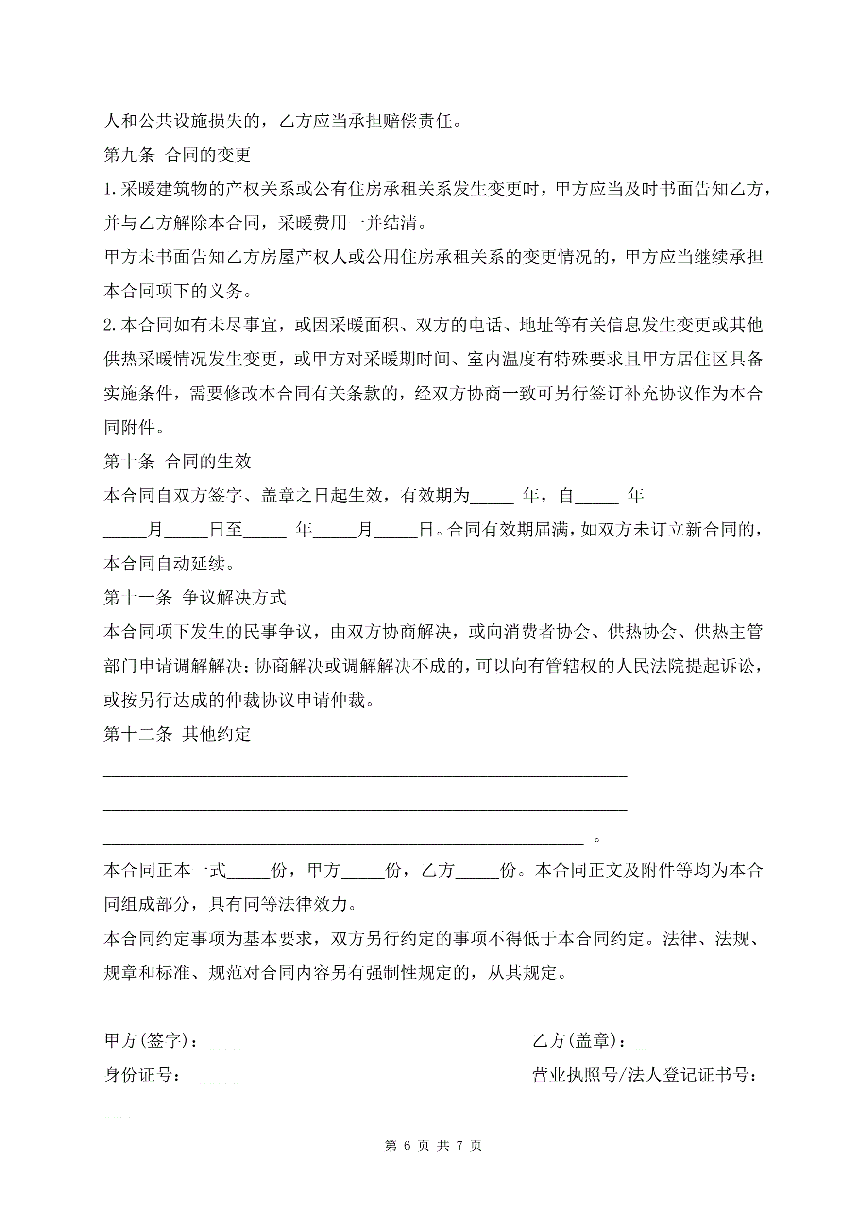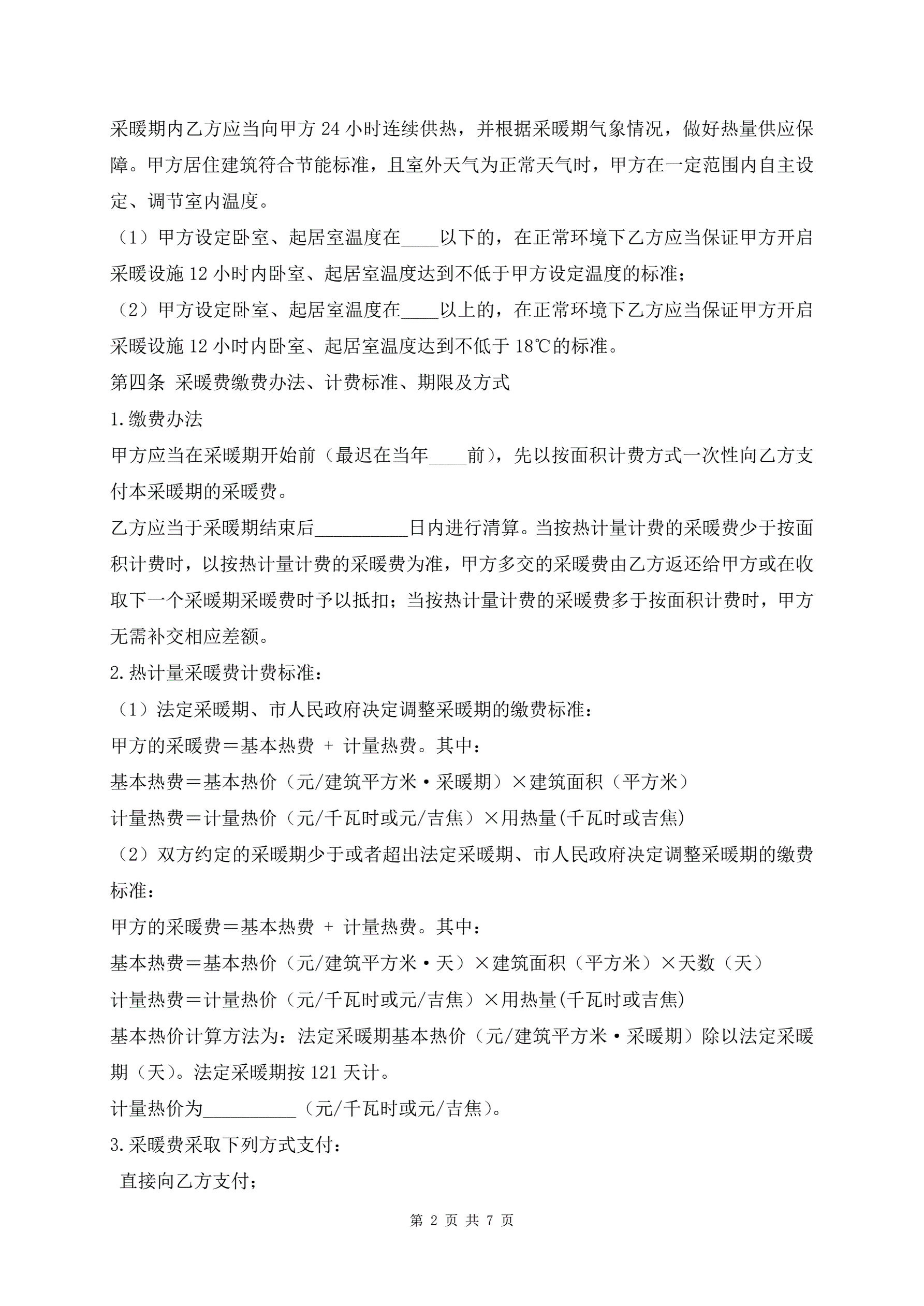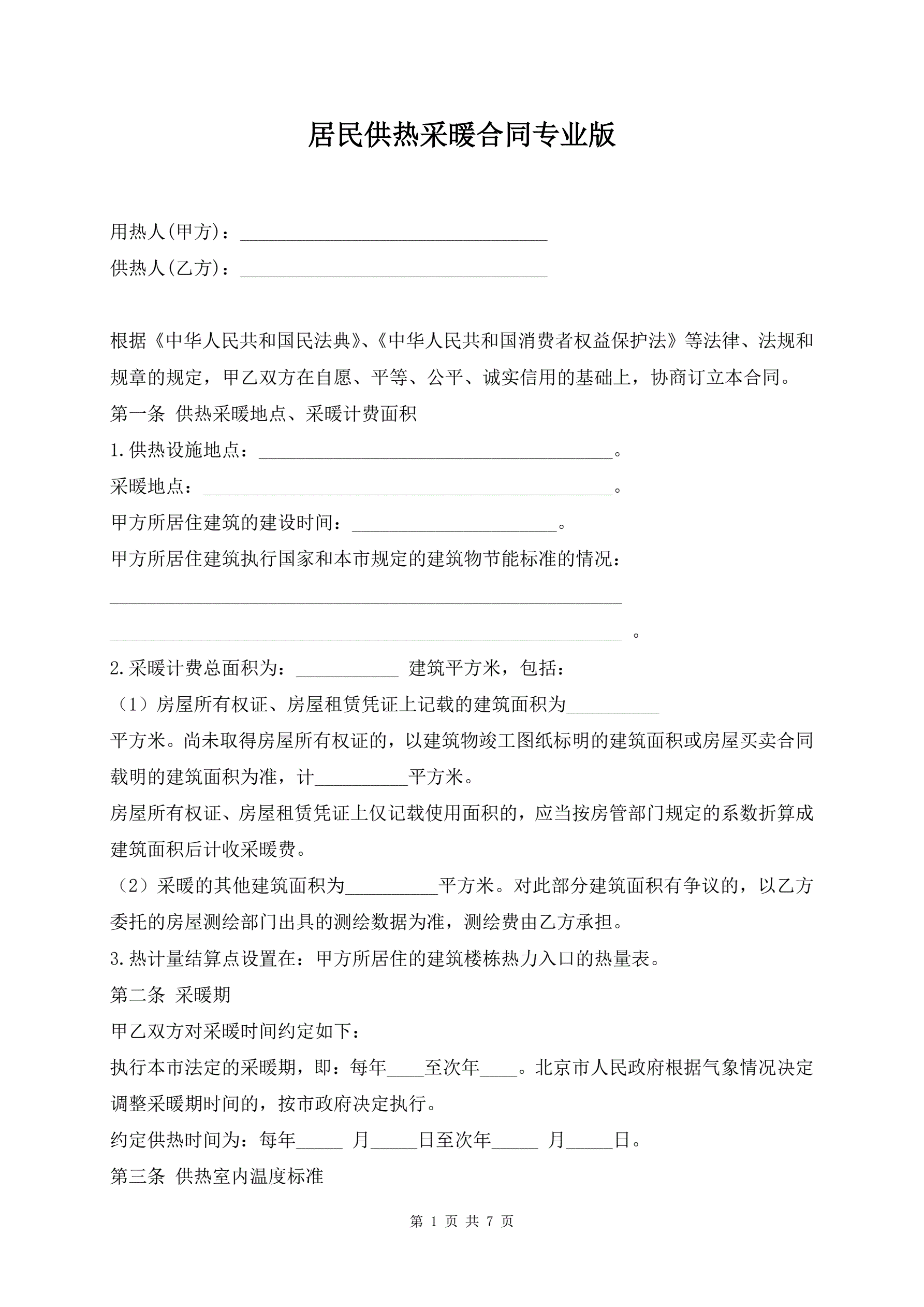 居民供热采暖合同专业版