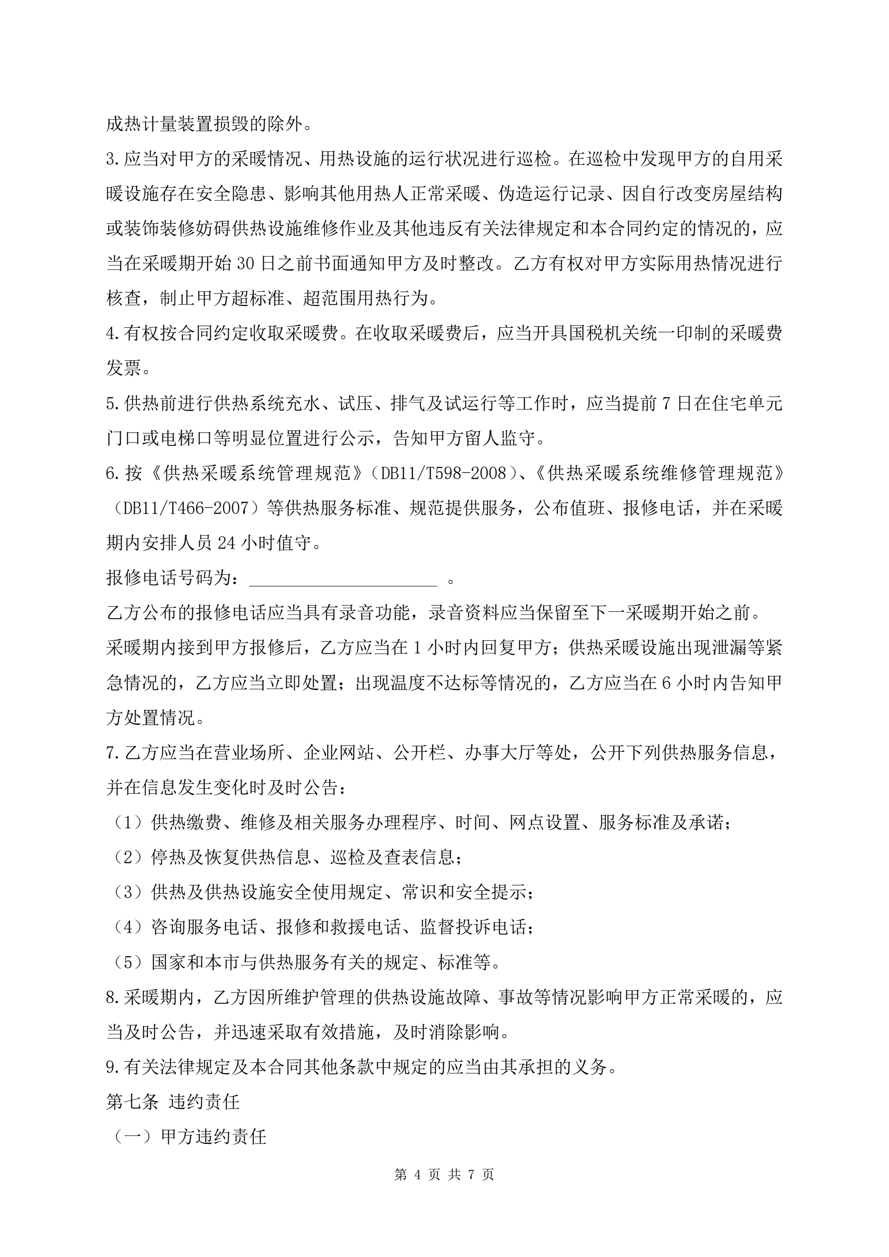 >居民供热采暖合同专业版