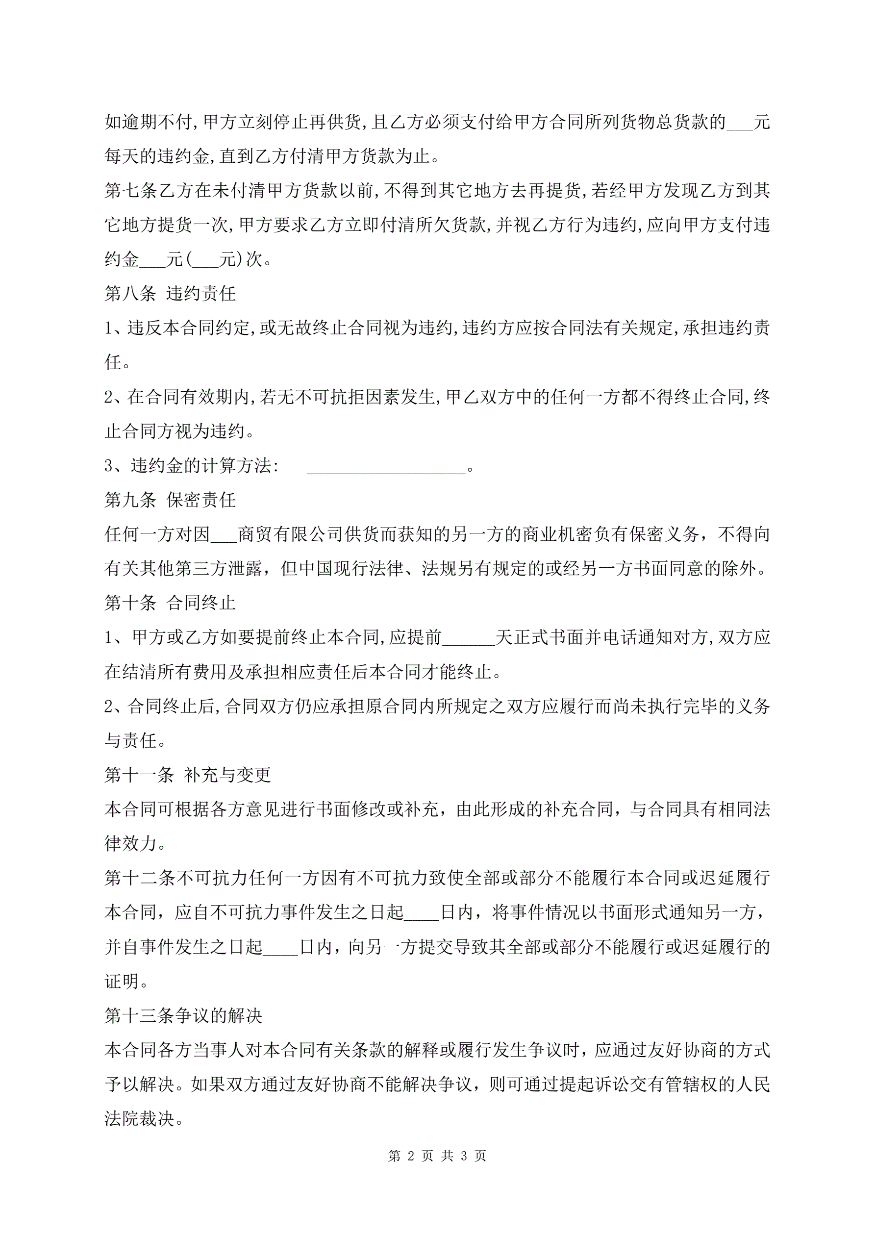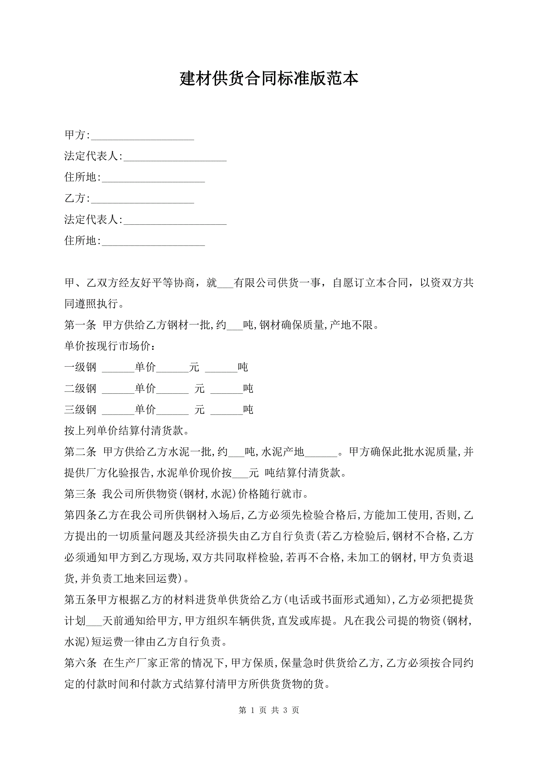 建材供货合同标准版范本