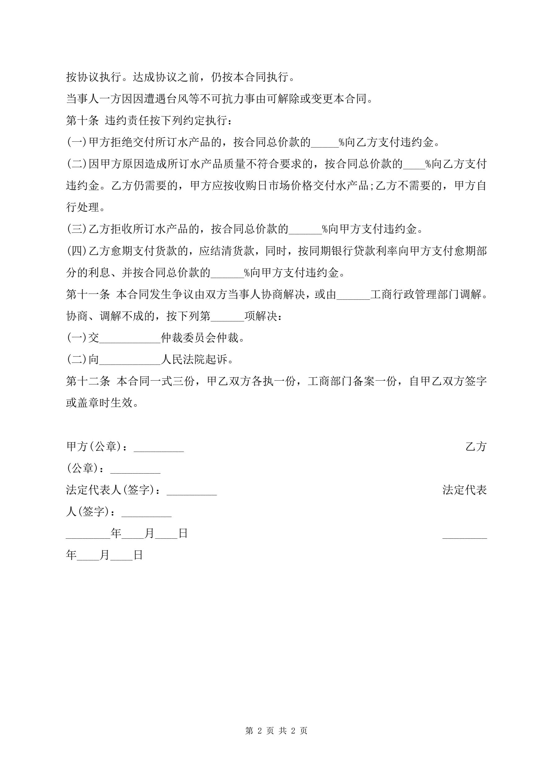 水产品供货合同最新标准版范本