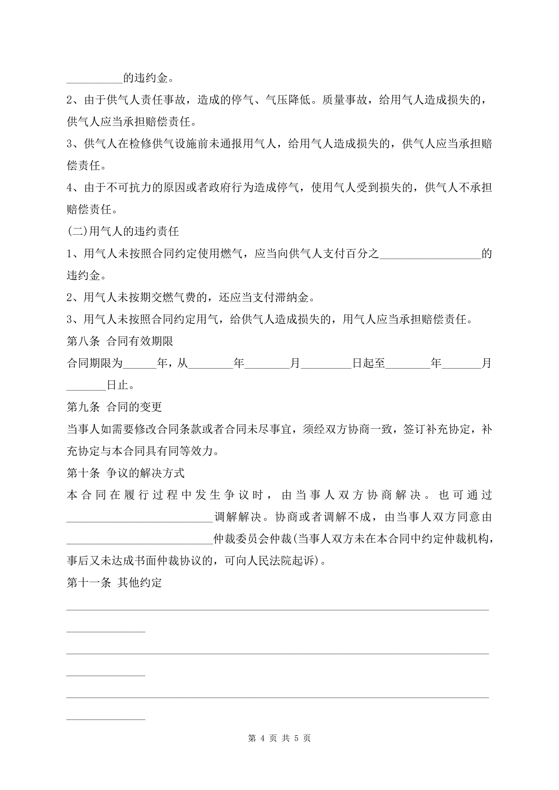 通用版城市供用天然气合同范本