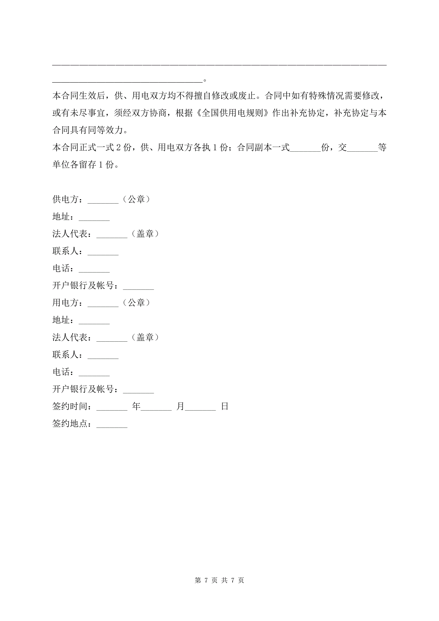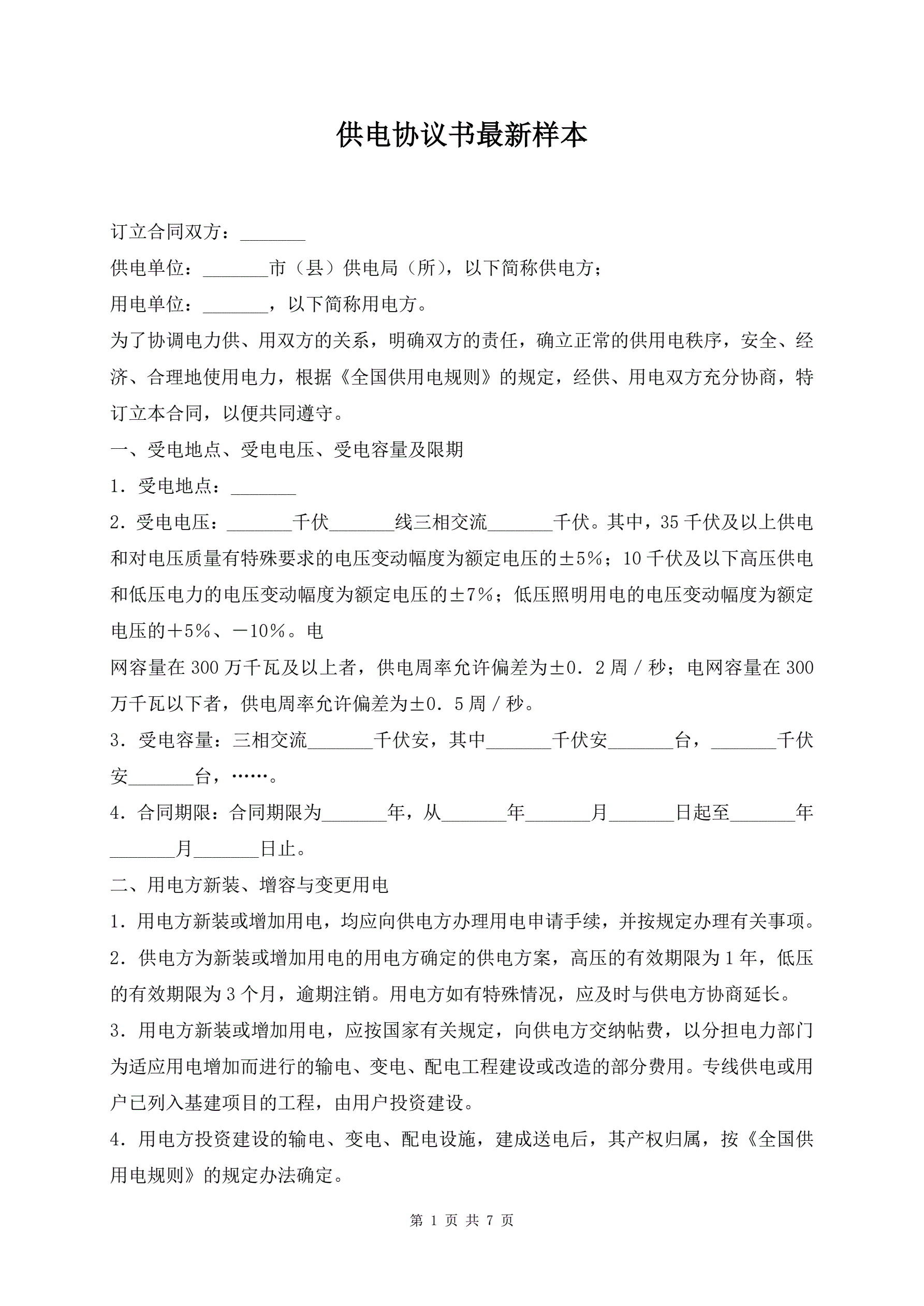 >供电协议书最新样本