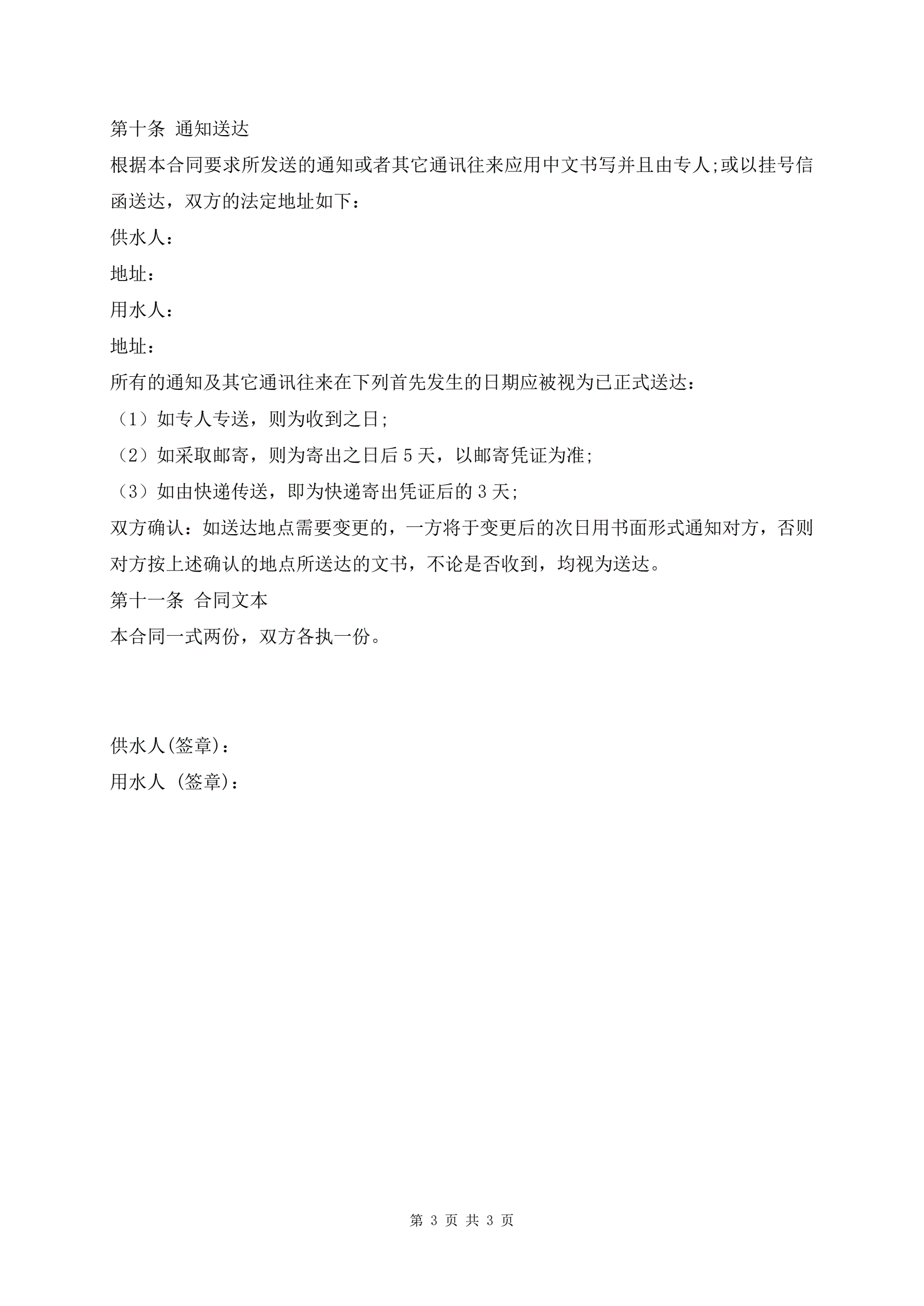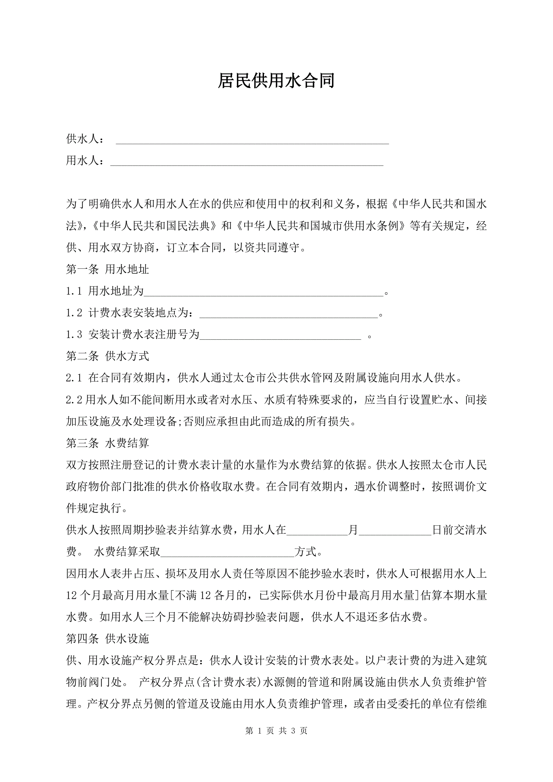 >居民供用水合同