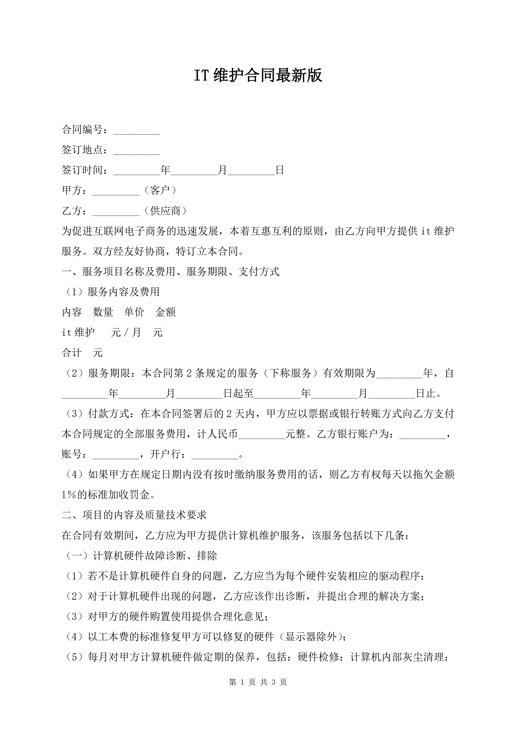 IT维护合同最新版