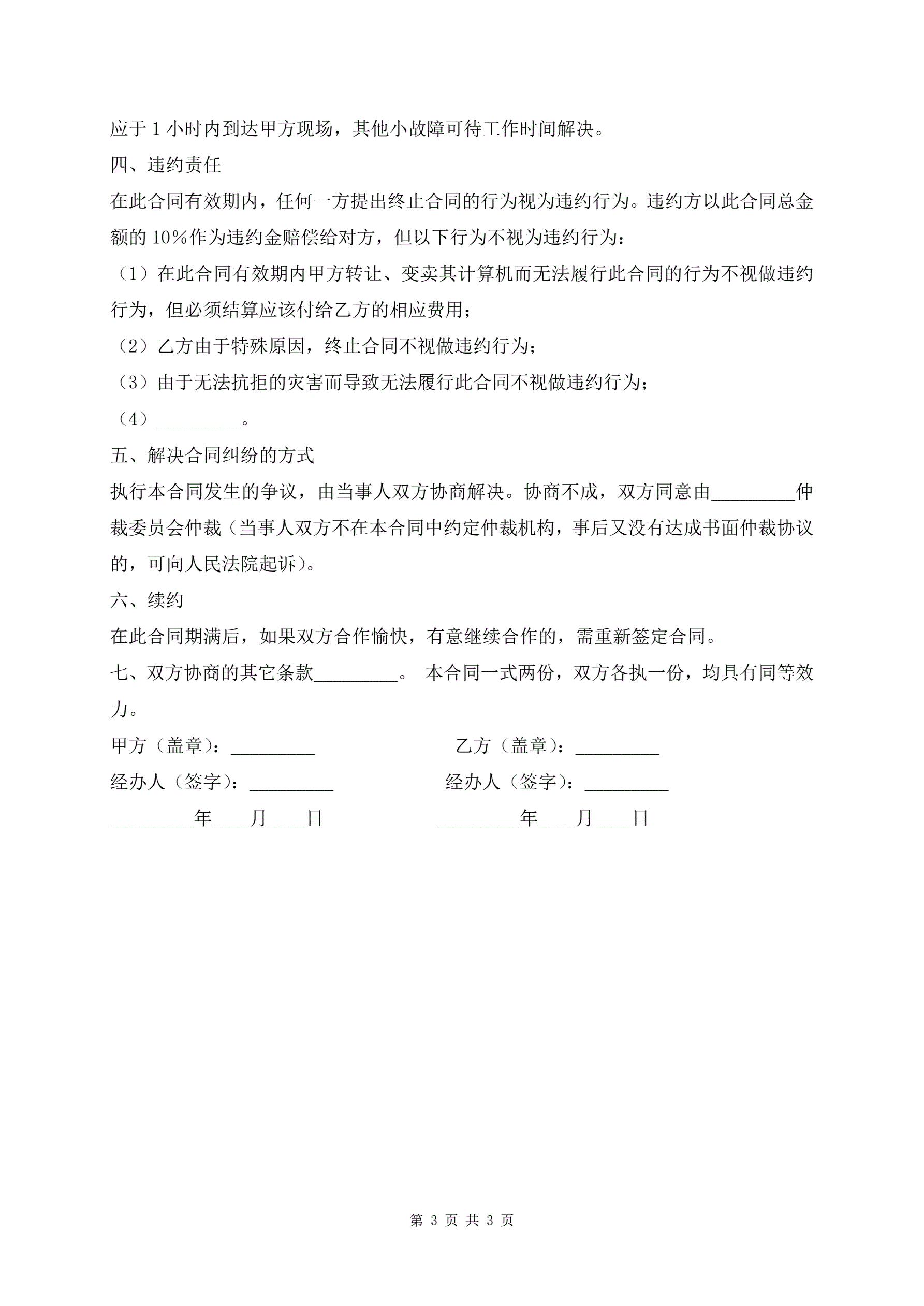 >IT维护合同最新版