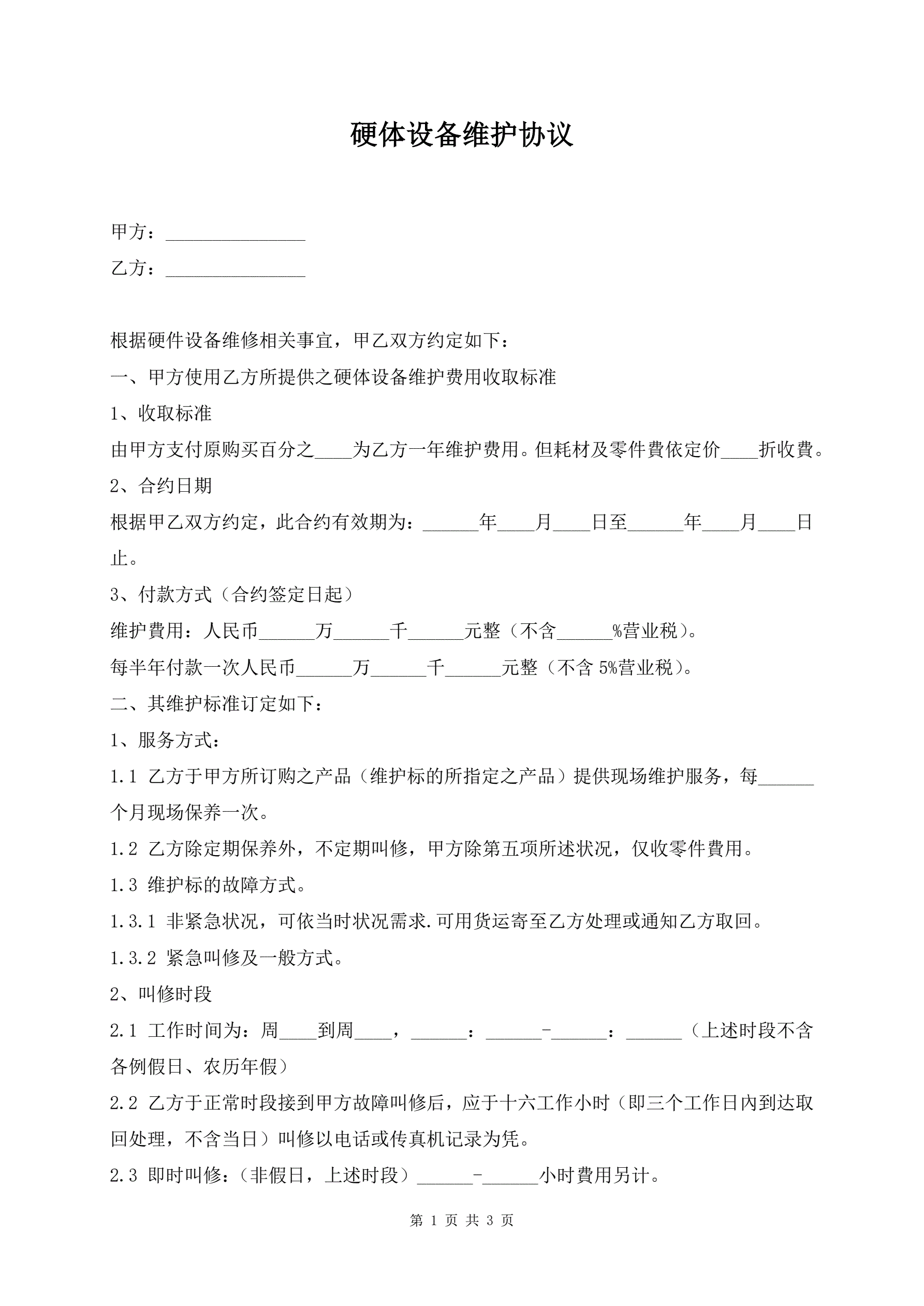 >硬体设备维护协议