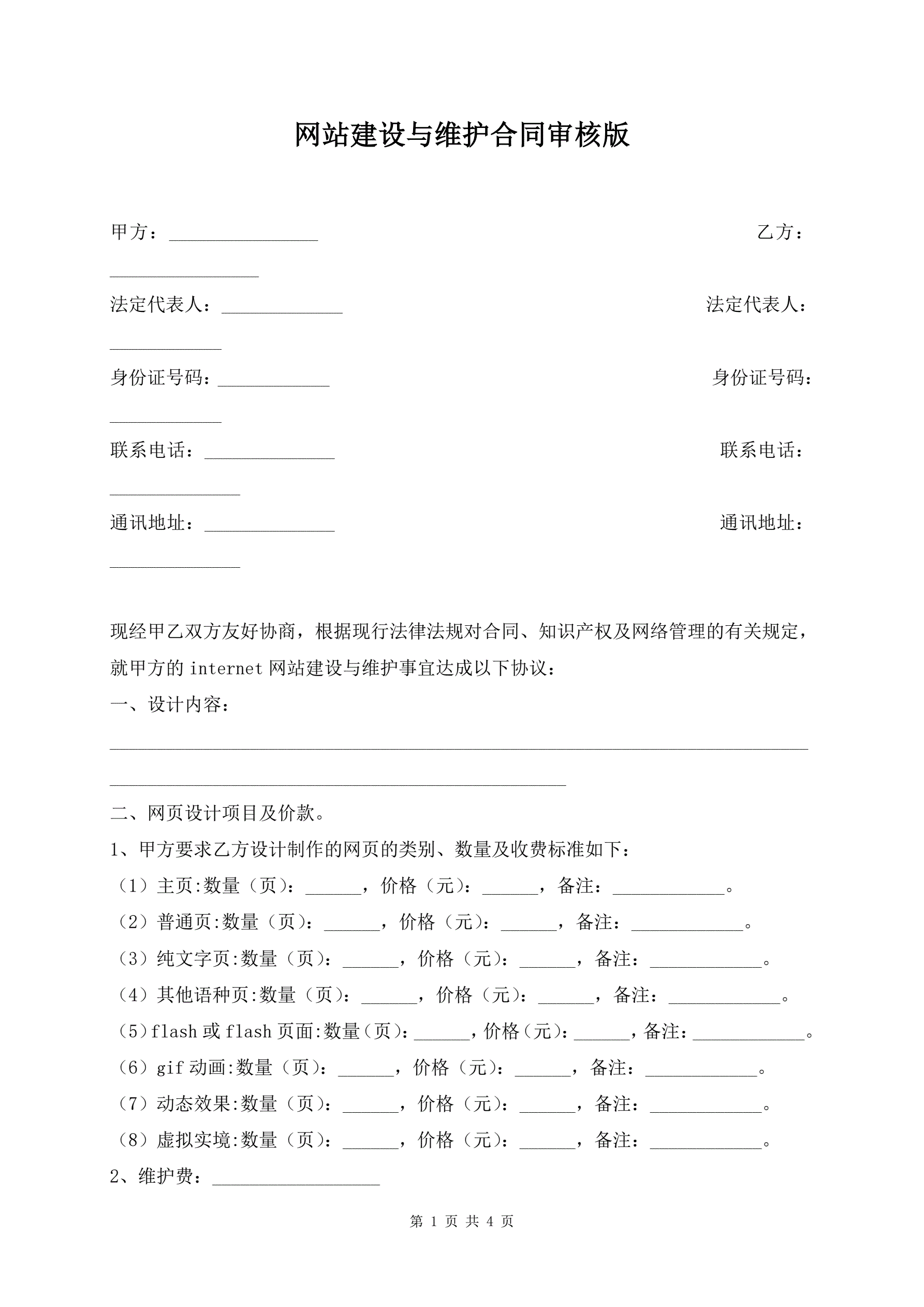 网站建设与维护合同审核版