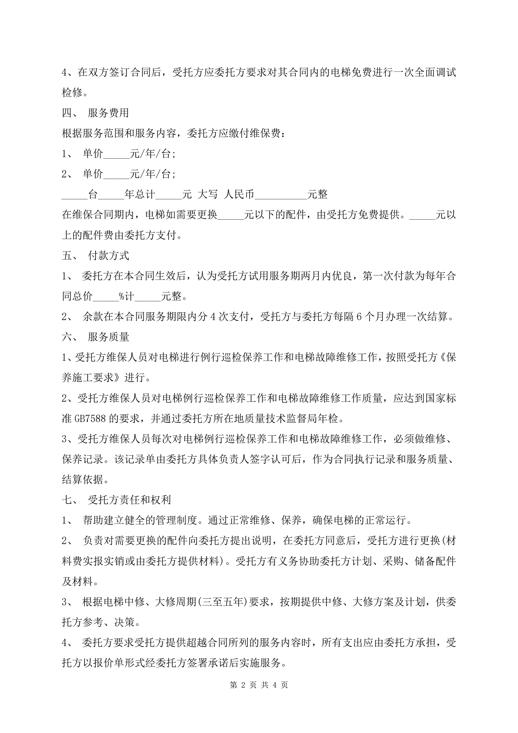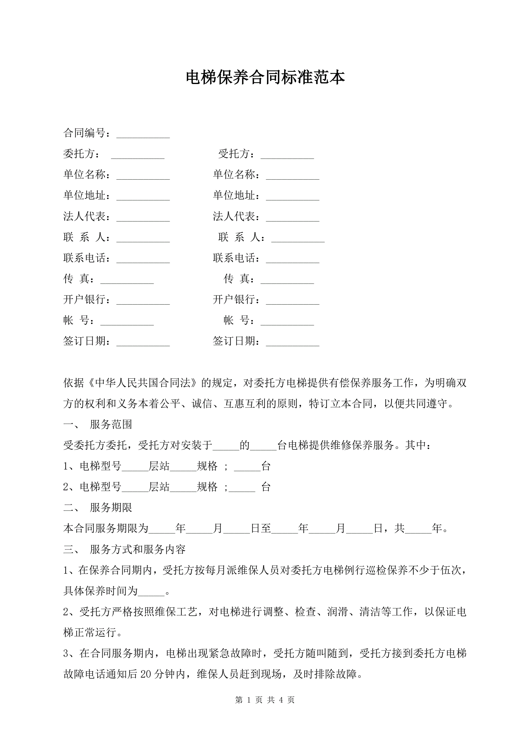 电梯保养合同标准范本