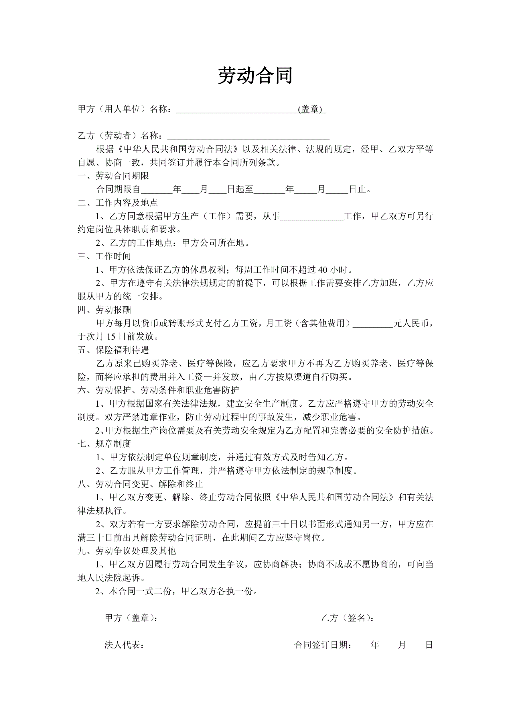 劳动合同1页