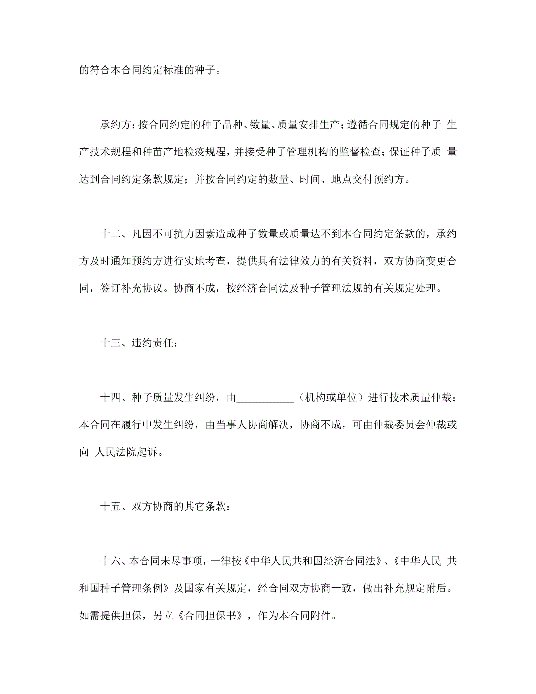 >农作物种子预约生产合同