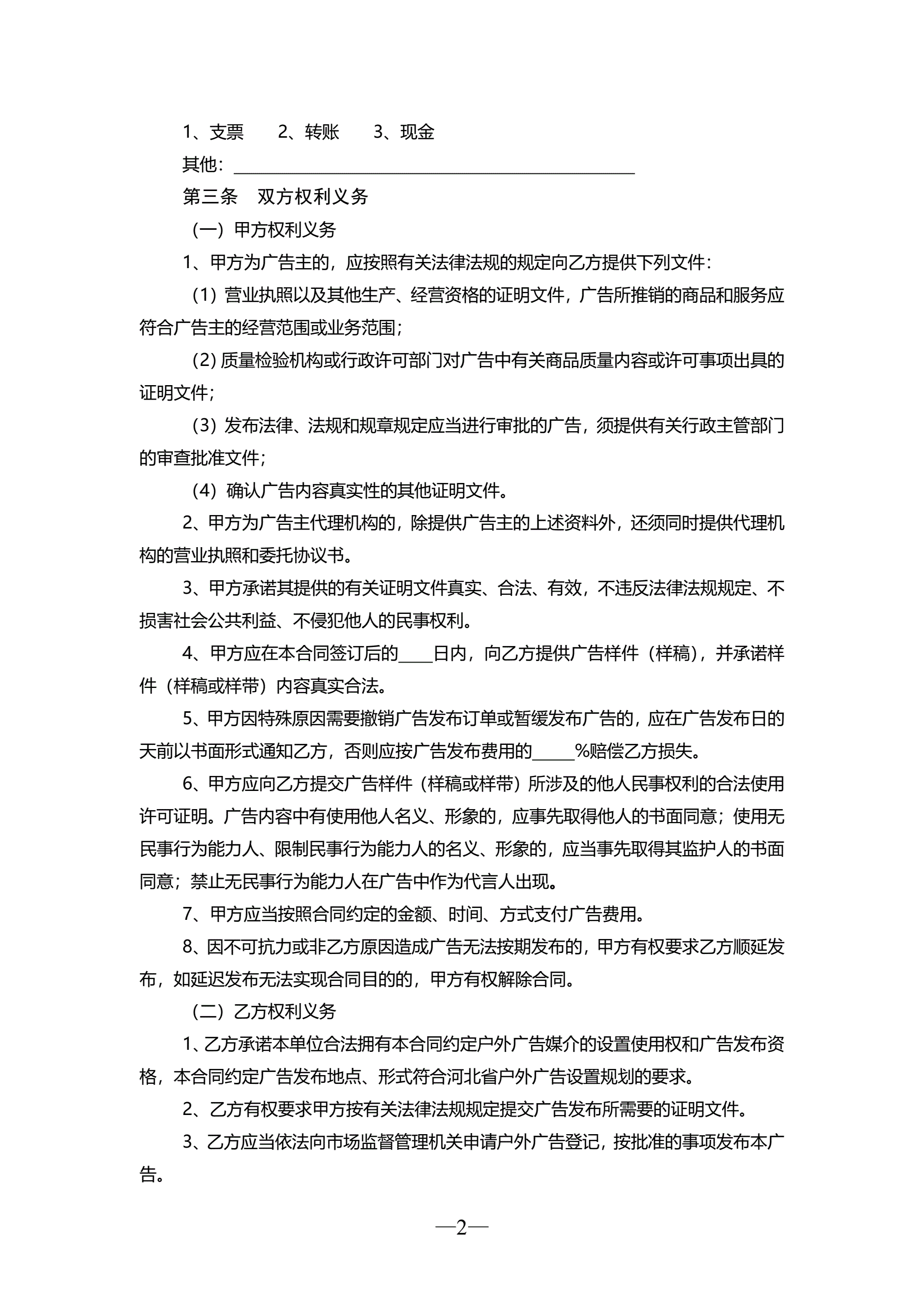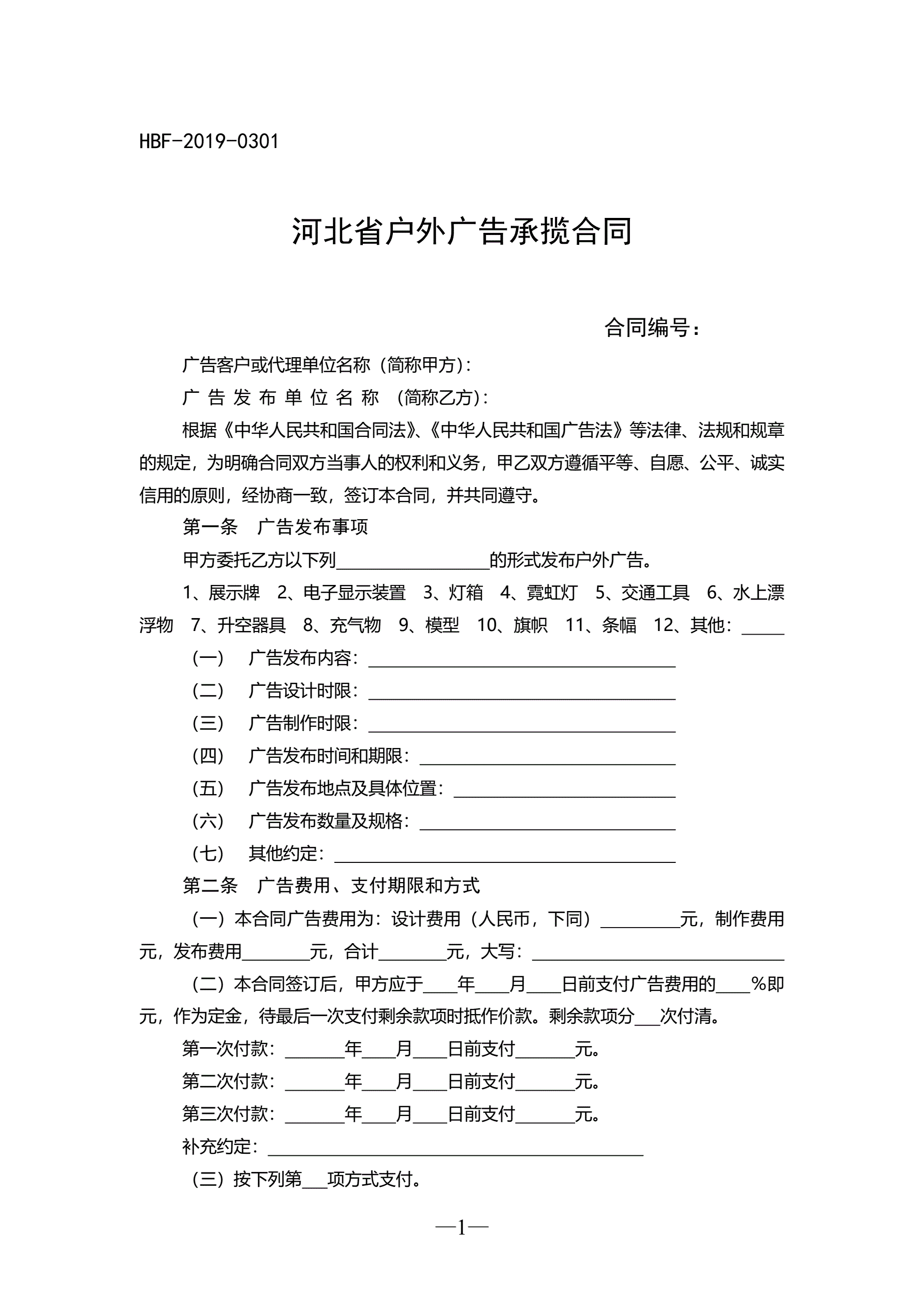 >河北省户外广告承揽合同