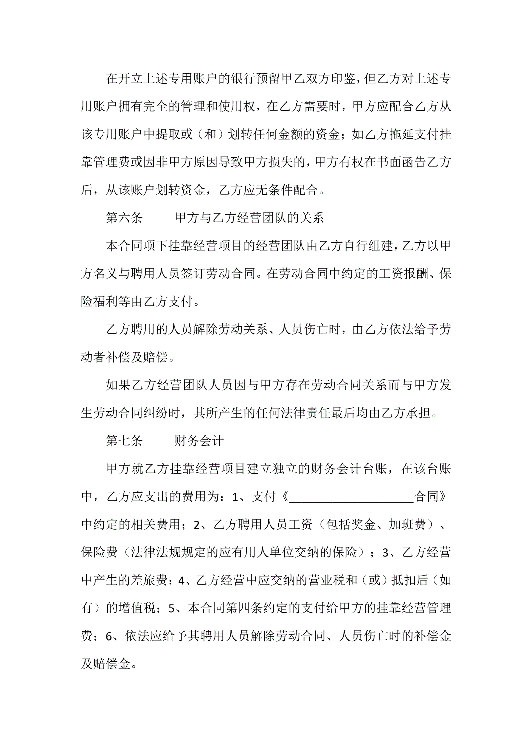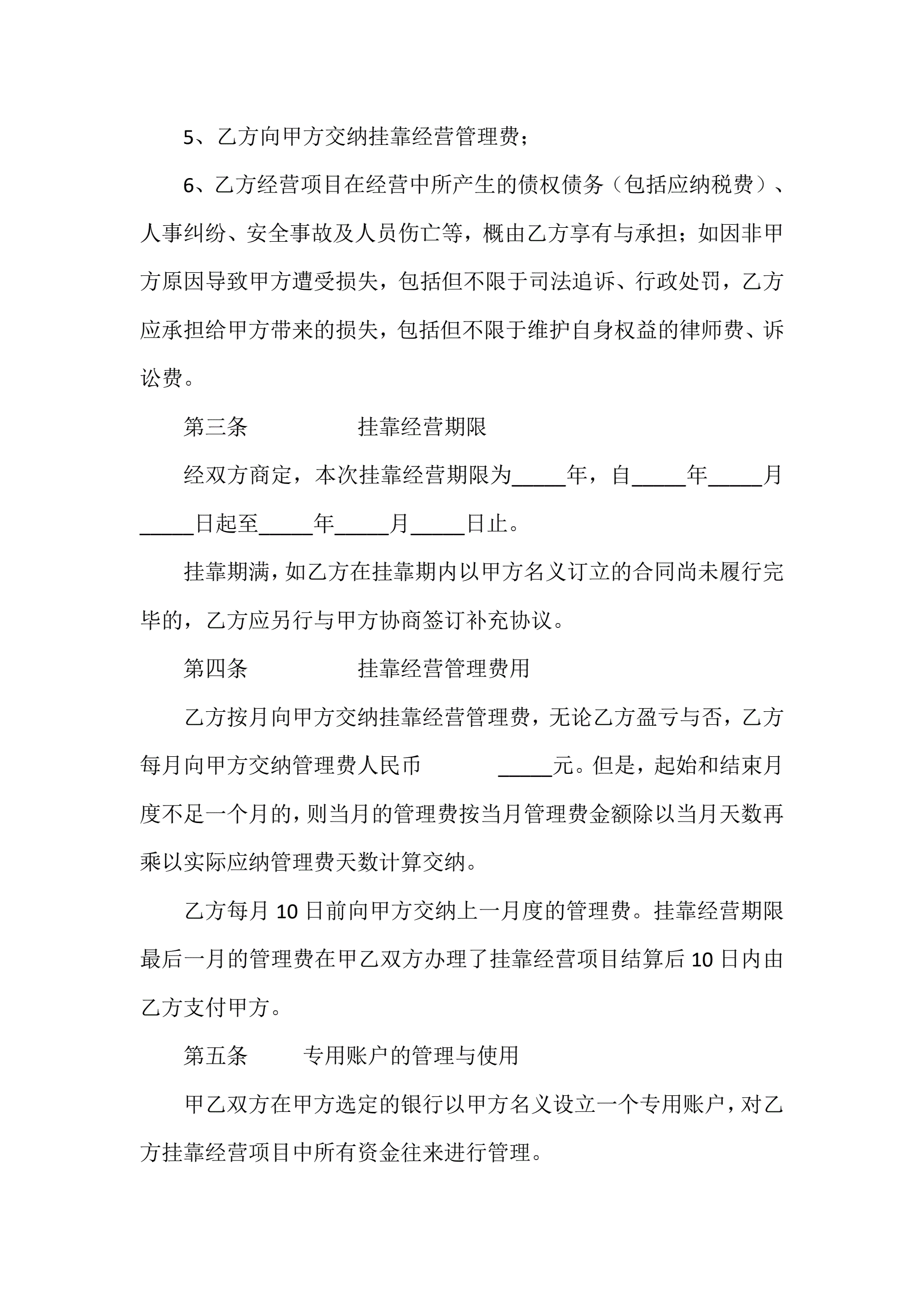 >挂靠经营合同书