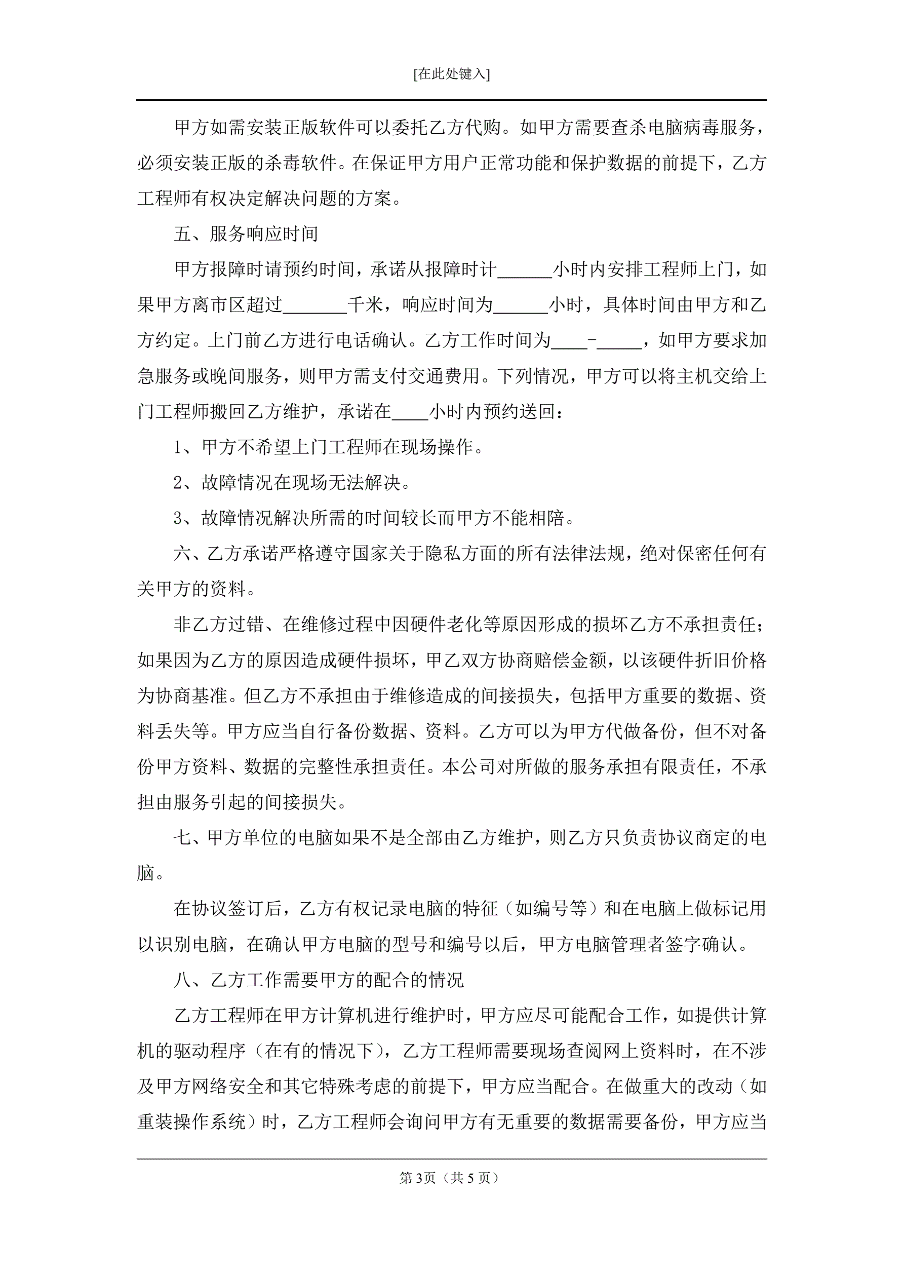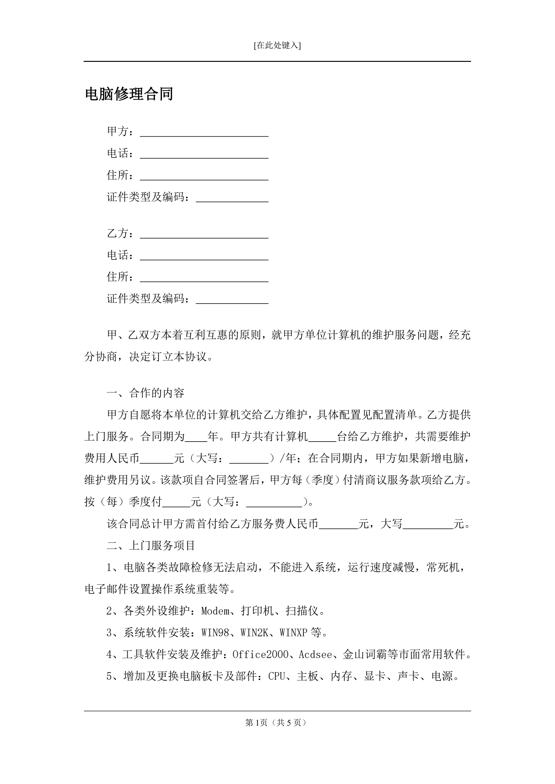 电脑修理合同
