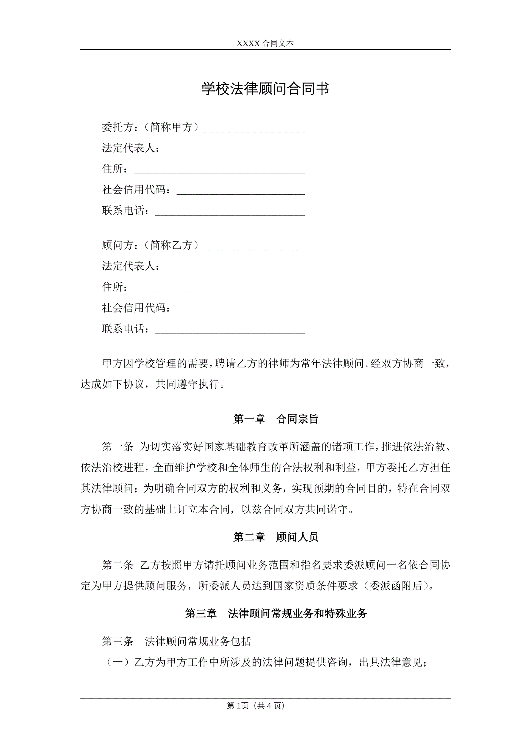 学校法律顾问合同书