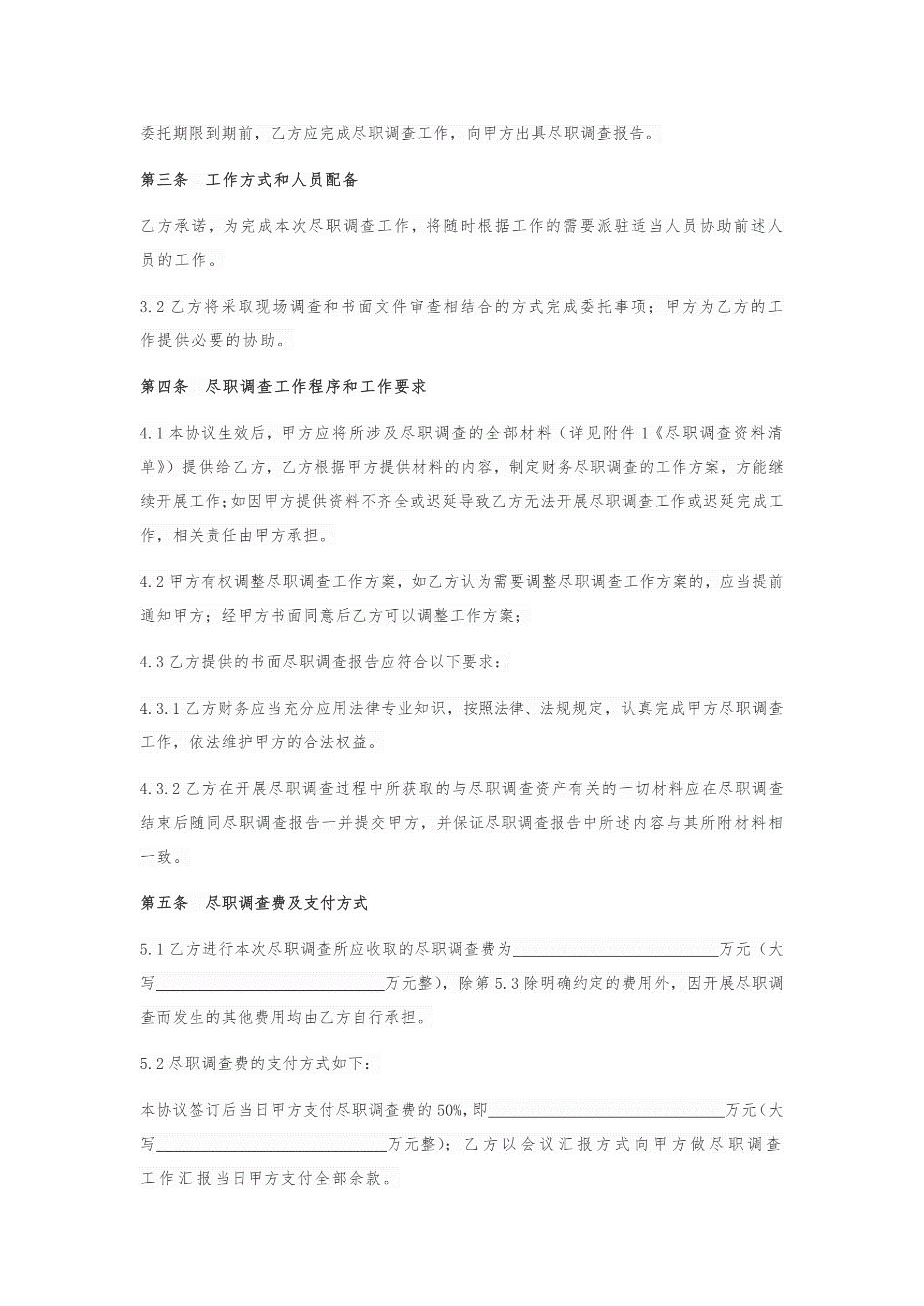 >尽职调查协议模板