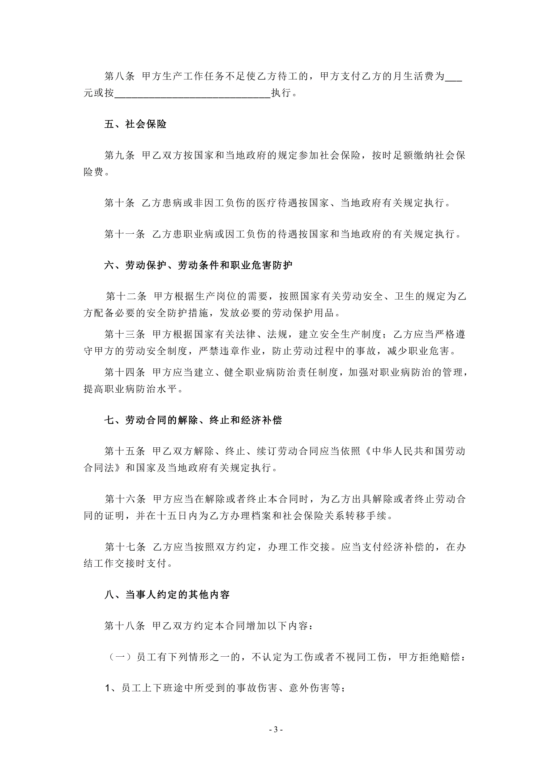 待岗协议