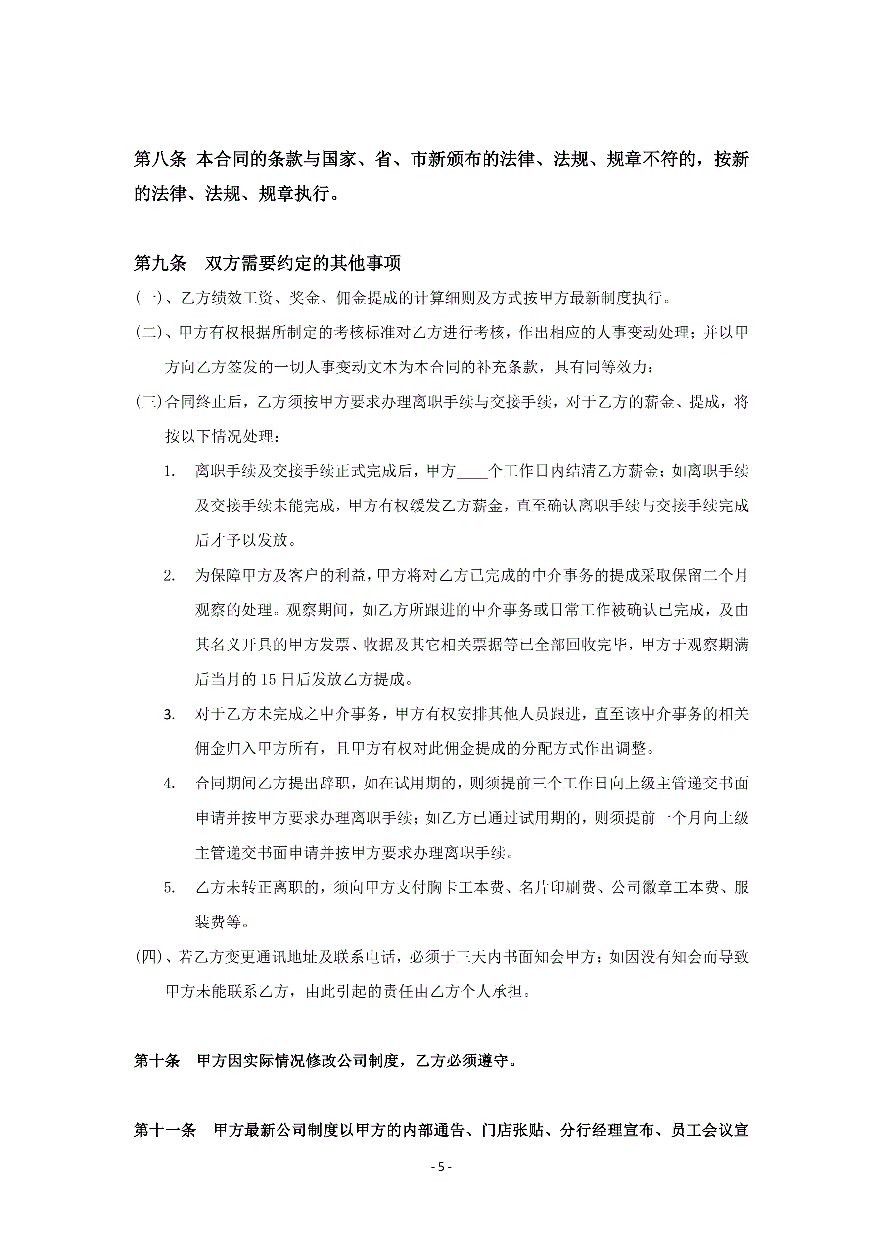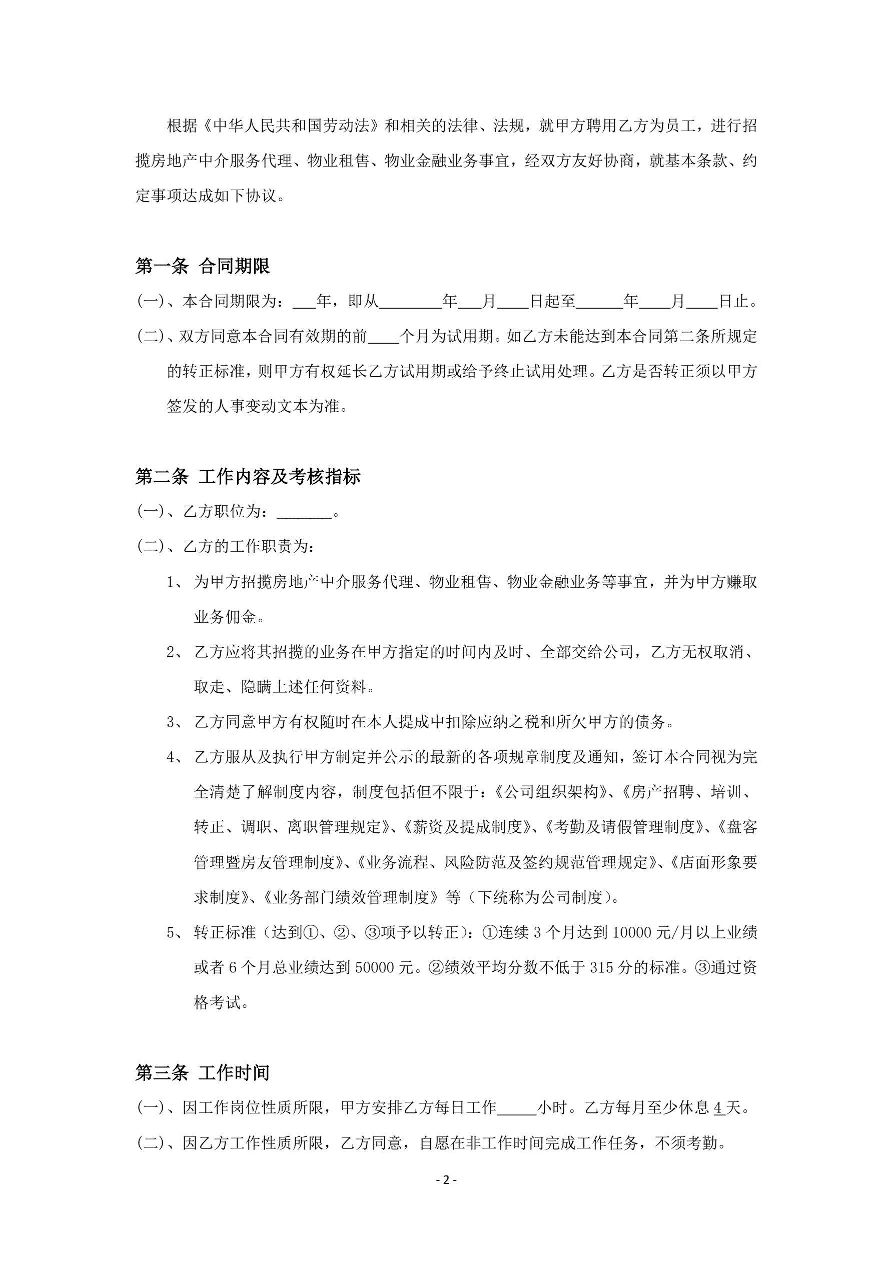 房地产中介经纪人劳动合同