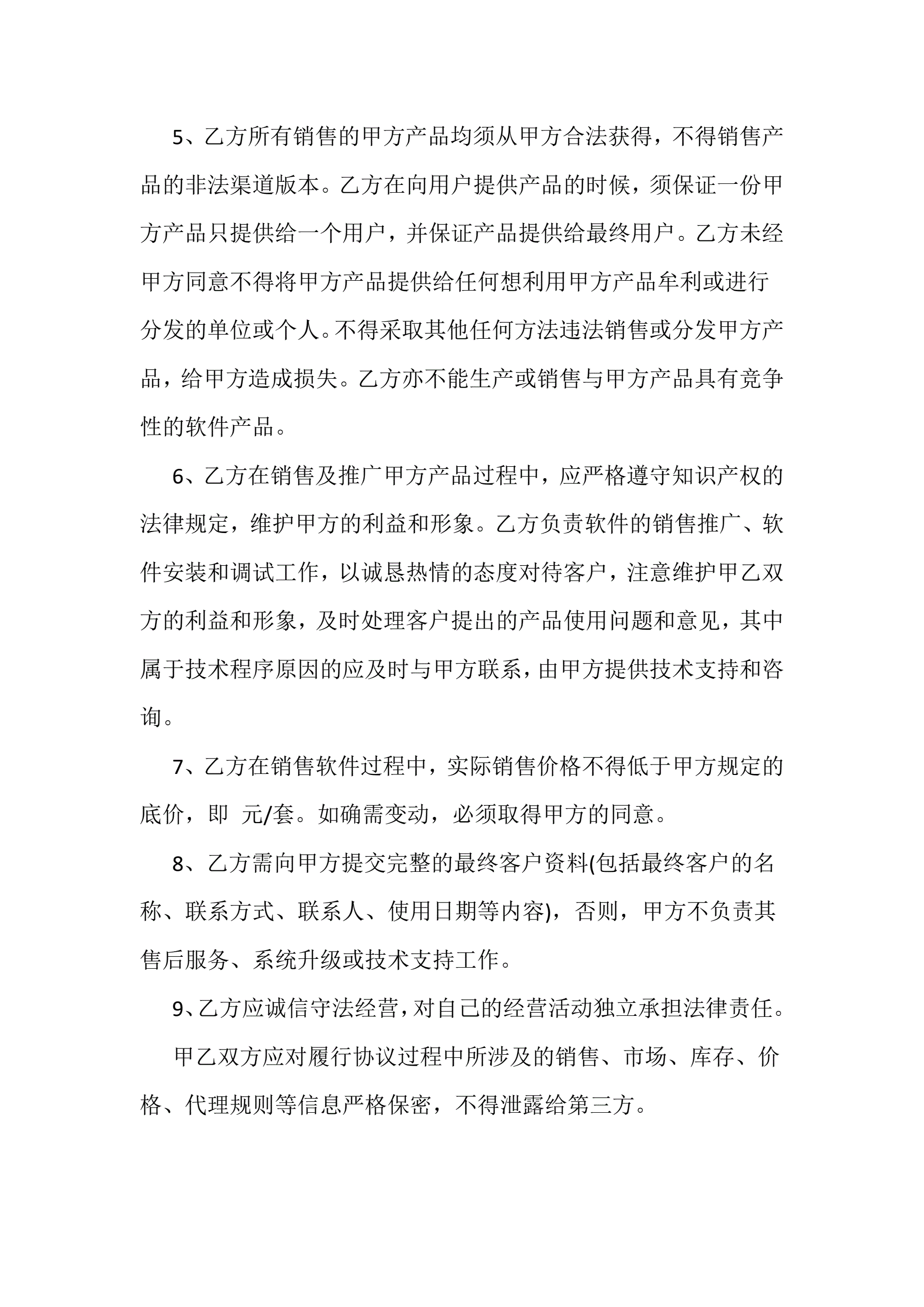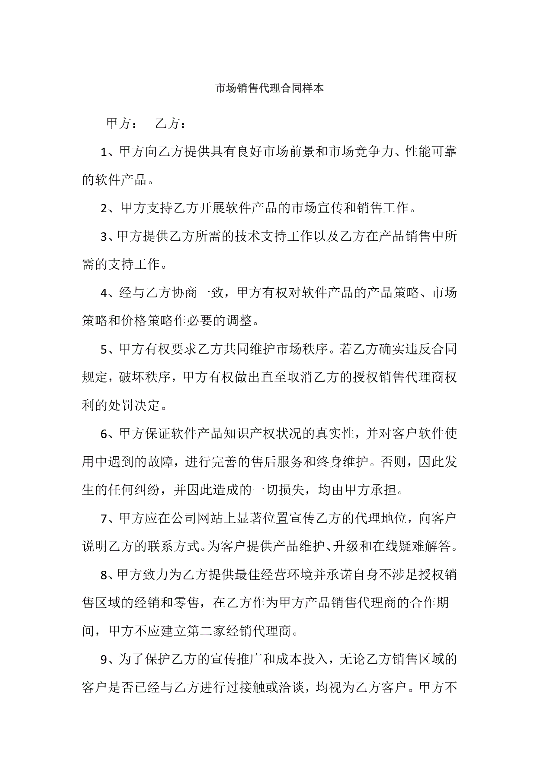 市场销售代理合同样本
