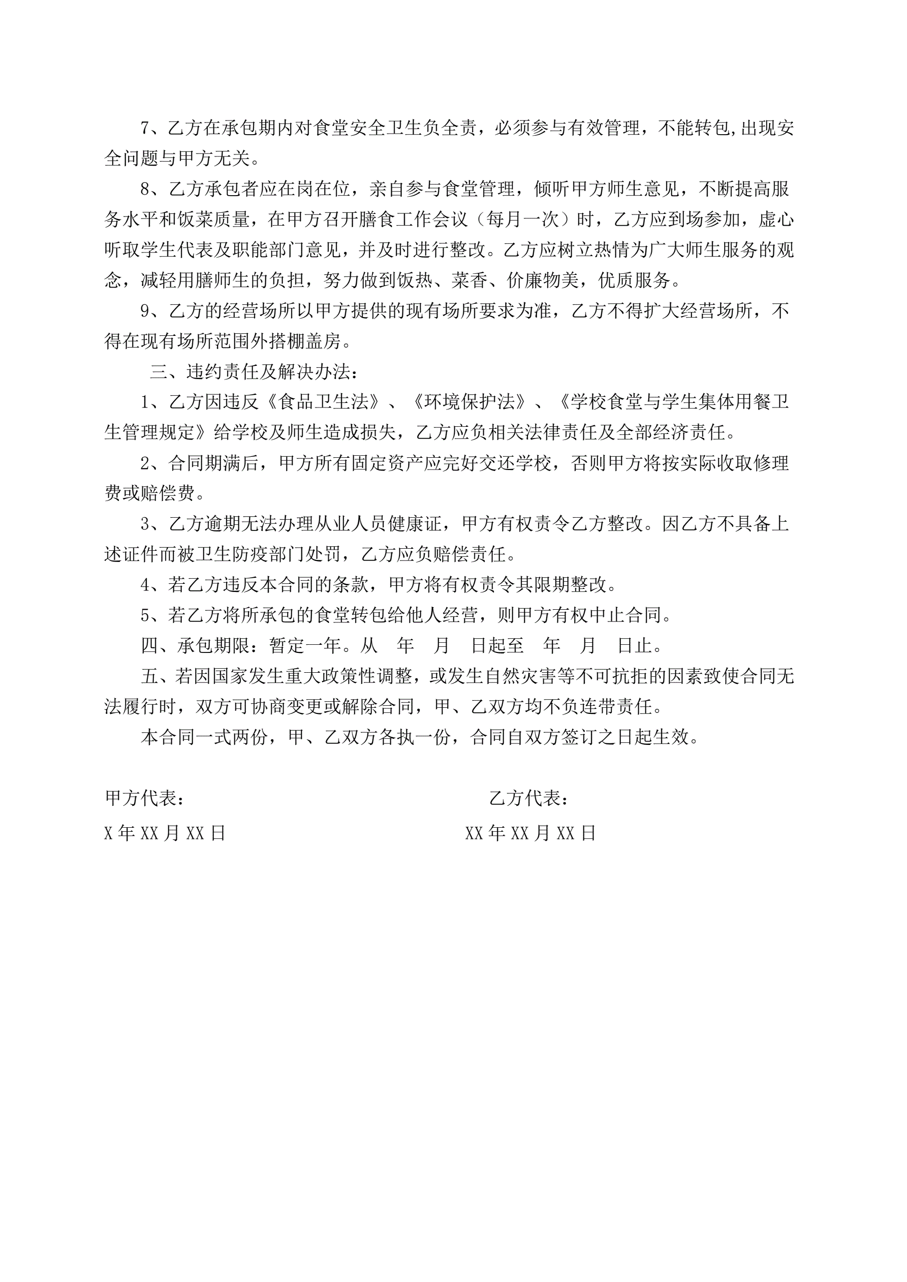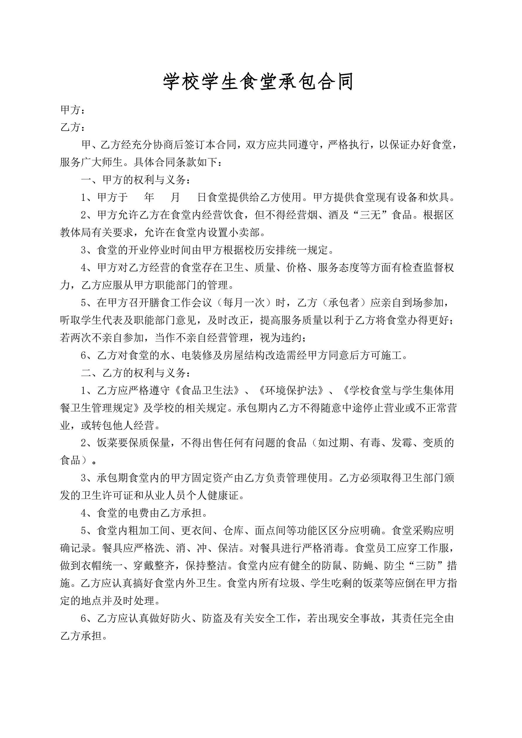 >学校学生食堂承包合同书
