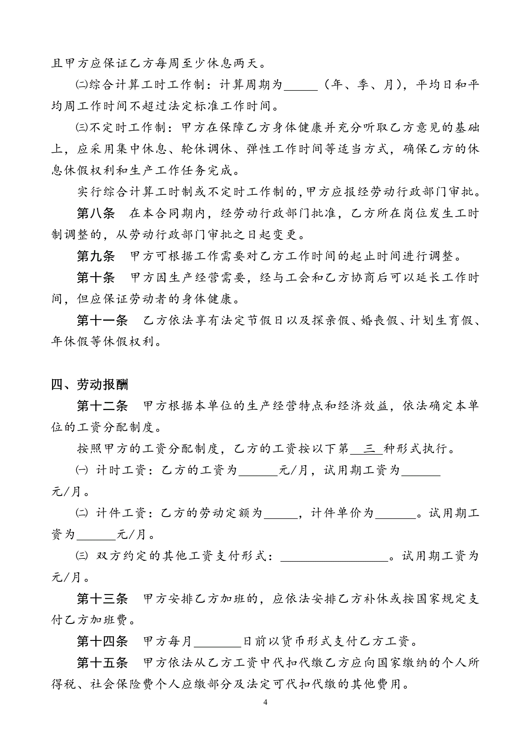>武汉市新版劳动合同